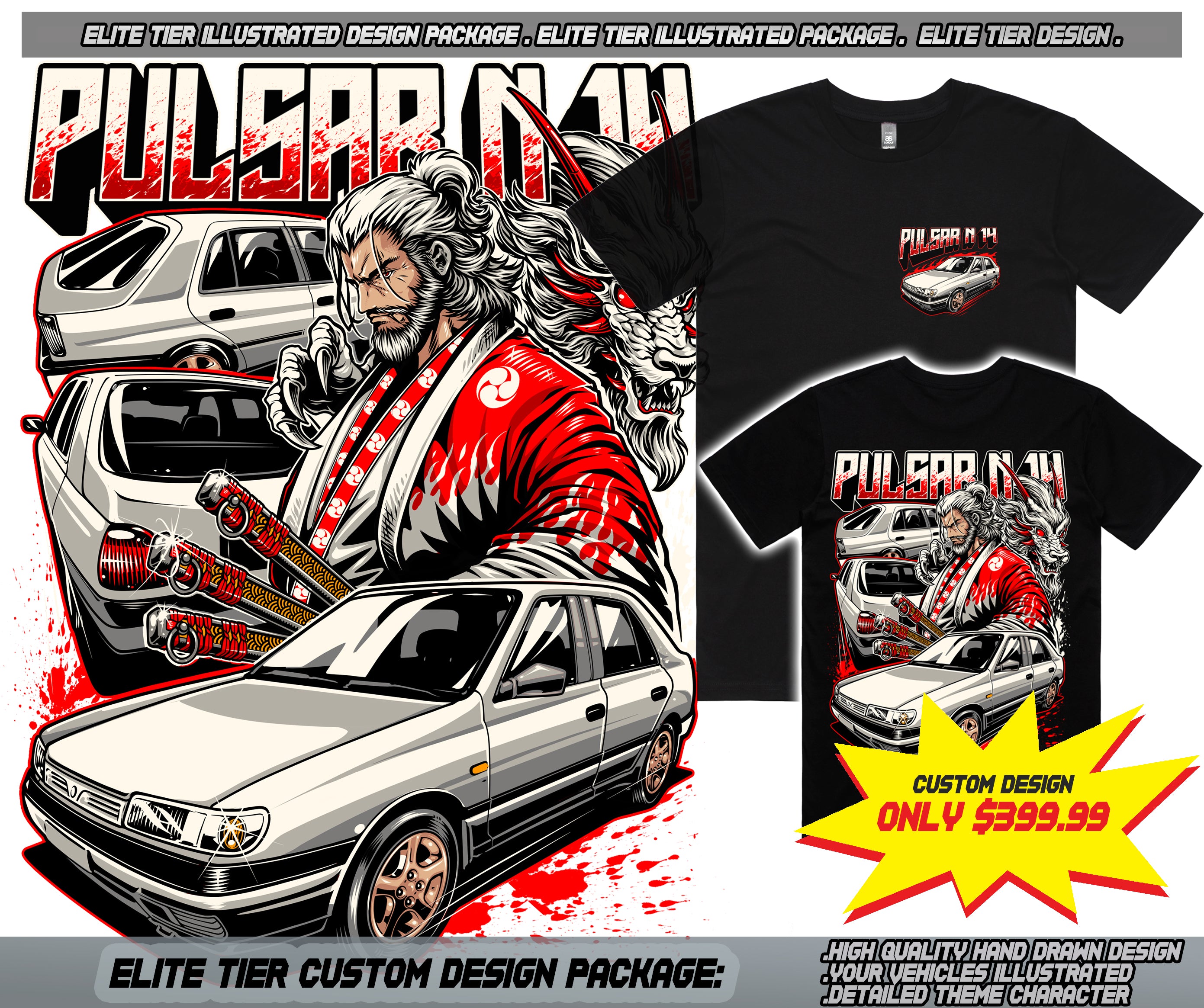 This tier brings together your vehicle (or chosen subject) with a hand-drawn thematic character, dramatic scene elements, premium textures, and bold visual energy. Perfect for people who want artwork that feels custom, fierce, and professionally illustrated.