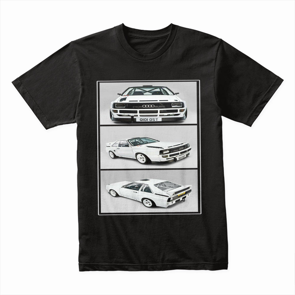 Celebrate the timeless design of Audi’s rally-bred legend with the Audi Quattro Classic tee. Featuring three dynamic angles of the iconic coupe, this design captures every sharp edge of the car that changed motorsport history.