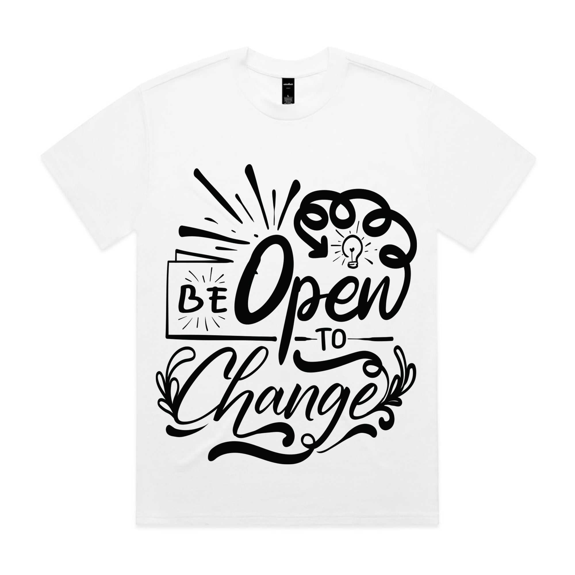 Stay inspired and spread positivity with this empowering “Be Open to Change” T-shirt. Designed with bold typography, creative illustrations, and an uplifting message, this tee is a reminder to embrace growth, new opportunities, and life’s possibilities.