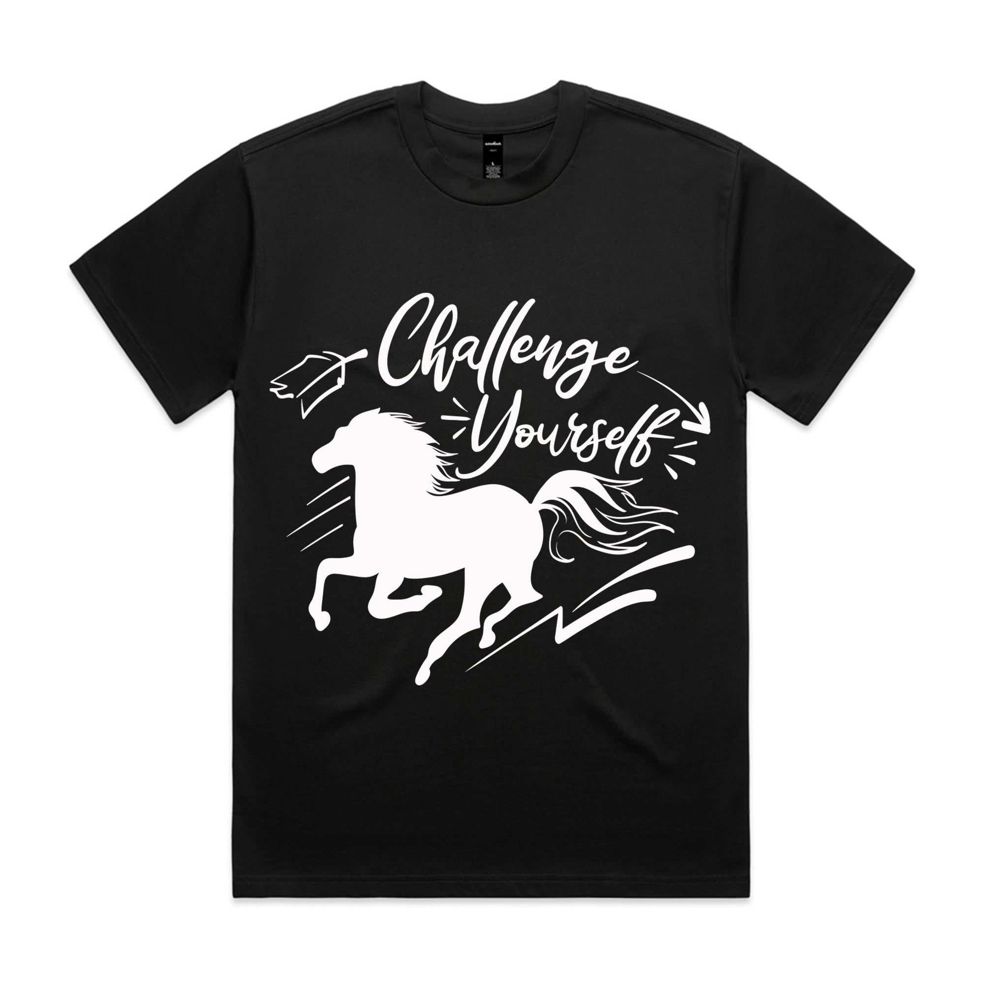Ignite your inner drive with this powerful “Challenge Yourself” T-shirt. Featuring a dynamic horse in motion, this design symbolizes freedom, strength, and the courage to keep pushing forward. It’s more than just a tee—it’s a reminder to break barriers and chase your goals fearlessly.