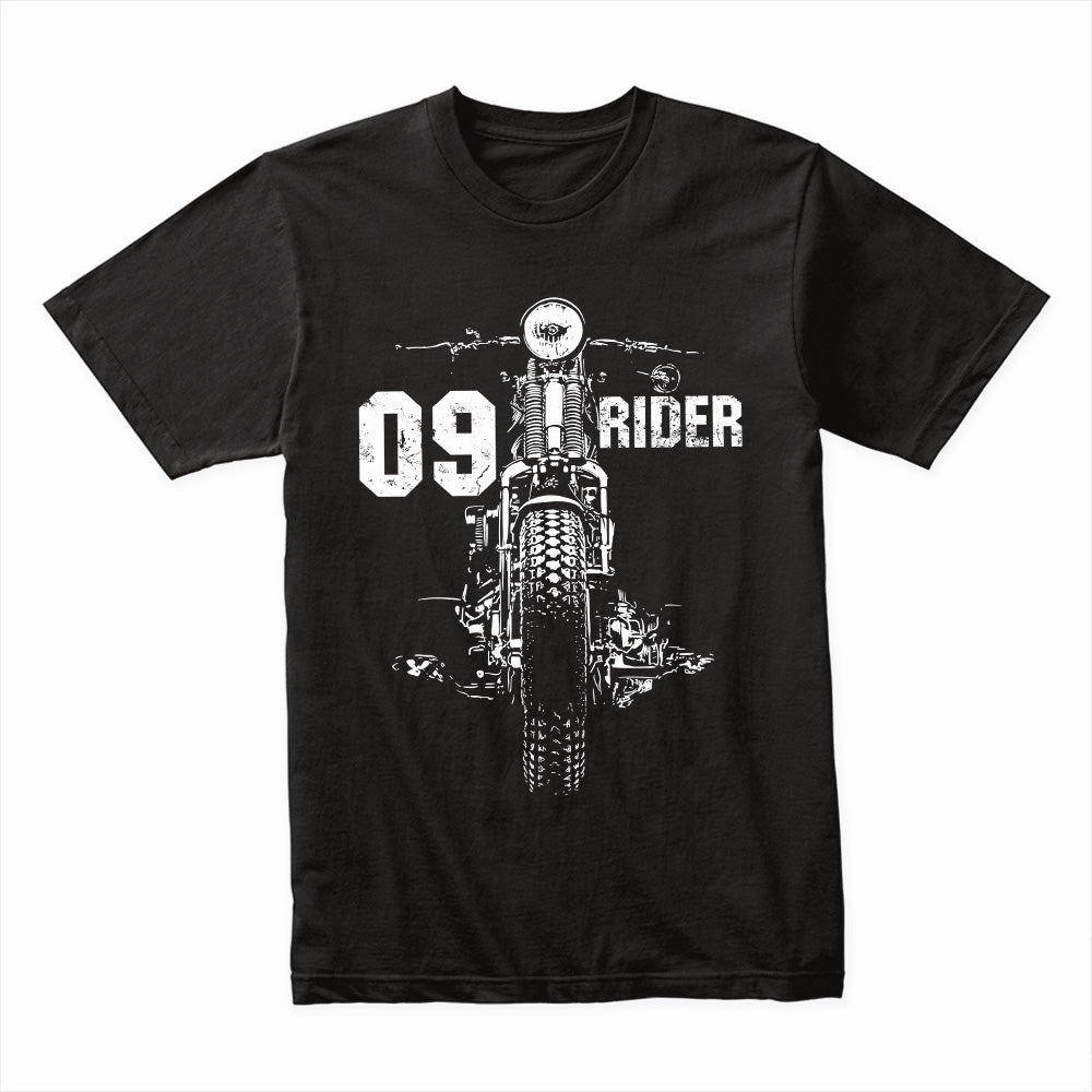 Bold "09 RIDER" text with a distressed, rugged finish for authentic biker vibes.