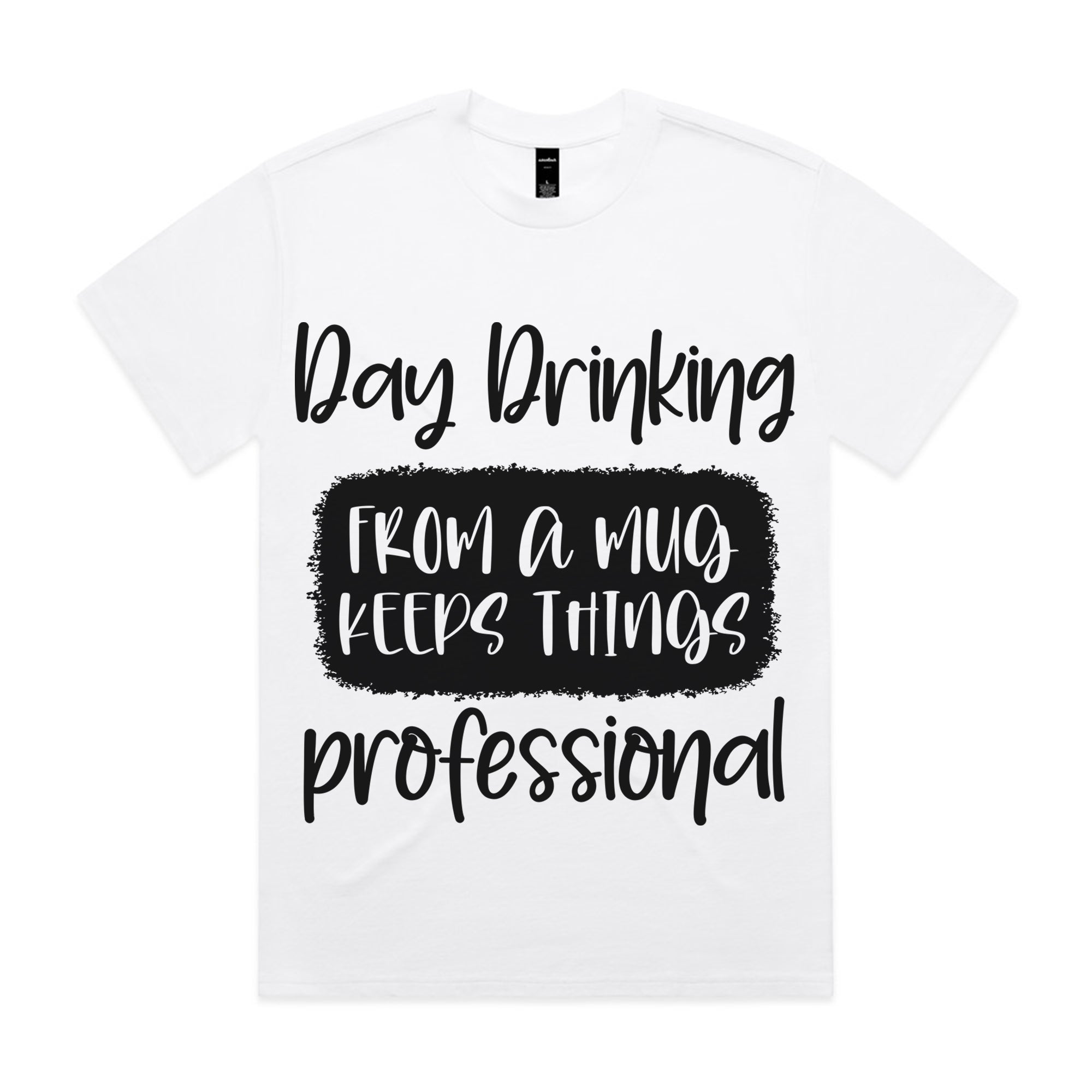Funny Drinking T-Shirt – “Day Drinking From a Mug Keeps Things Professional”