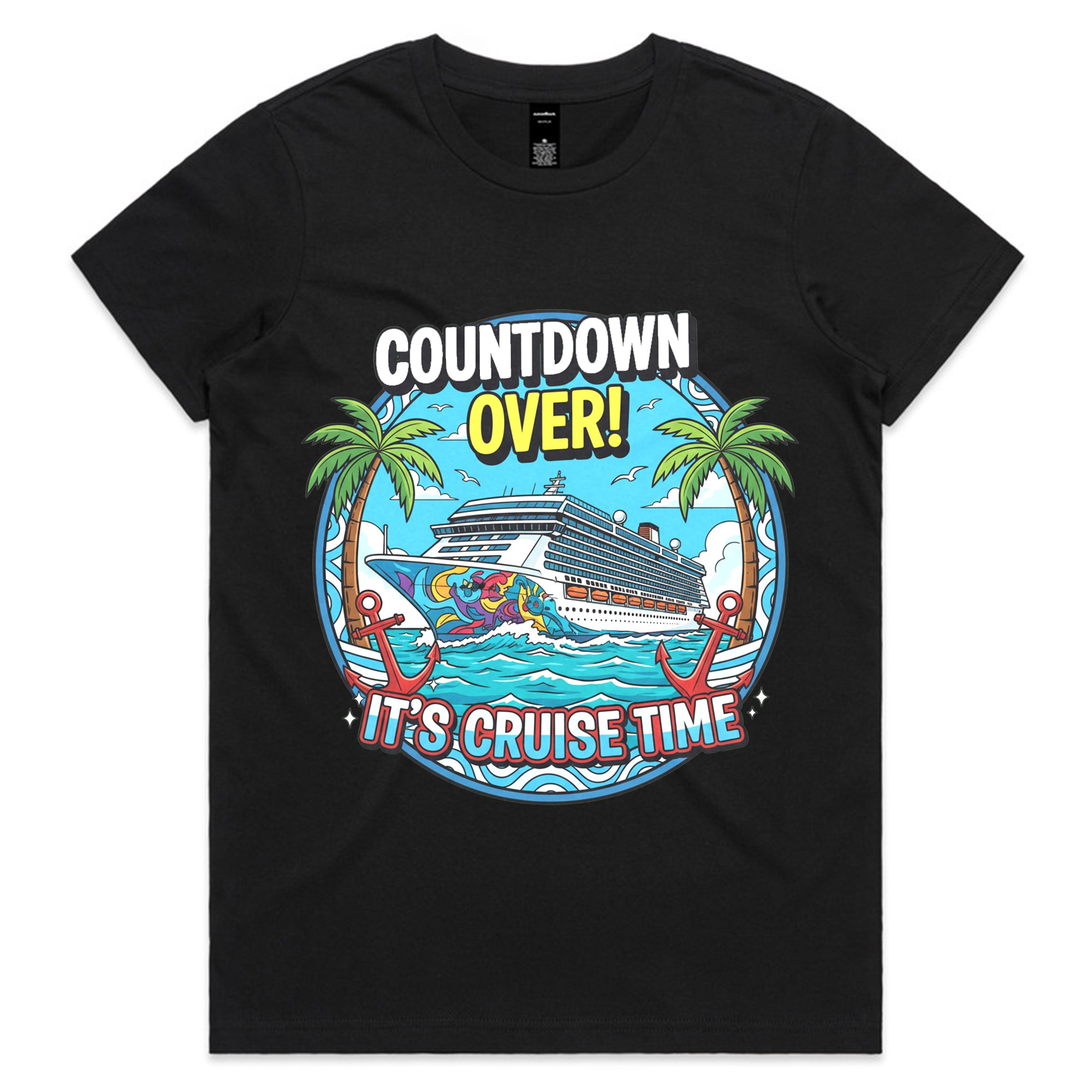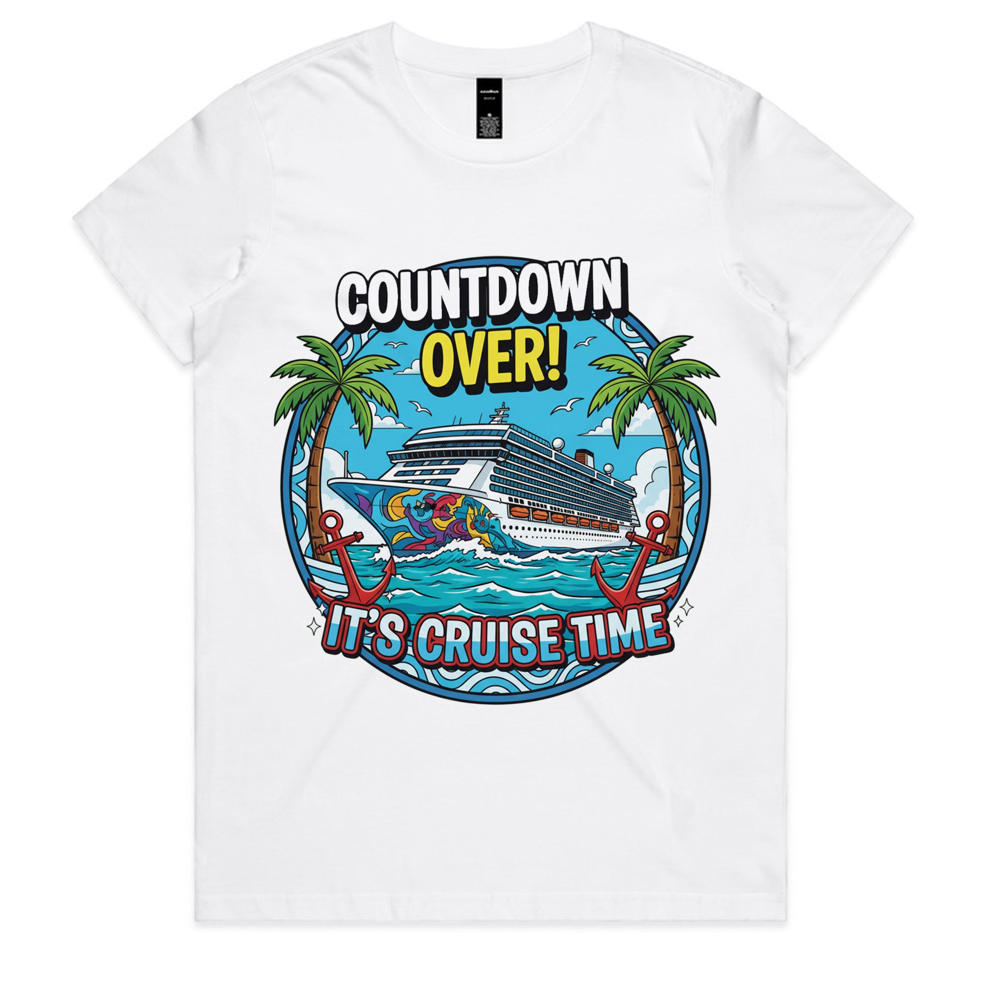 No more waiting — it’s finally cruise time! This playful design features a massive ship cutting through bright blue waves, surrounded by palm trees and anchors. Energetic, fun, and full of excitement — ideal for celebrating your long-awaited getaway.