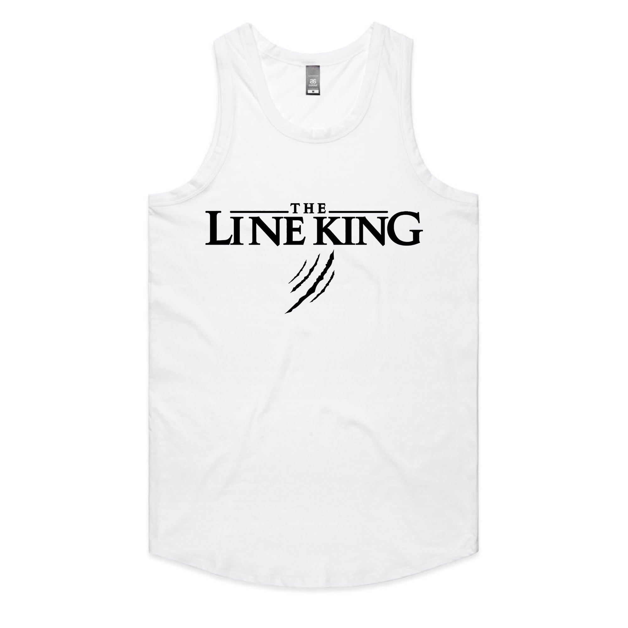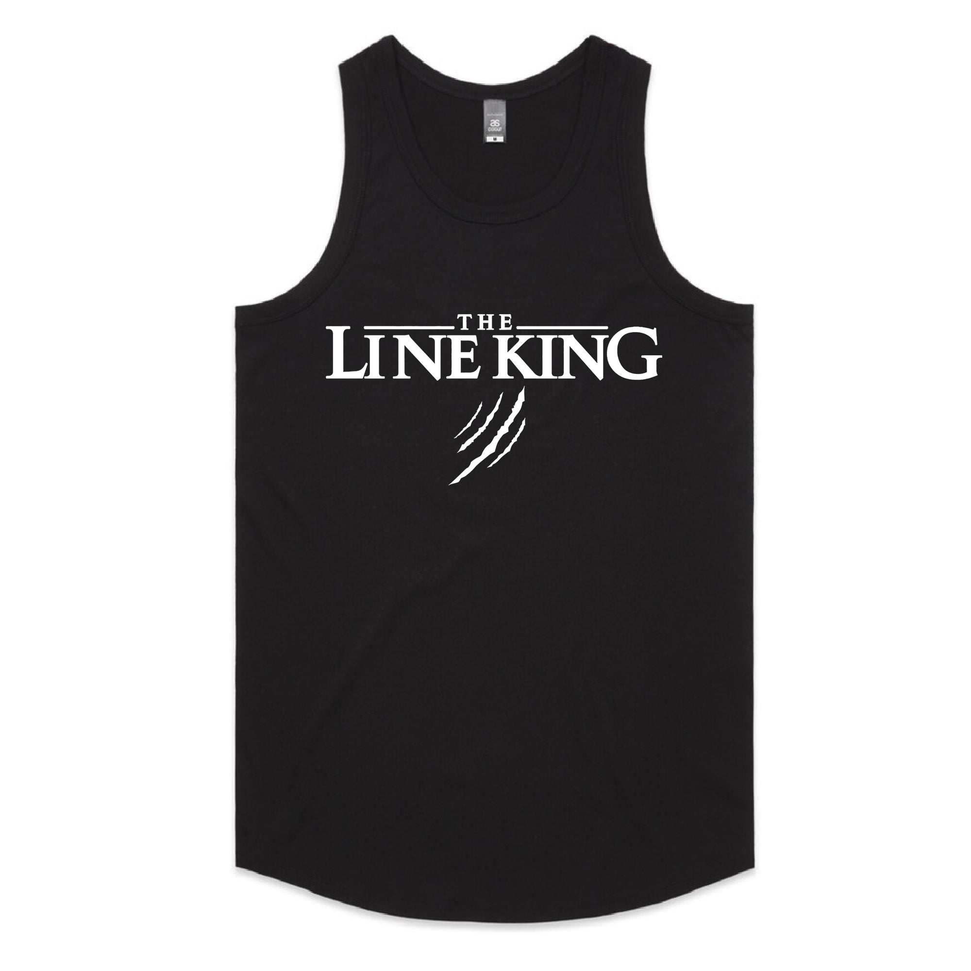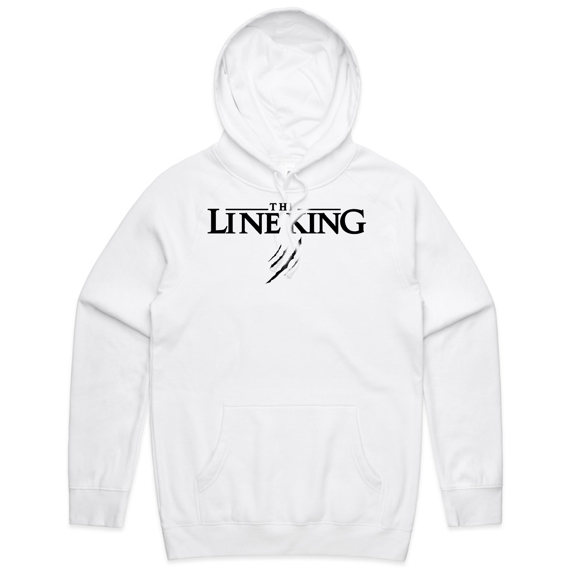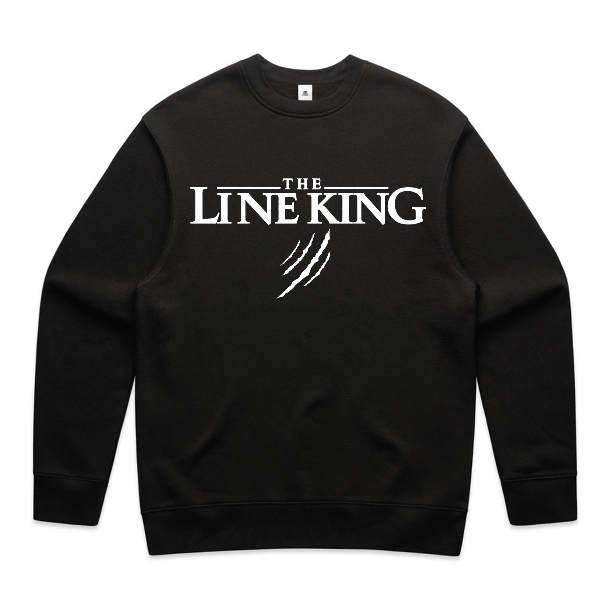A simple yet striking design parodying a famous movie logo, with the words “The Line King” and claw mark graphics below. The minimal white-on-black print gives it a sleek, iconic look.
