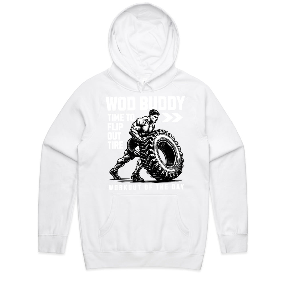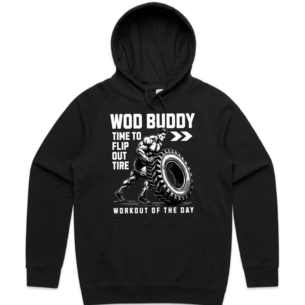 Get ready to push your limits with the "WOD Buddy" gym t-shirt! Perfect for CrossFit enthusiasts, functional fitness warriors, and hardcore athletes, this bold and powerful design features a muscular athlete flipping a massive tire, a classic symbol of strength, endurance, and determination. The "Time to Flip Out" and "Workout of the Day" typography makes this tee a must-have for anyone who lives for intense WOD sessions.