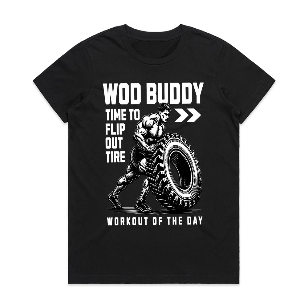 If flipping tires, crushing PRs, and tackling WODs is your thing, this "WOD Buddy" t-shirt is the ultimate badge of honor for your training sessions.