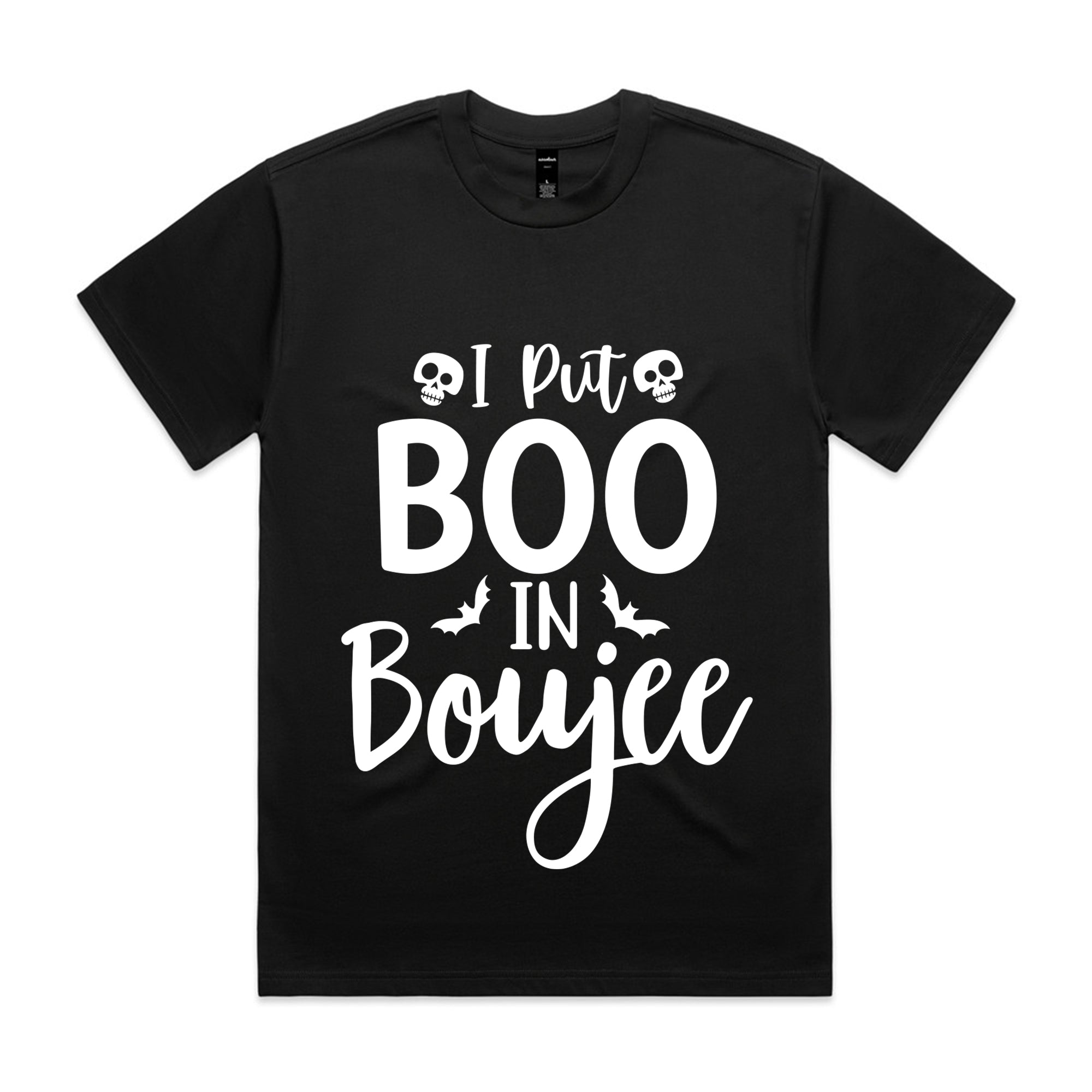 It’s a fun mix of Halloween spirit and sassy fashion vibes, perfect for those who love staying boujee even during spooky season. With skulls and bats adding a festive touch, this tee is ideal for Halloween parties, trick-or-treating in style, or just rocking a spooky-chic look.