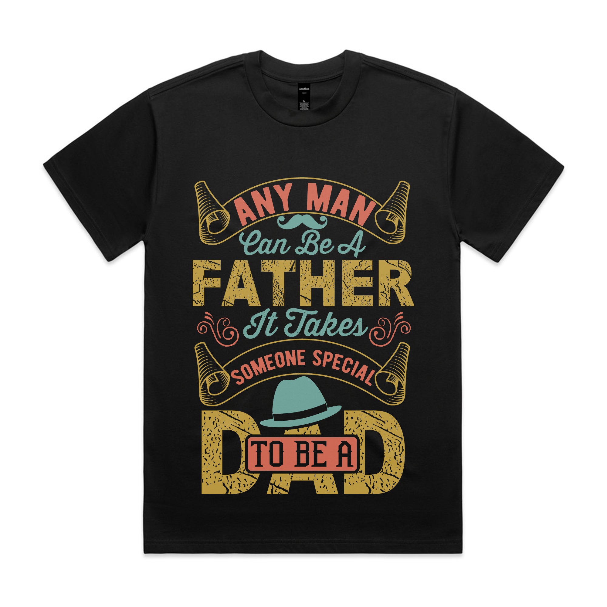 Celebrate the father figure who means the world to you with this bold and heartfelt graphic tee. Featuring the inspiring message βAny Man Can Be a Father, It Takes Someone Special to Be a Dadβ, this design honors the love, dedication, and uniqueness of true dads.