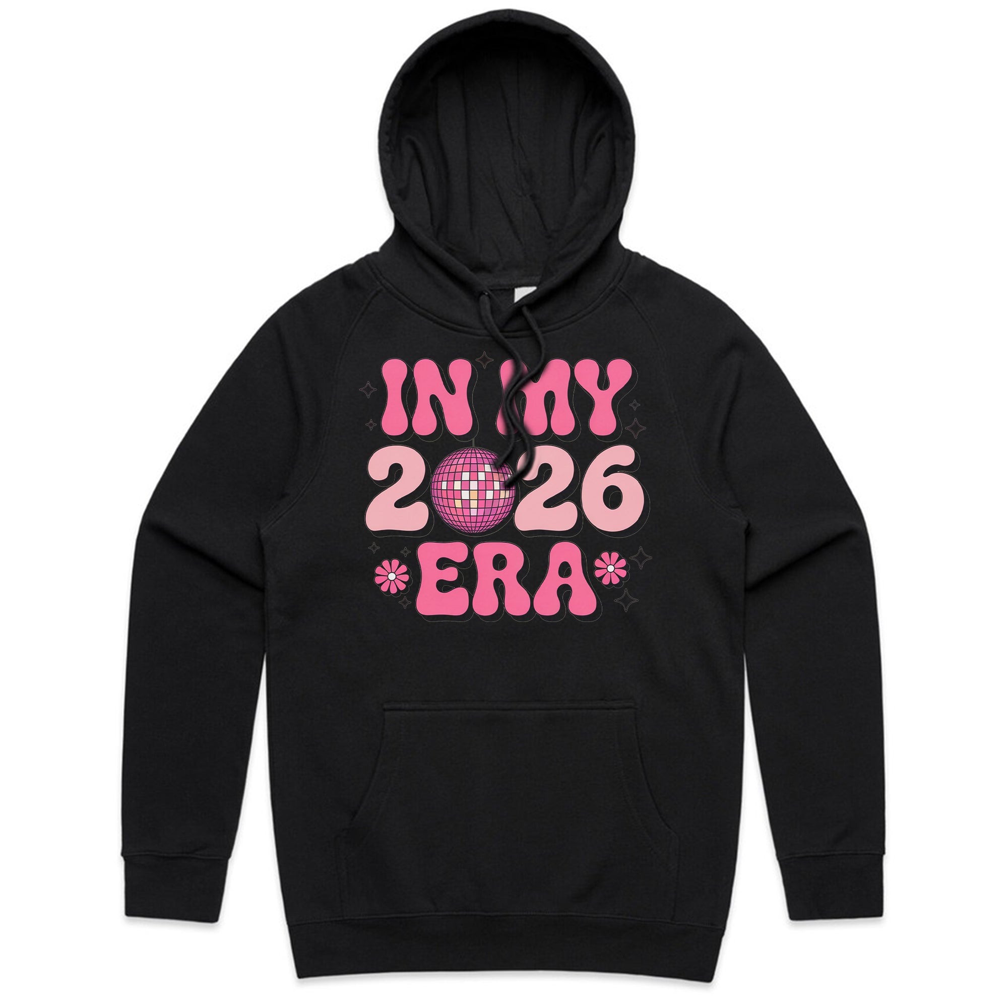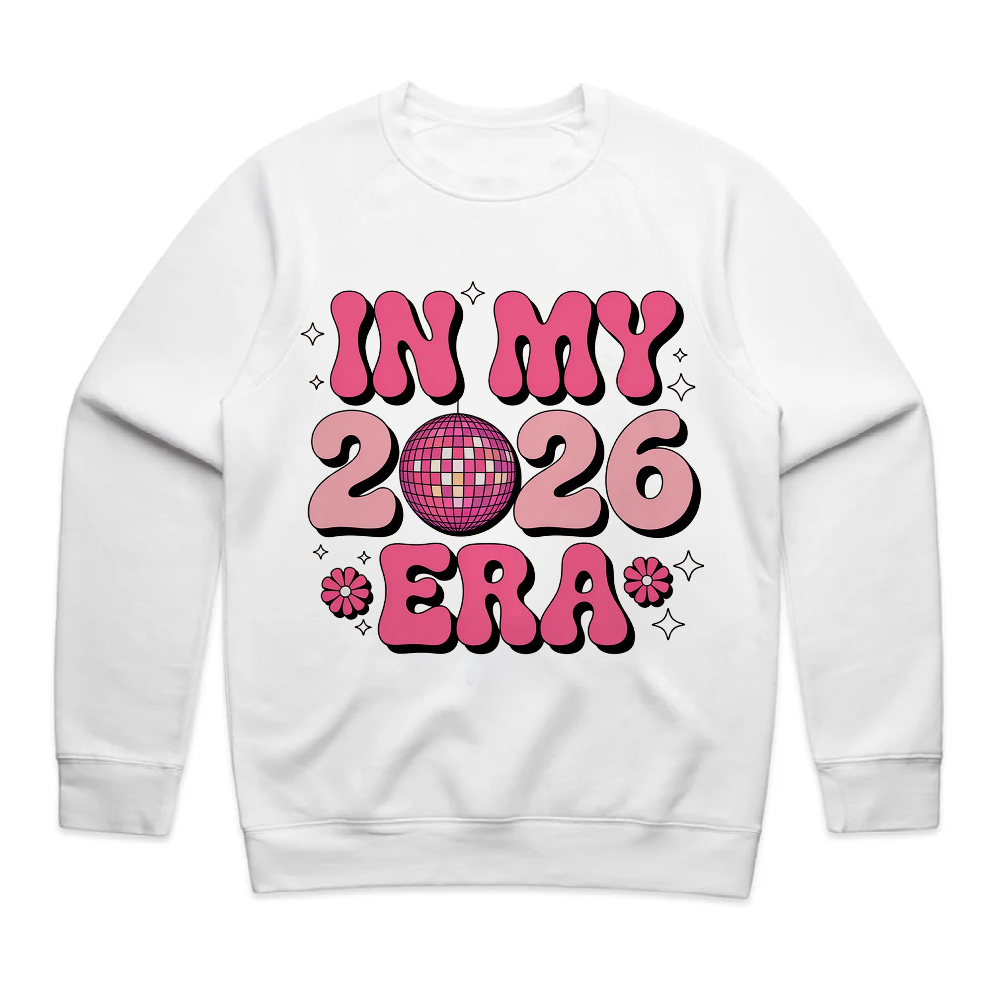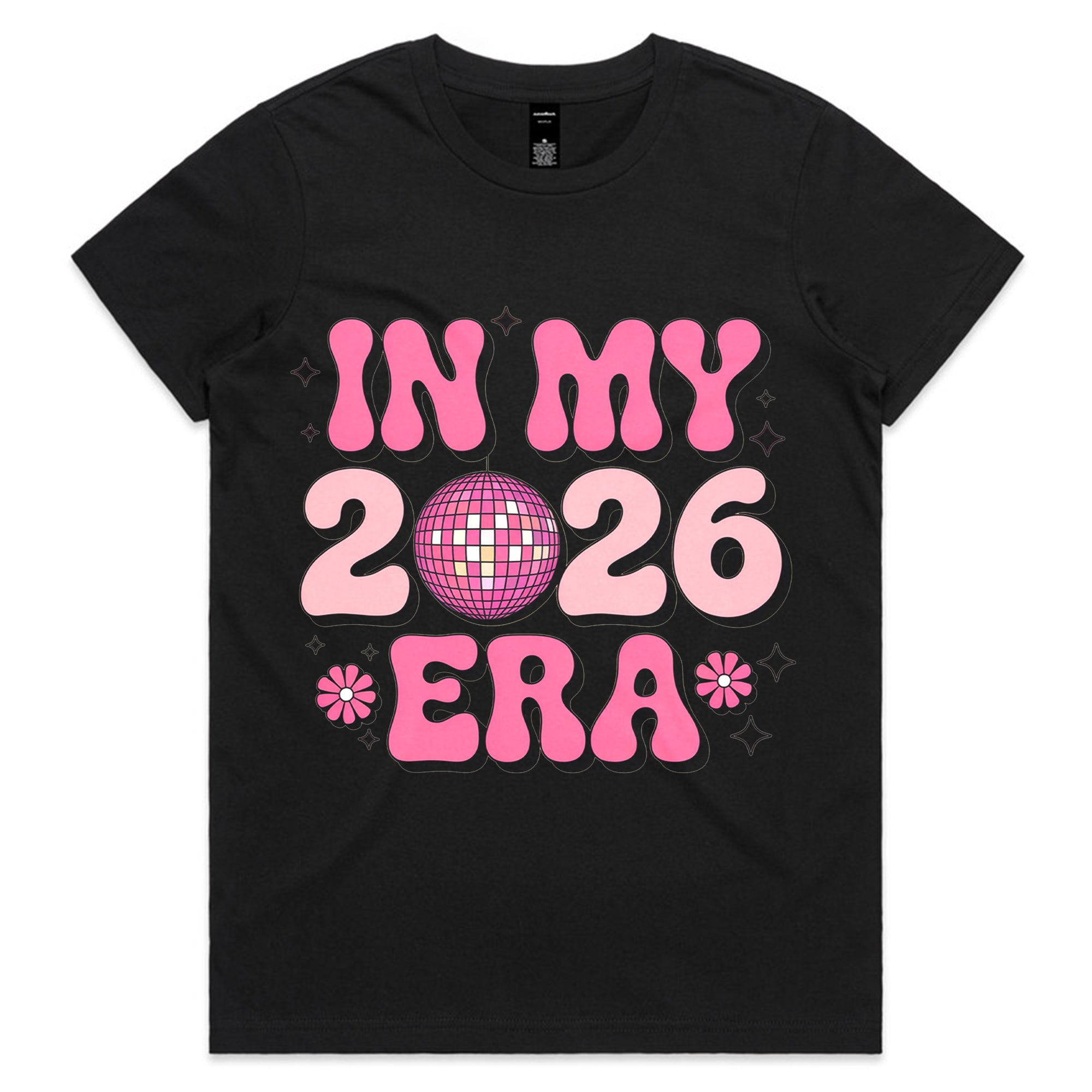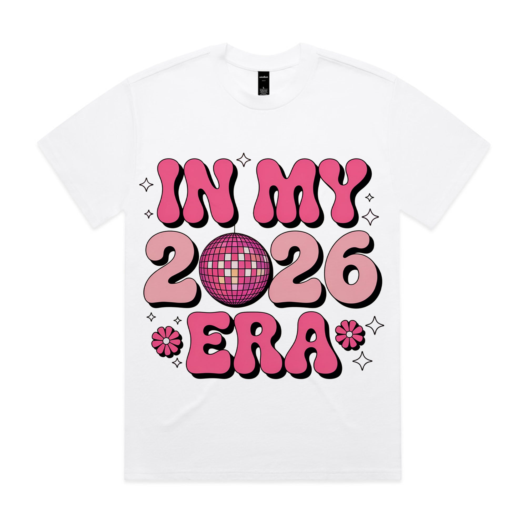 Step into your moment with this fun and stylish “In My 2026 Era” T-shirt. Designed with bold, groovy pink lettering and a sparkling disco ball at the center, it captures the perfect mix of retro and modern vibes. The playful flower accents and bubbly shapes make it a standout piece for anyone ready to shine in 2026. Whether for parties, casual days, or as a statement of confidence, this tee lets everyone know — 2026 is your era!