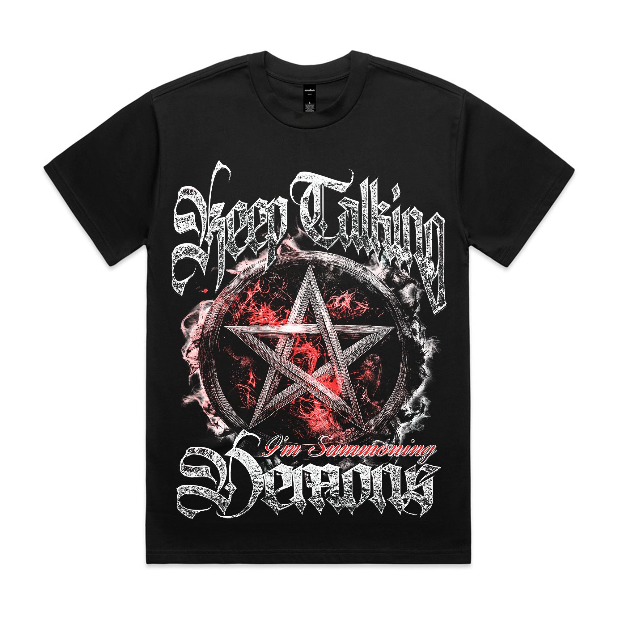 For the ones who thrive on sarcasm and dark humor, this T-shirt says it all. Featuring a fiery pentagram with gothic lettering, it’s the ultimate mix of edgy, rebellious, and hilarious.