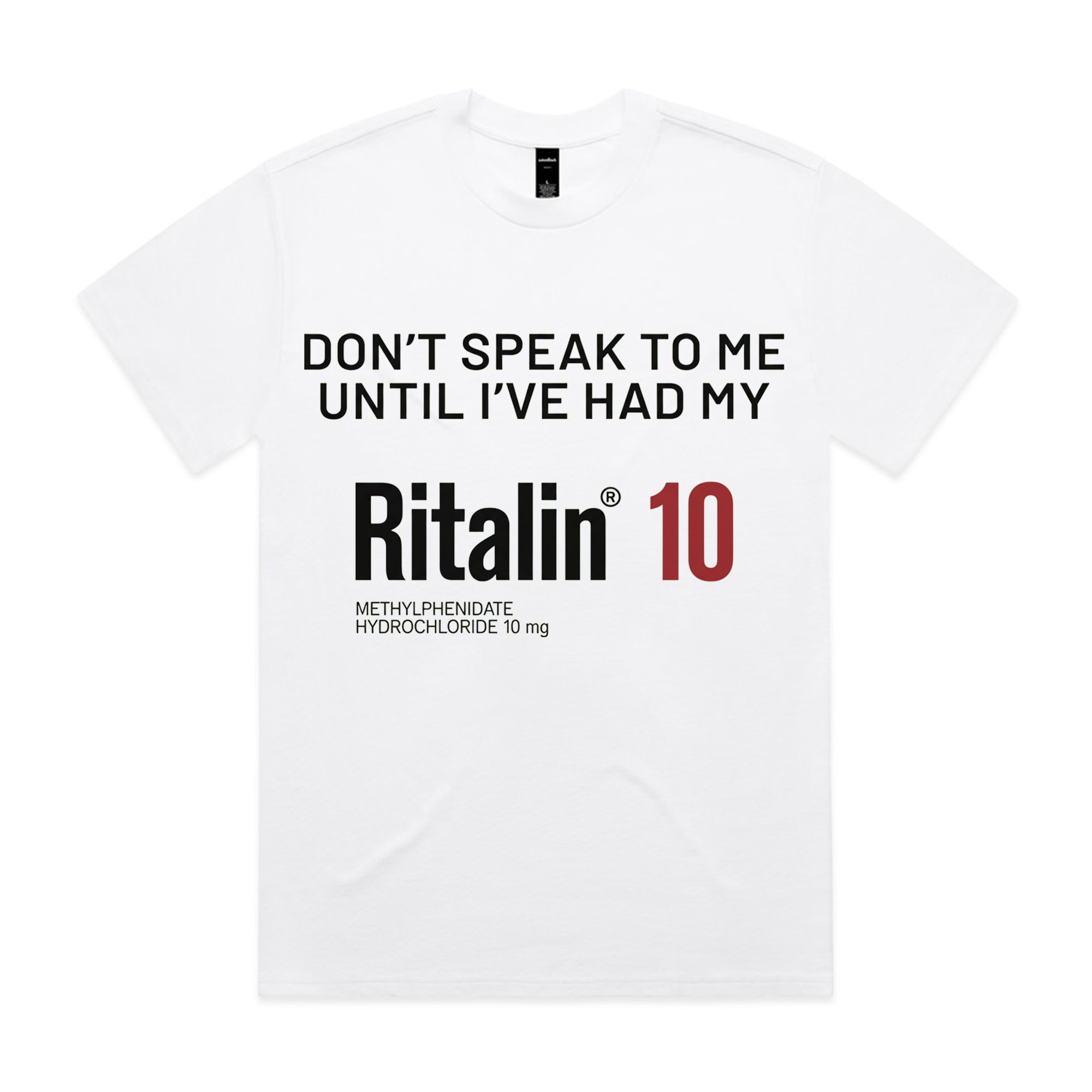 A clean, minimalist text-based design that delivers dry, dark humor with maximum impact. Styled like pharmaceutical branding, it plays on sarcasm and modern burnout culture. Simple, sharp, and instantly relatable for anyone who appreciates blunt honesty.