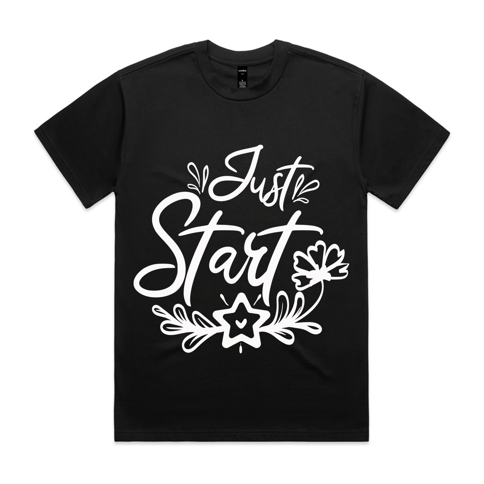 Sometimes the hardest step is the first one. This “Just Start” T-shirt is a powerful reminder to take action, embrace new beginnings, and chase your goals. Featuring elegant white typography and floral accents on a bold black background, it’s both stylish and inspiring.