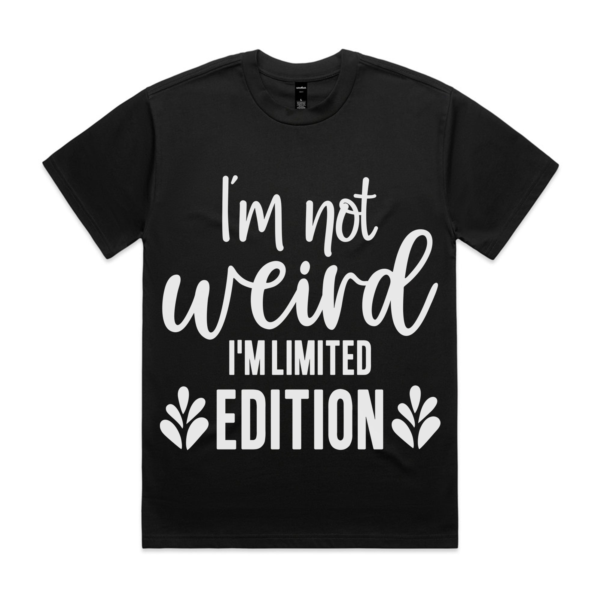 Show off your one-of-a-kind personality with this bold and funny graphic tee! Featuring the playful phrase “I’m Not Weird, I’m Limited Edition”, this shirt is perfect for anyone who embraces their uniqueness with pride and humor.