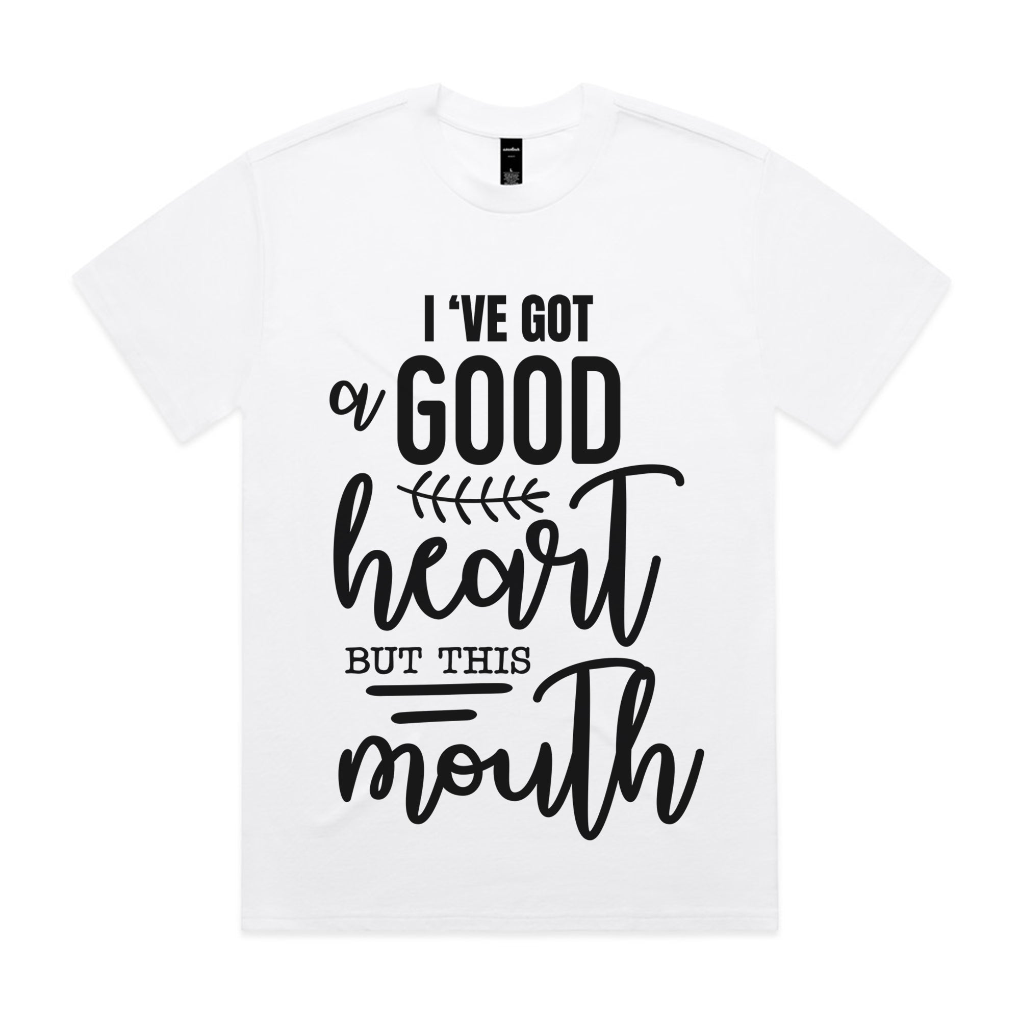 Perfect for anyone with a big heart and an even bigger personality, this witty graphic tee says it all: “I’ve Got a Good Heart, But This Mouth.” Whether you’re known for your sass, sarcasm, or unfiltered honesty, this shirt is made just for you.