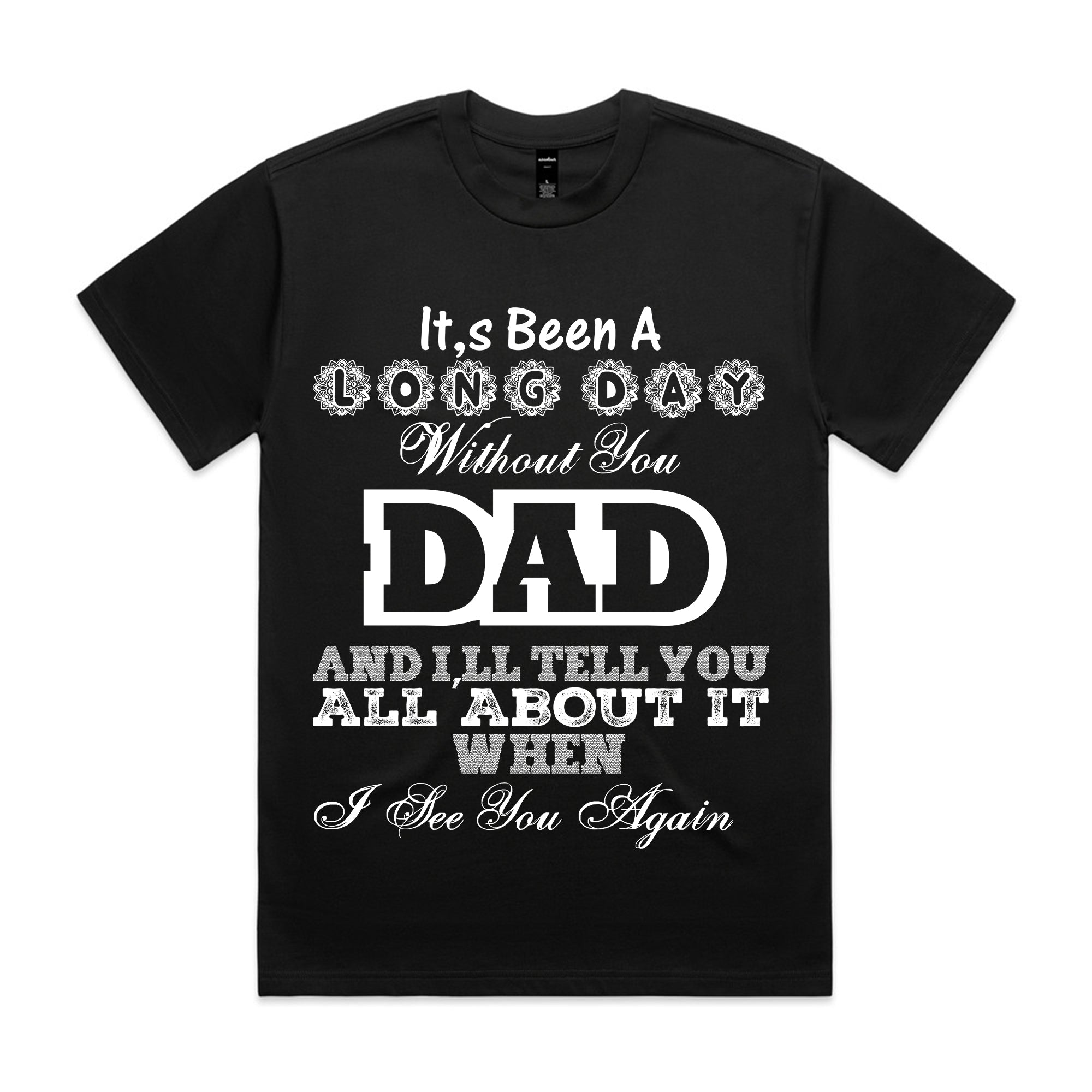 Honor the memory of your beloved father with this heartfelt graphic T-shirt. Featuring an emotional message of love and remembrance, this design is perfect for keeping Dad close in your heart every day.