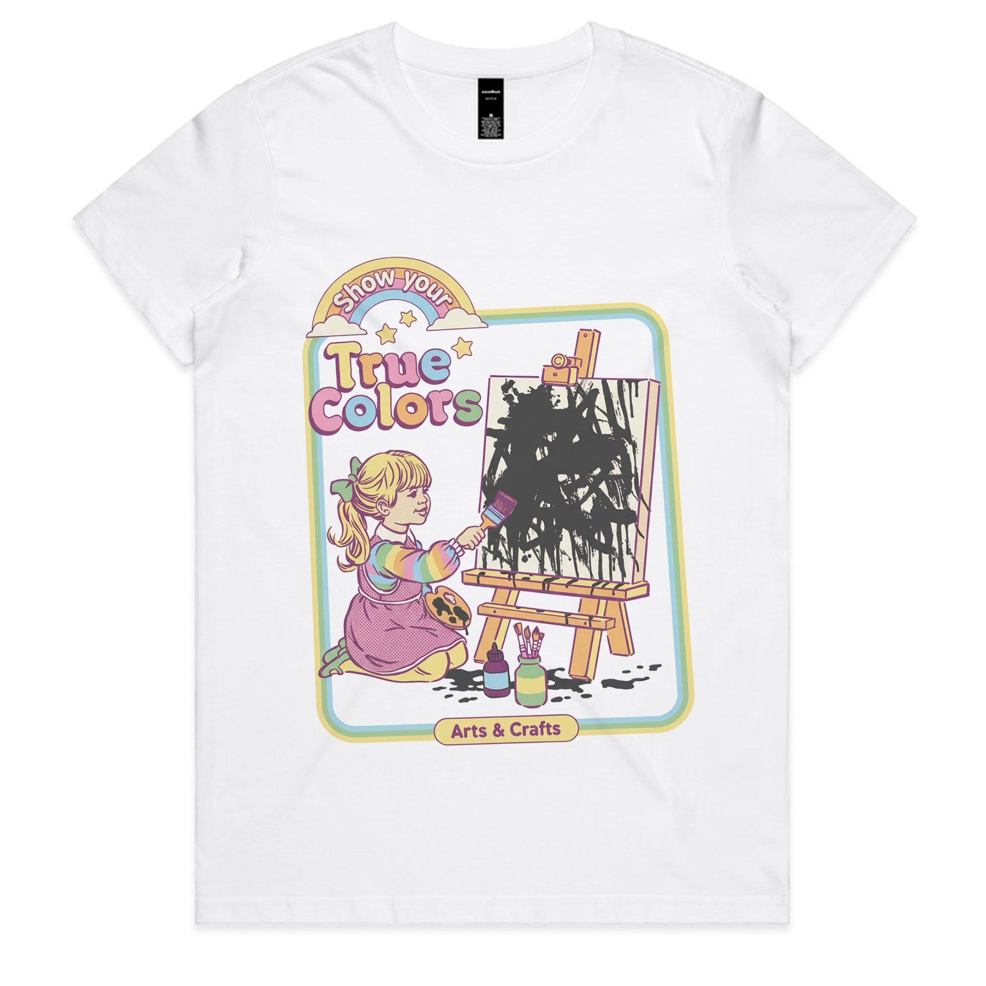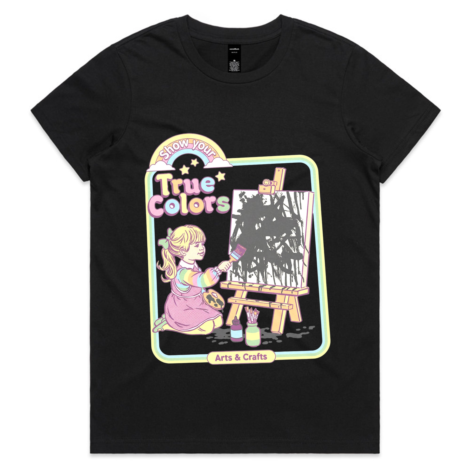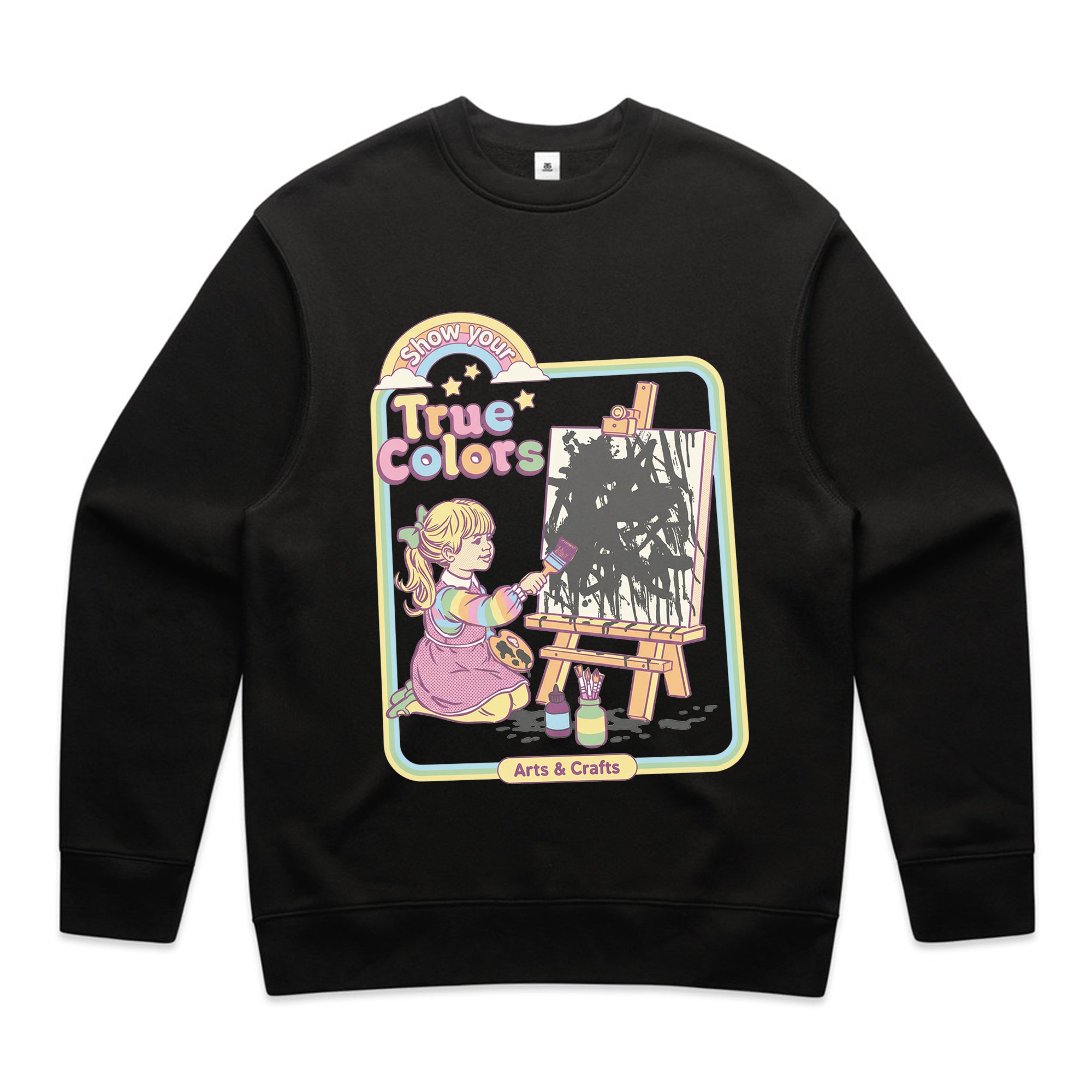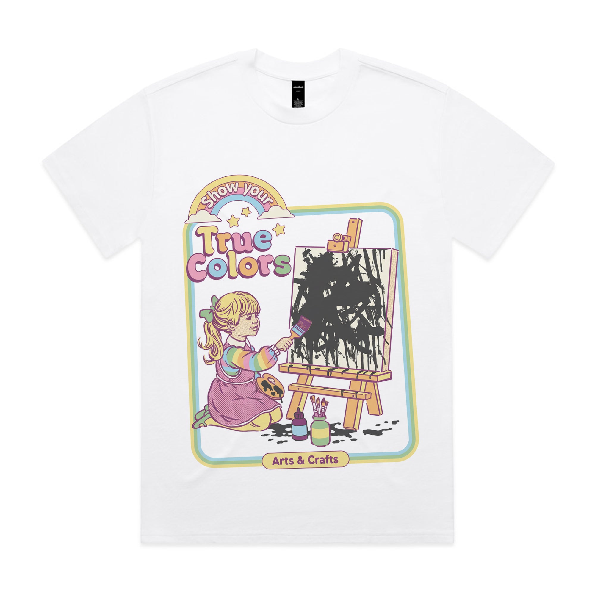 Let your creativity run wild — or chaotic. This design features a sweet little girl painting a completely black, abstract canvas with the phrase “Show Your True Colors.” A perfect mix of dark humor and childhood nostalgia for those who love irony in art.