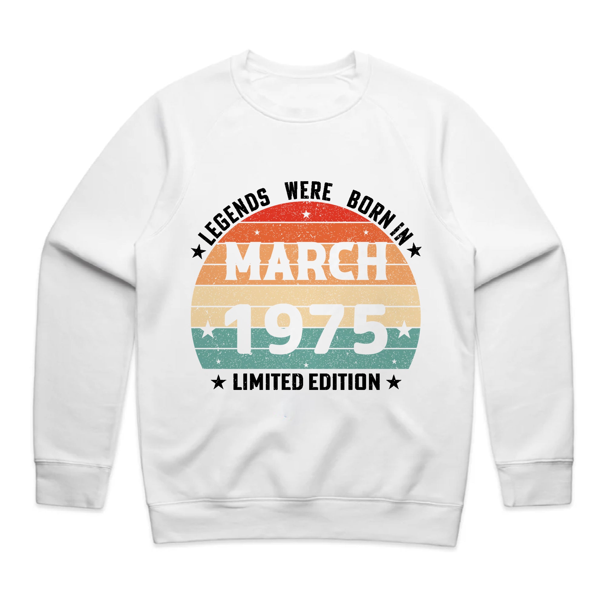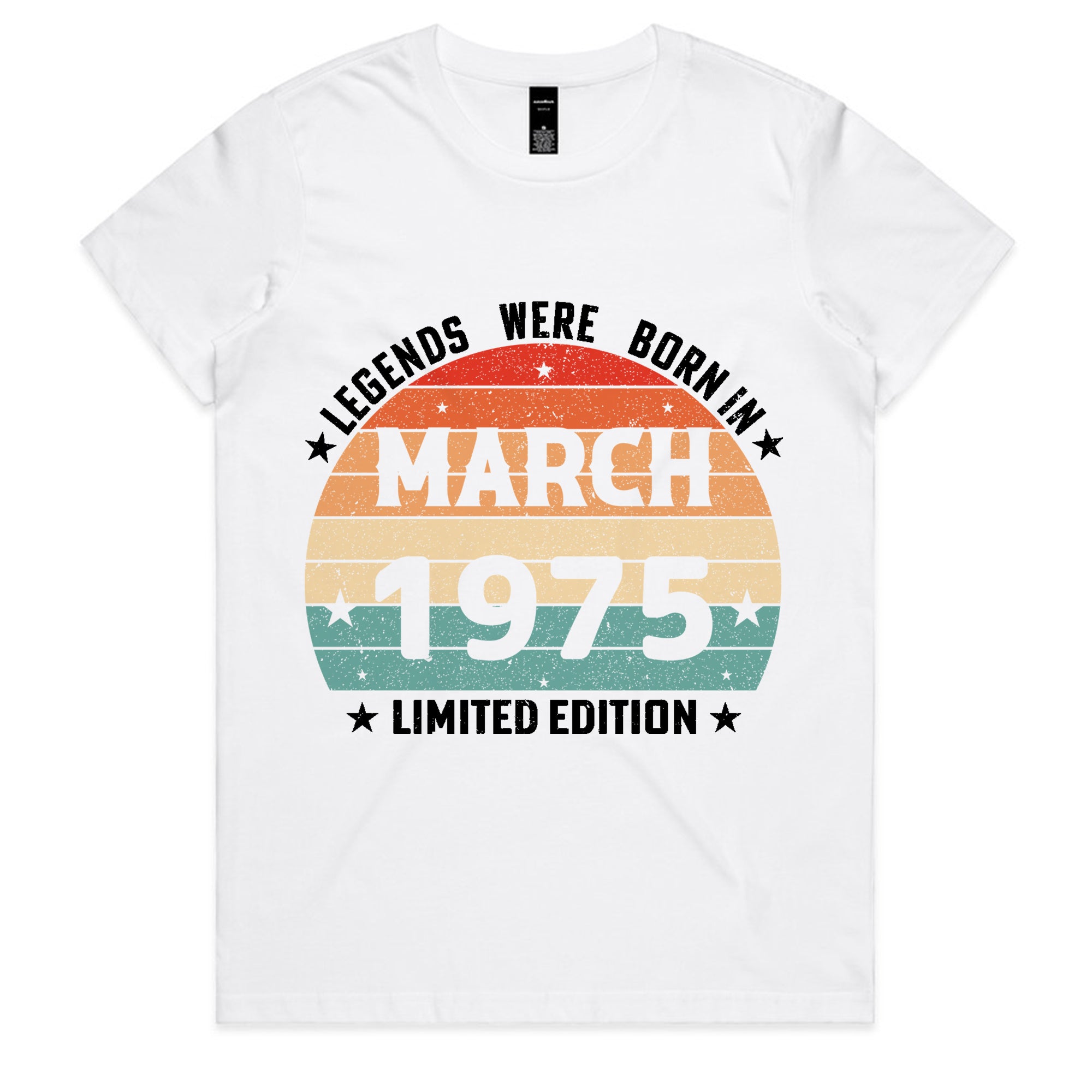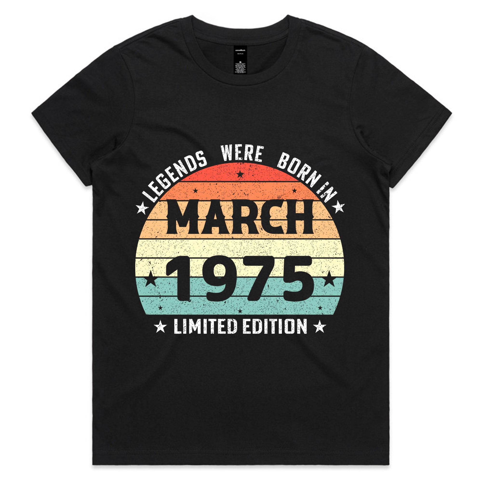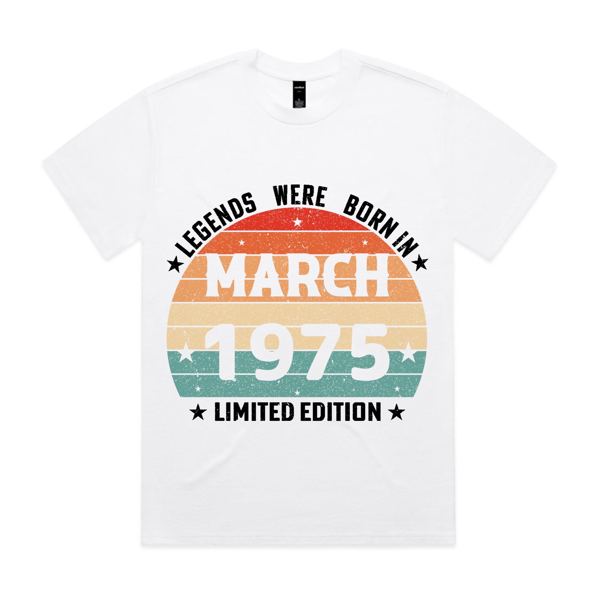 Show off your legendary birth month with this stylish “Legends Were Born in March 1975” T-shirt. Featuring a retro sunset design with warm gradient stripes of orange, yellow, and teal, it brings a nostalgic vintage vibe to modern fashion. The bold typography and “Limited Edition” detail make it the perfect choice for those who were truly born to stand out. Whether for birthdays, reunions, or casual wear, this shirt proudly celebrates the legends of March 1975.