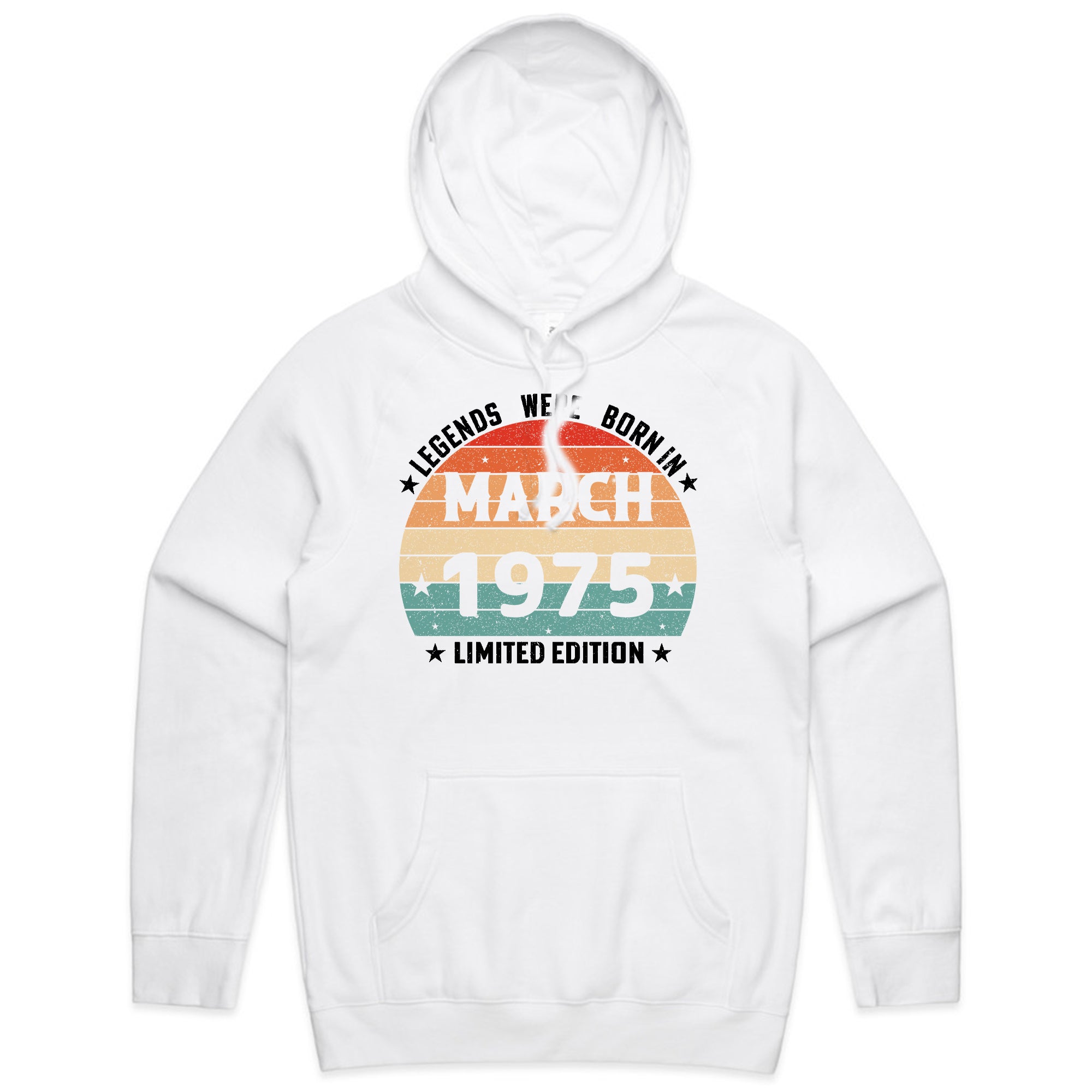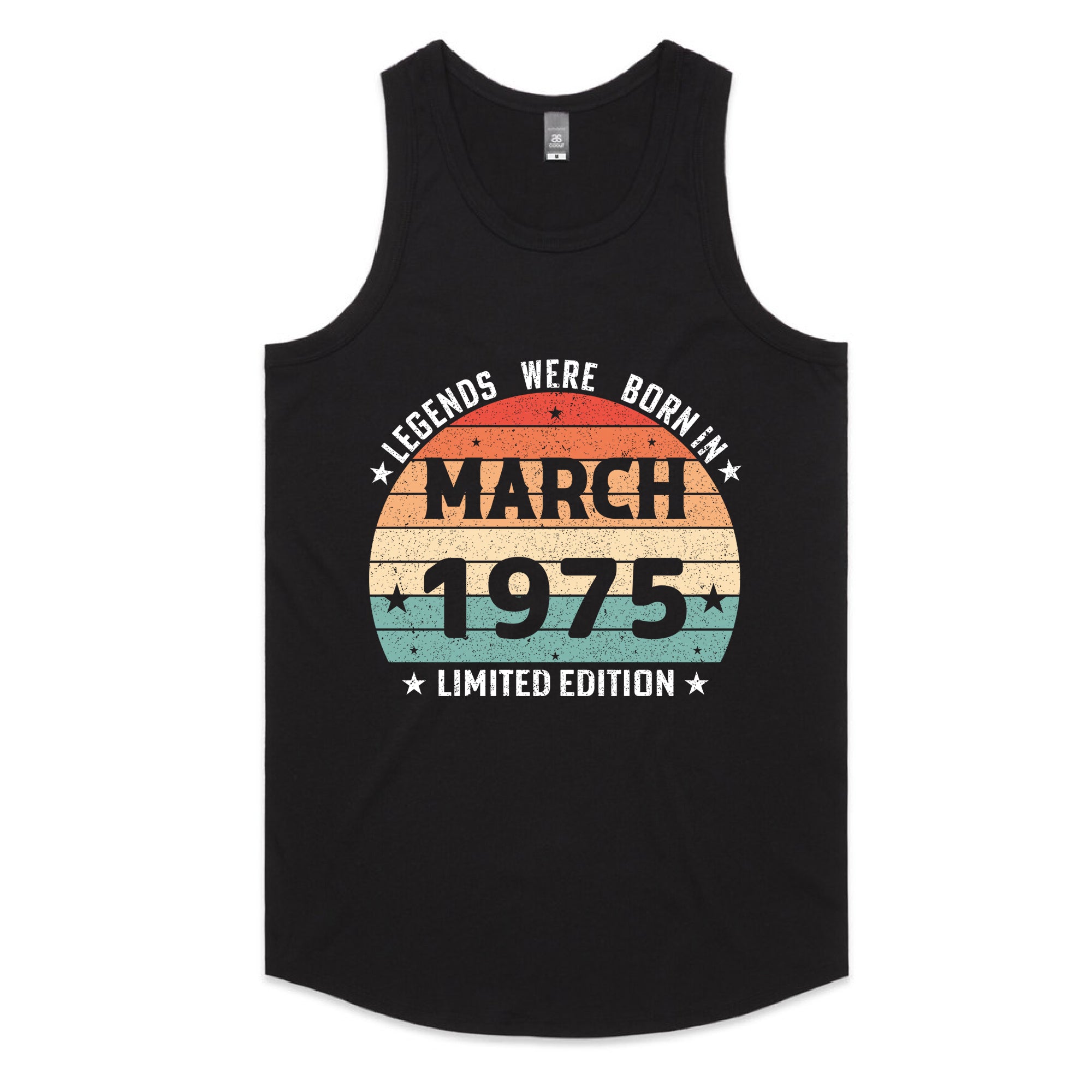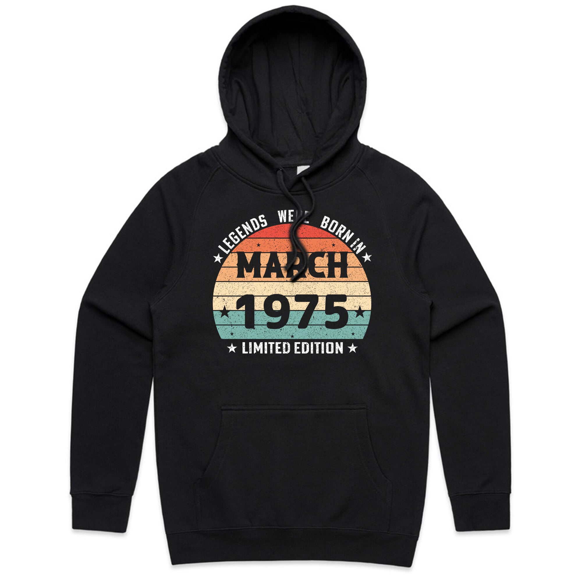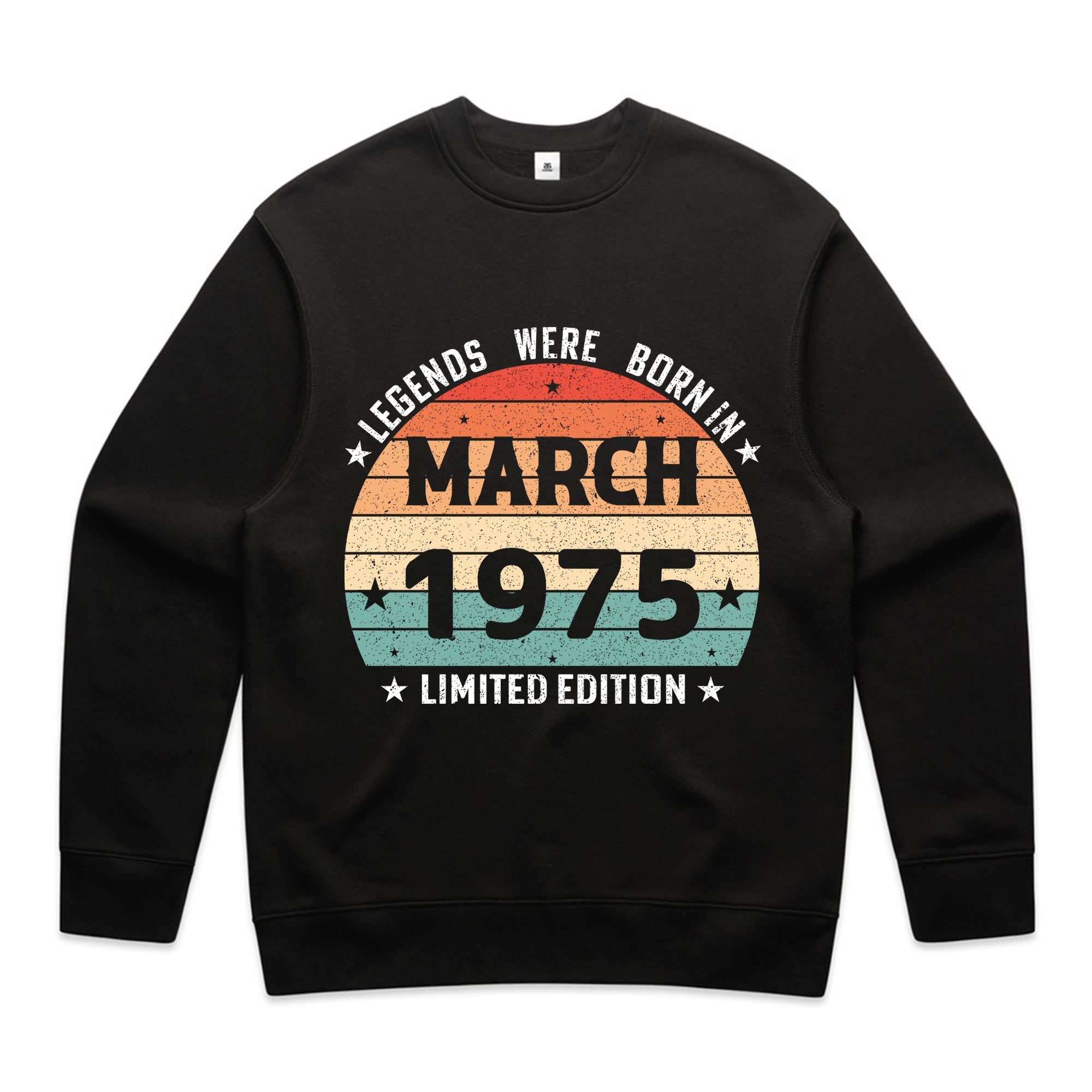 Show off your legendary birth month with this stylish “Legends Were Born in March 1975” T-shirt. Featuring a retro sunset design with warm gradient stripes of orange, yellow, and teal, it brings a nostalgic vintage vibe to modern fashion. The bold typography and “Limited Edition” detail make it the perfect choice for those who were truly born to stand out. Whether for birthdays, reunions, or casual wear, this shirt proudly celebrates the legends of March 1975.