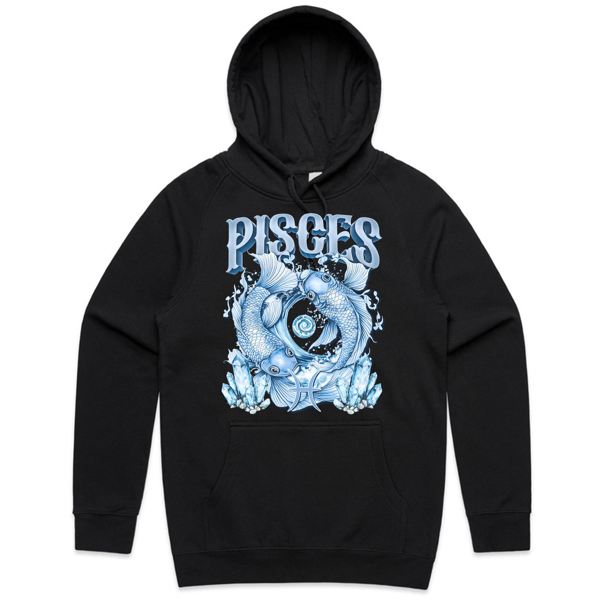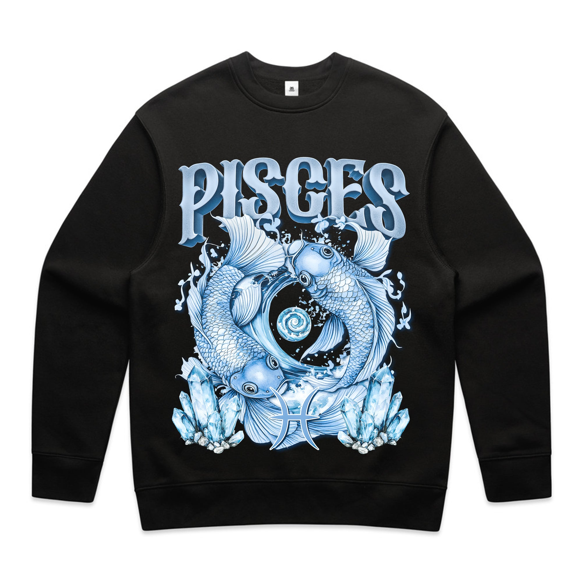 Dive into the mystical depths of Pisces with this enchanting design. Featuring two cosmic fish swimming in harmony, surrounded by glowing water elements and crystals, this tee embodies the imagination, intuition, and spiritual depth of Pisces energy.