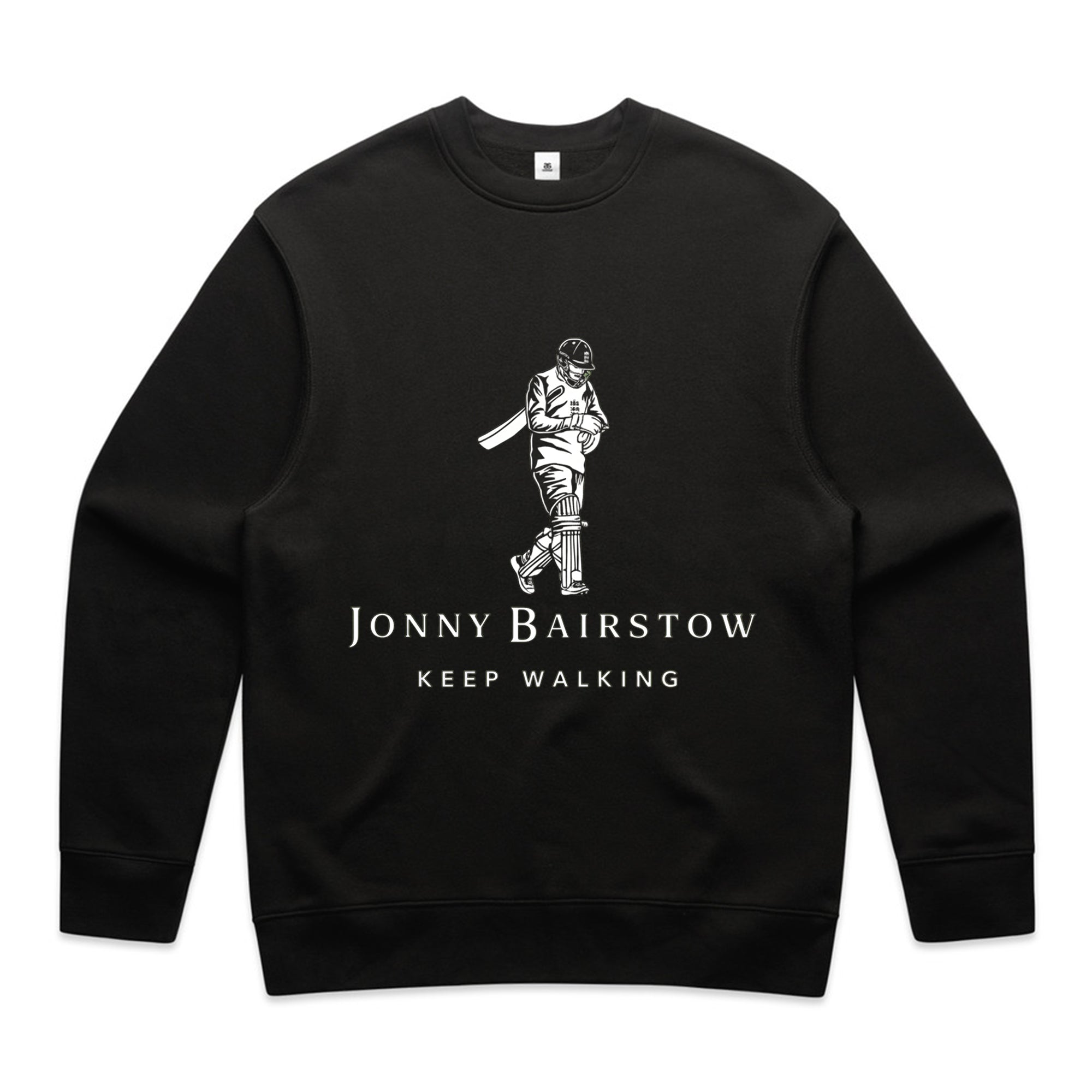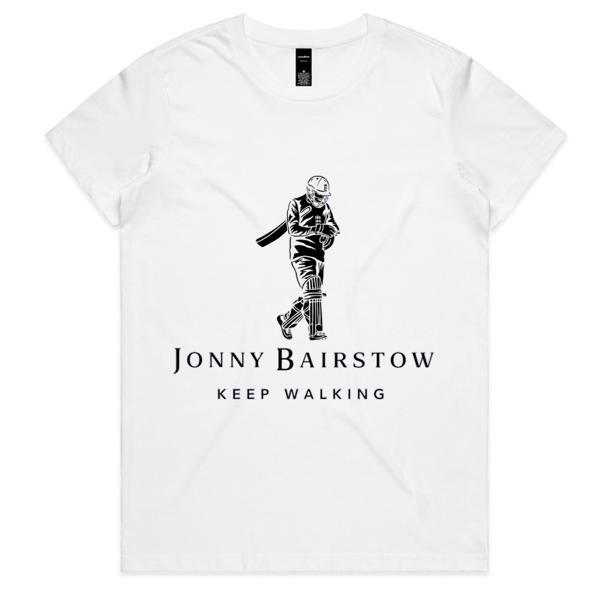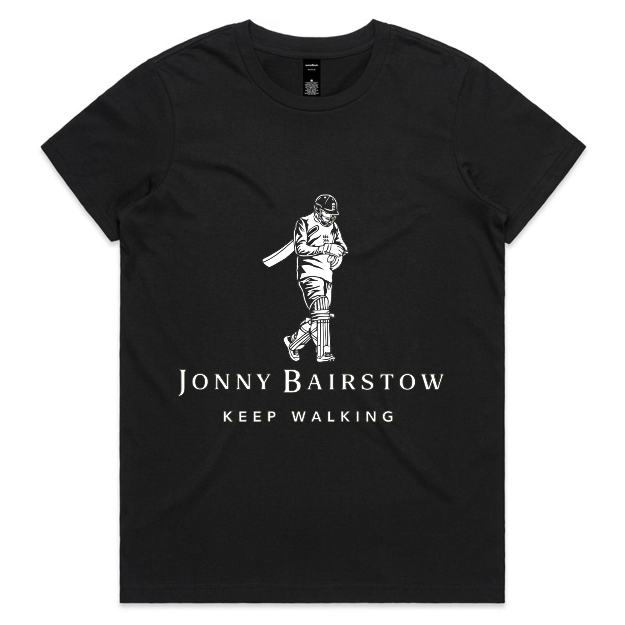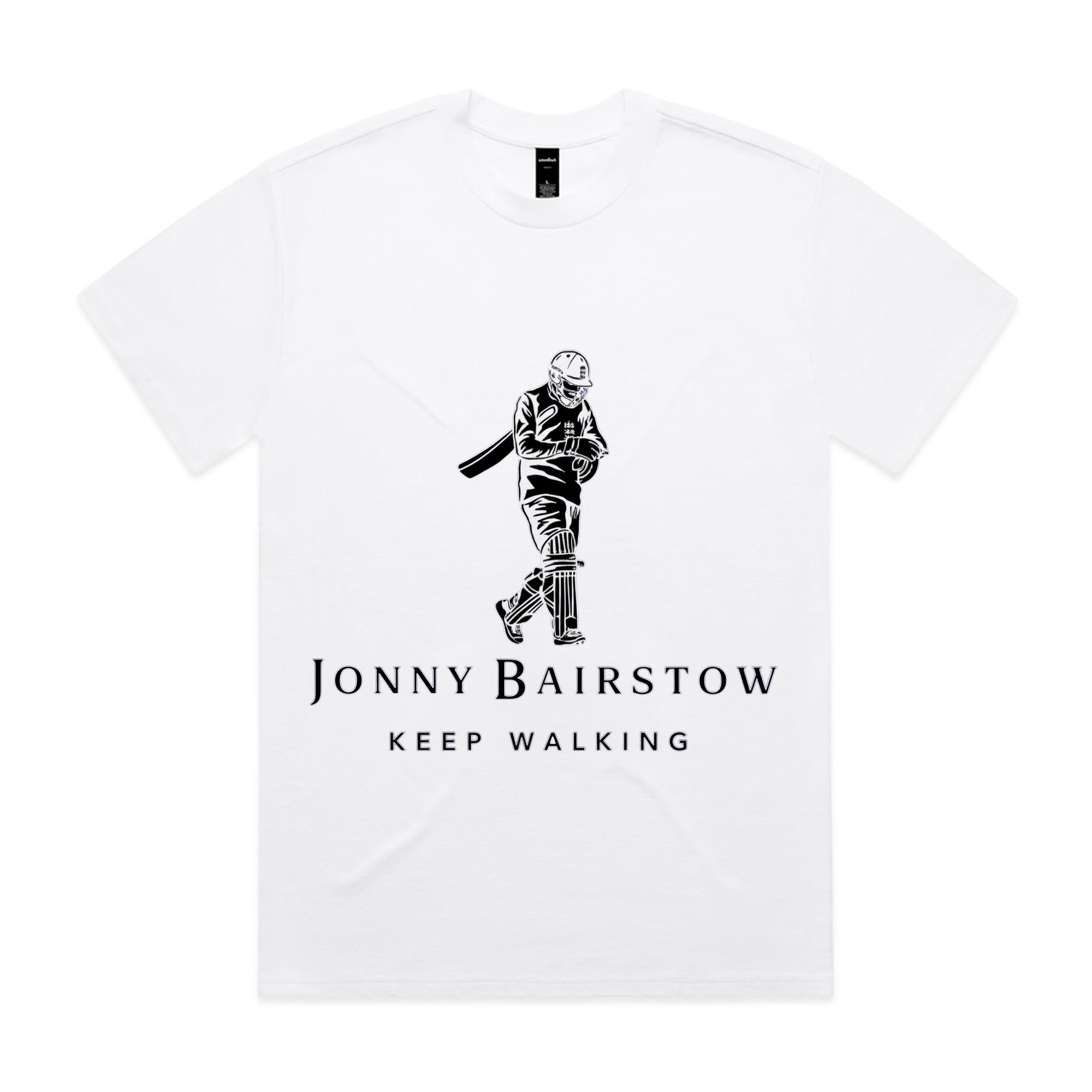A minimalist, monochrome illustration of a cricketer walking off the field, paired with the phrase “Keep Walking.” The design references iconic sports moments and resilience, delivering a calm but confident message with subtle humor appreciated by cricket fans.