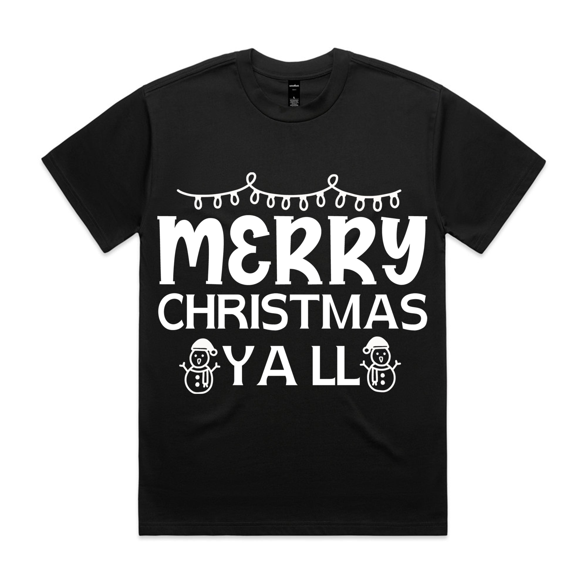 Spread Christmas cheer with this fun 'Merry Christmas Y'all' tank top, featuring cute snowman graphics and festive lights. Perfect for warm holiday gatherings!