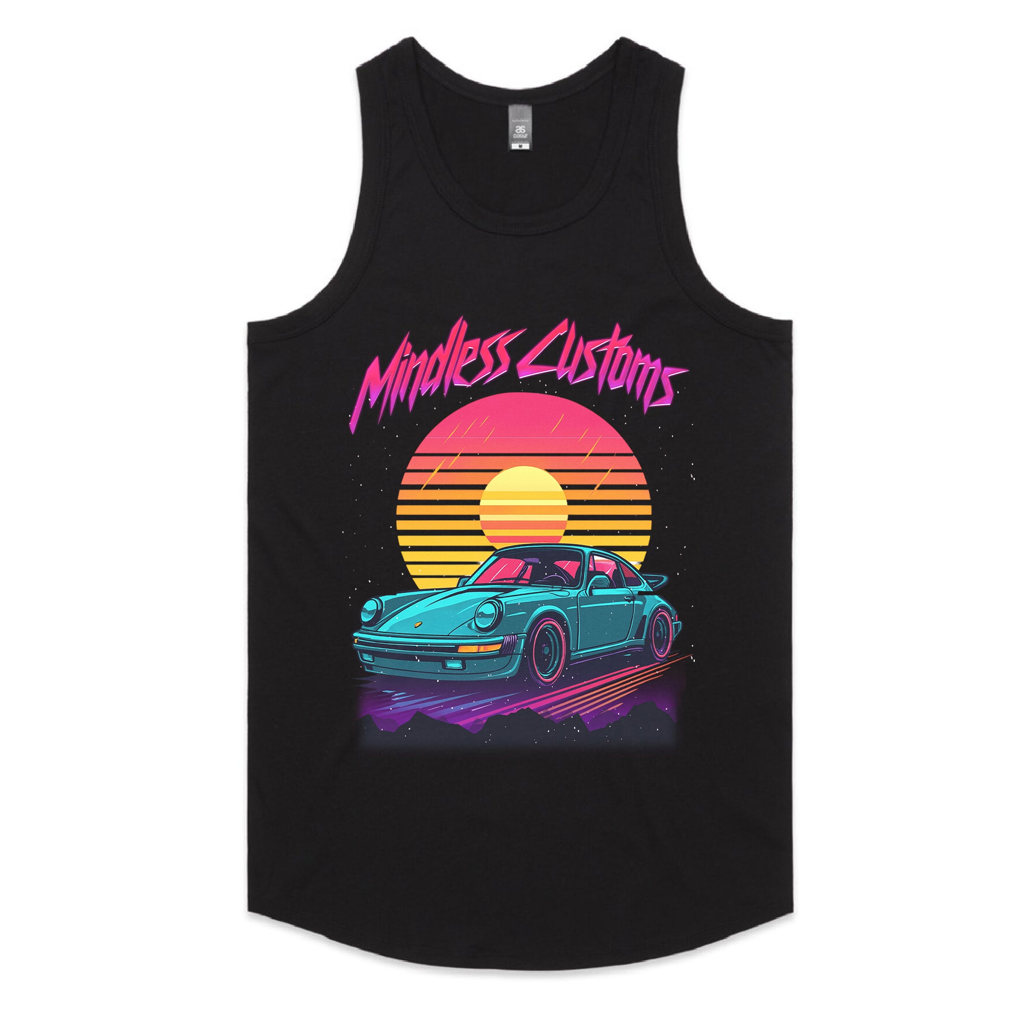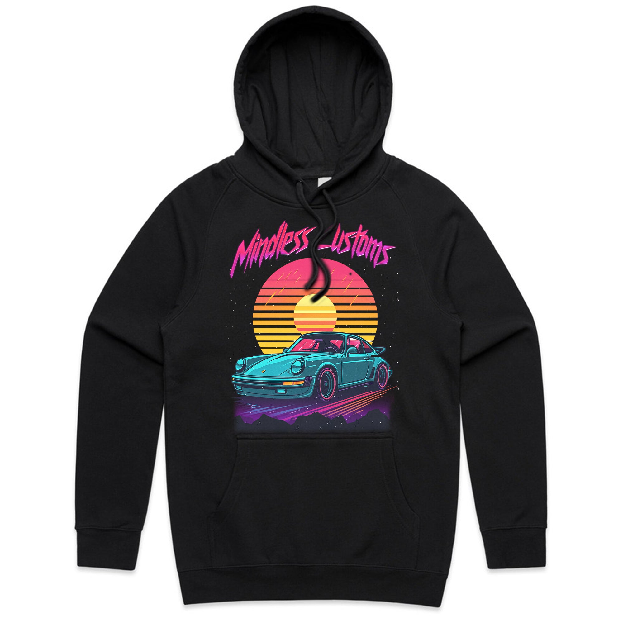 Hit the streets in style with this bold retro design. Featuring a classic sports car racing under a neon synthwave sunset, this tee embodies speed, nostalgia, and urban attitude.