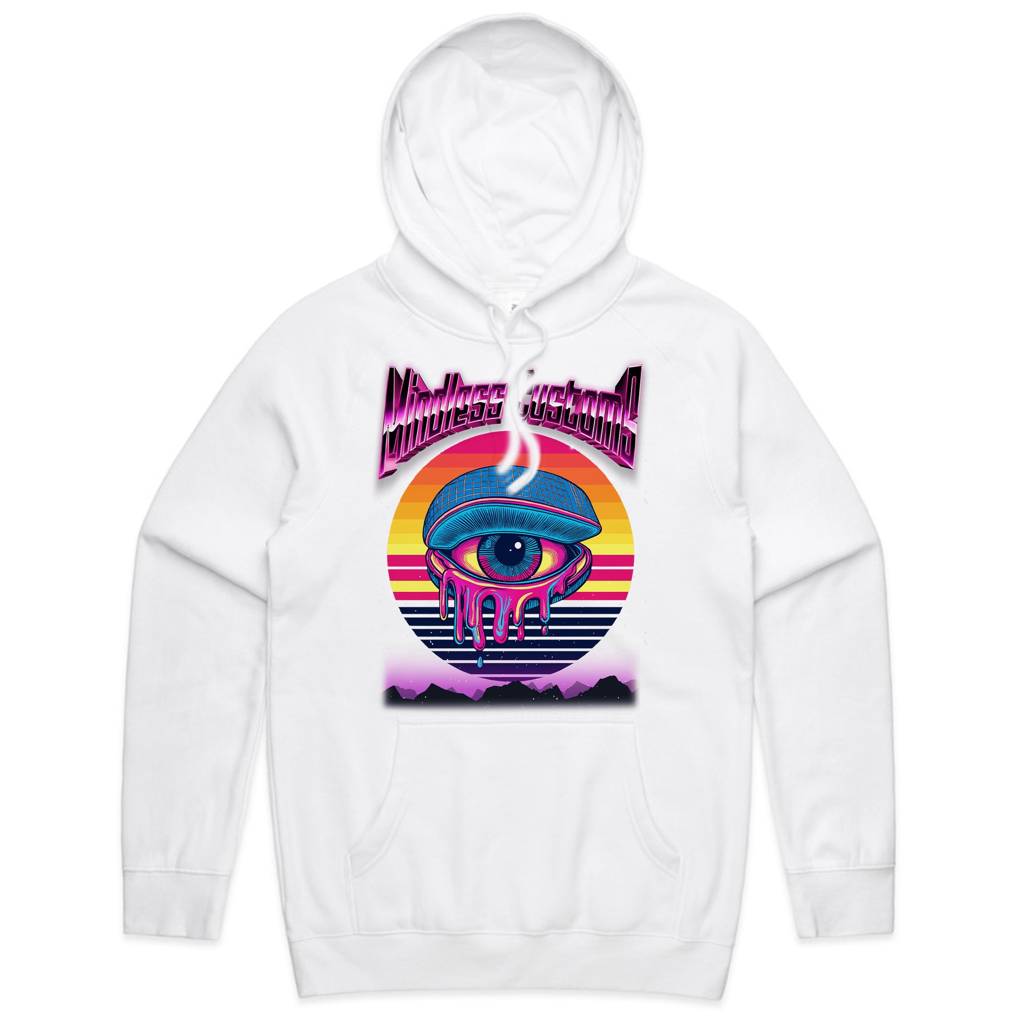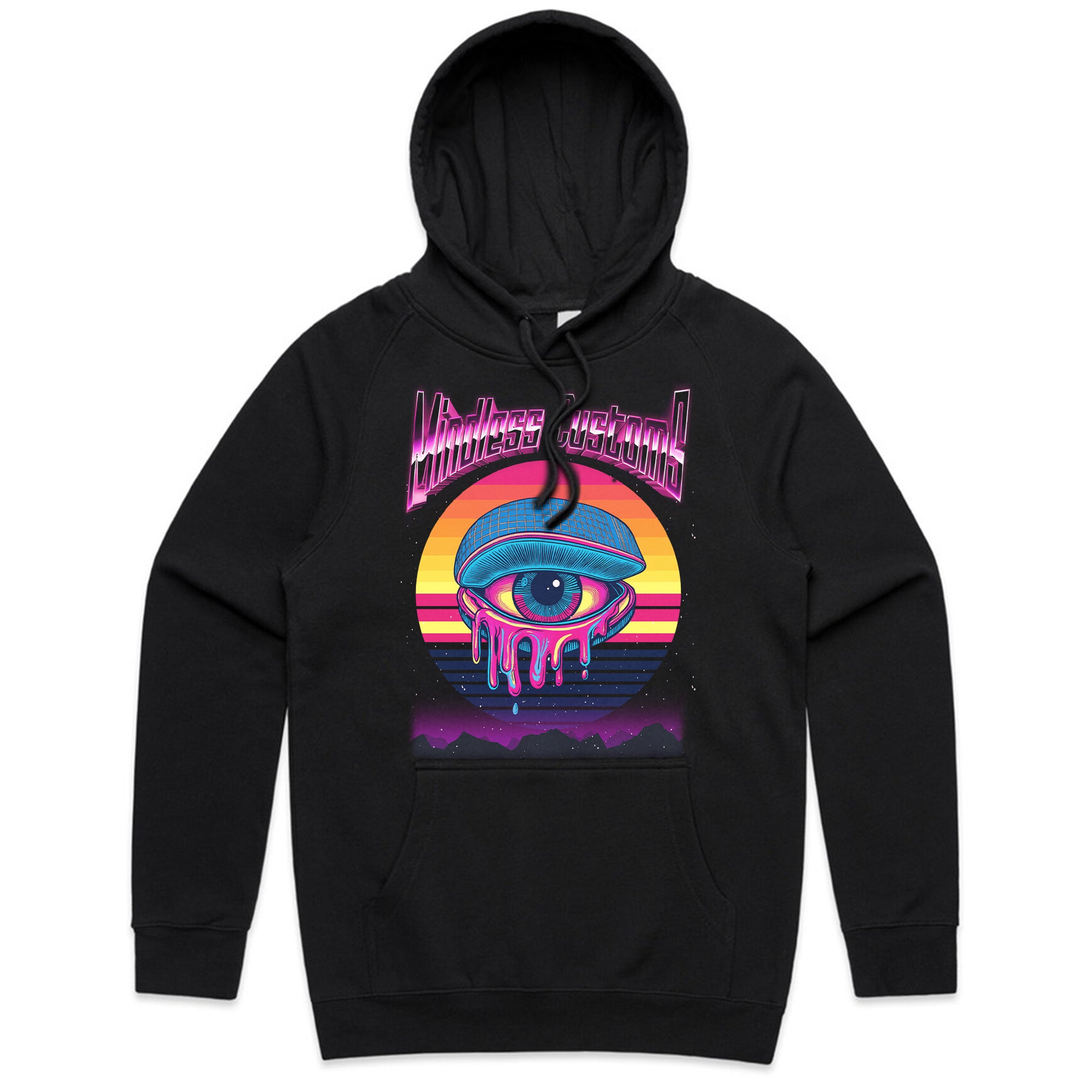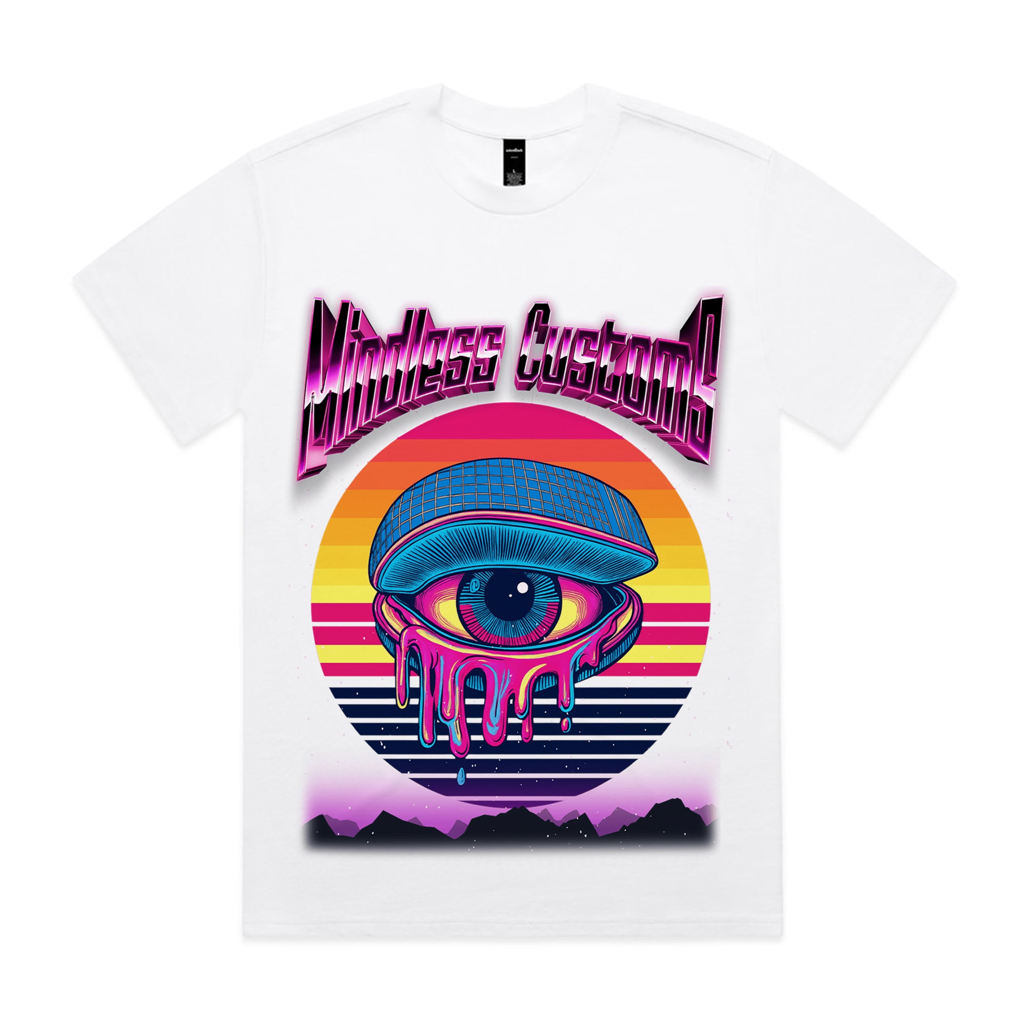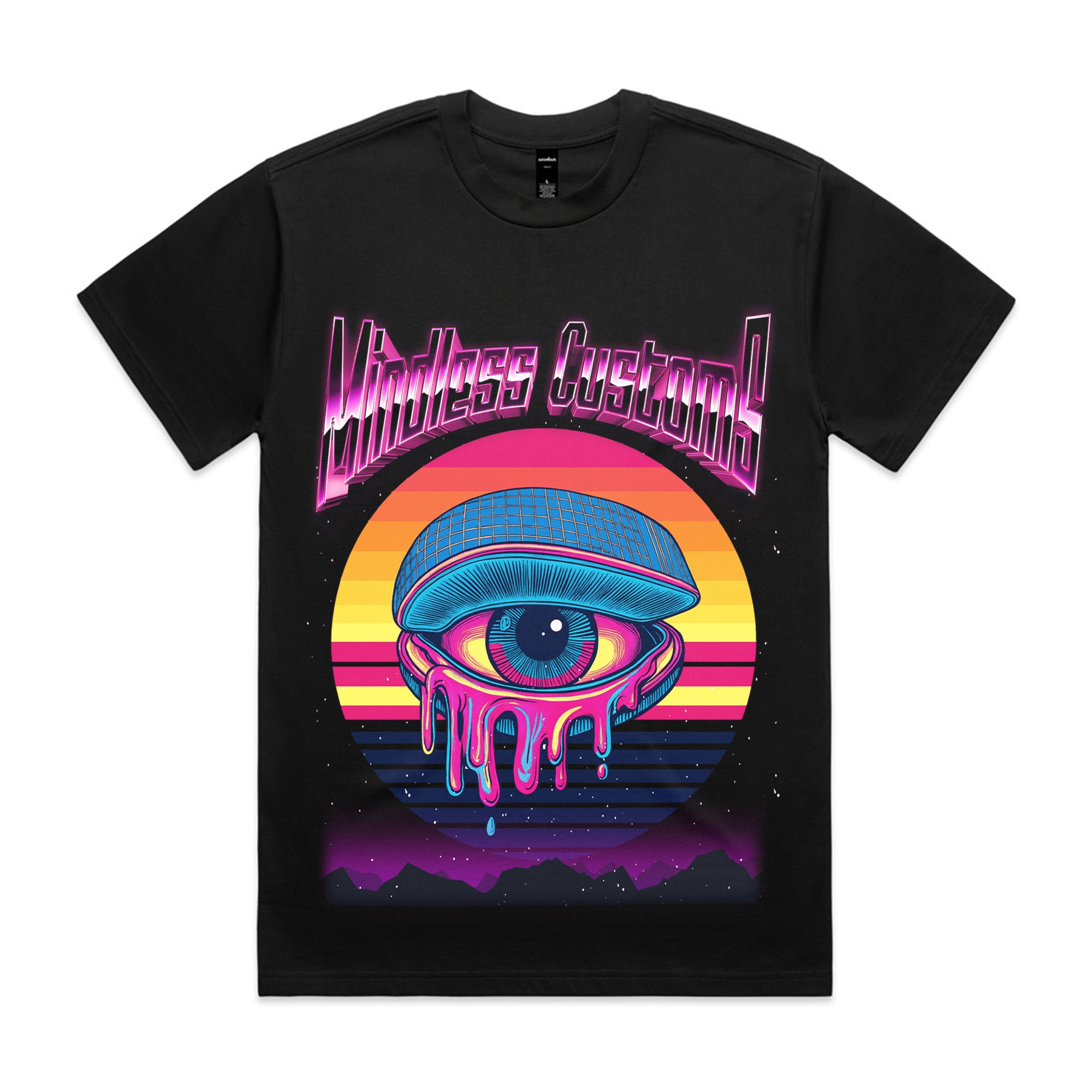 Dare to stand out with this surreal retro design. Featuring a dripping neon eye under a glowing synthwave sunset, this tee blends mystery, vision, and bold streetwear style.