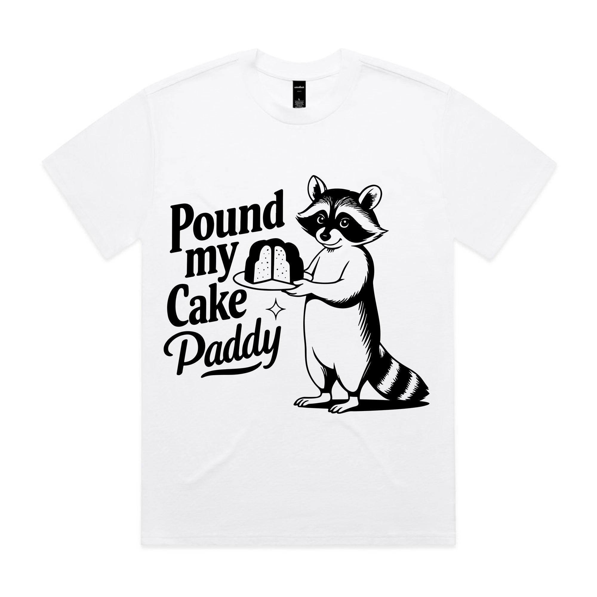 Serve up laughs with the Pound My Cake Paddy Tee. Featuring a cheeky raccoon holding a cake and playful typography, this shirt is the perfect mix of humor and quirky style.