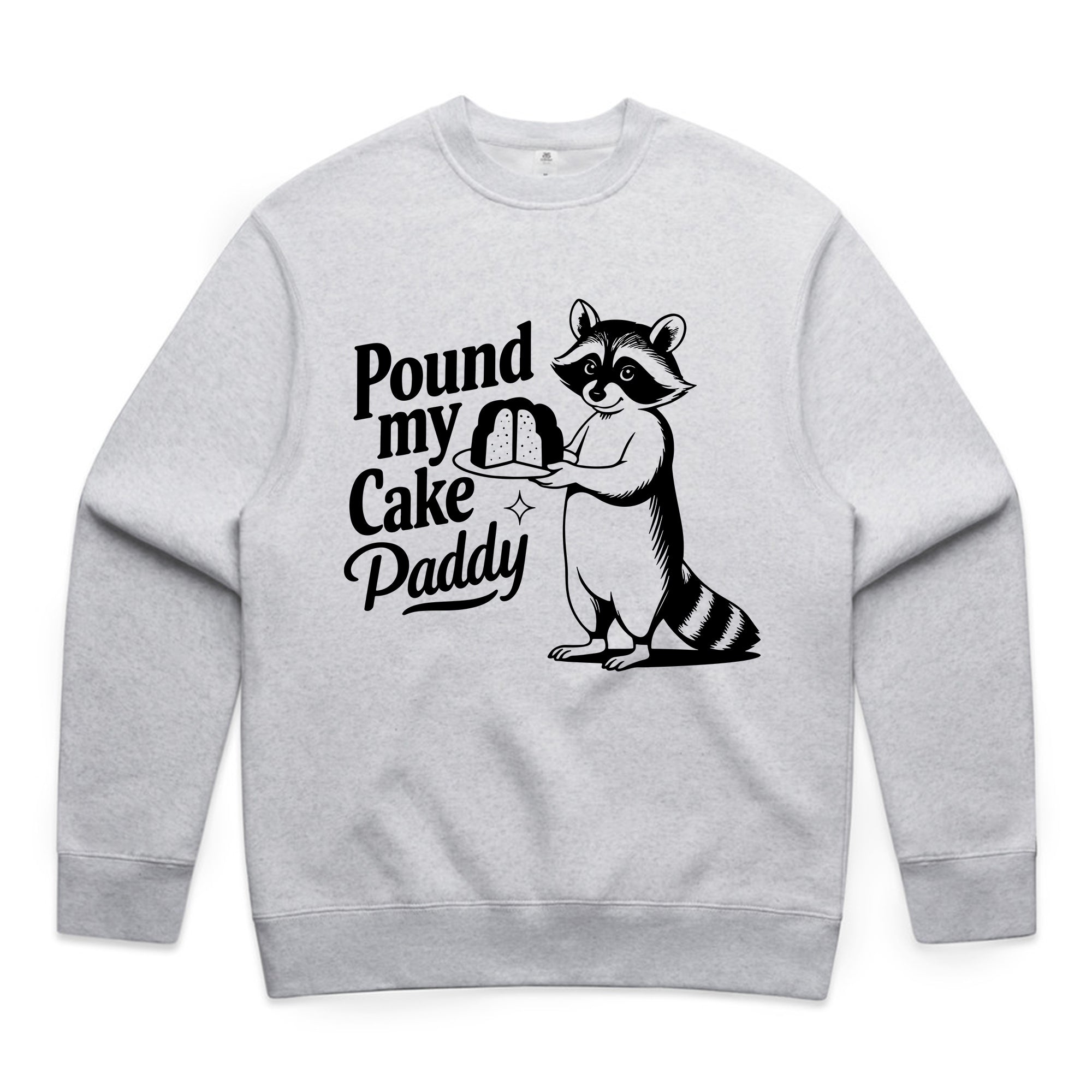Bold “Pound My Cake Paddy” slogan in eye-catching lettering