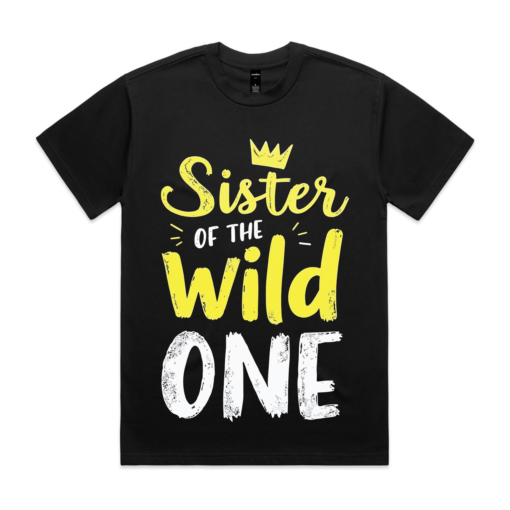 Celebrate your sisterly bond with a fun and bold statement tee! Featuring the playful text āSister of the Wild Oneā in bright yellow and white with a crown detail, this shirt is perfect for showing off your personality and sibling pride.