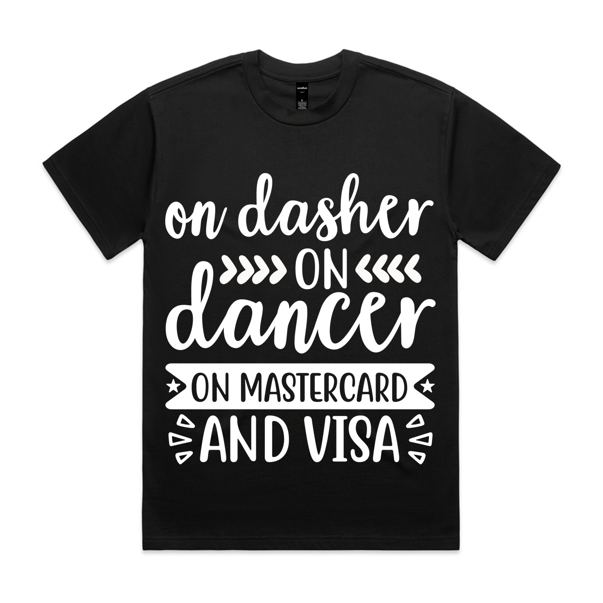 Make holiday shopping more fun with this witty 'On Dasher, On Dancer, On Mastercard and Visa' tank top. A humorous take on holiday spending, perfect for the season