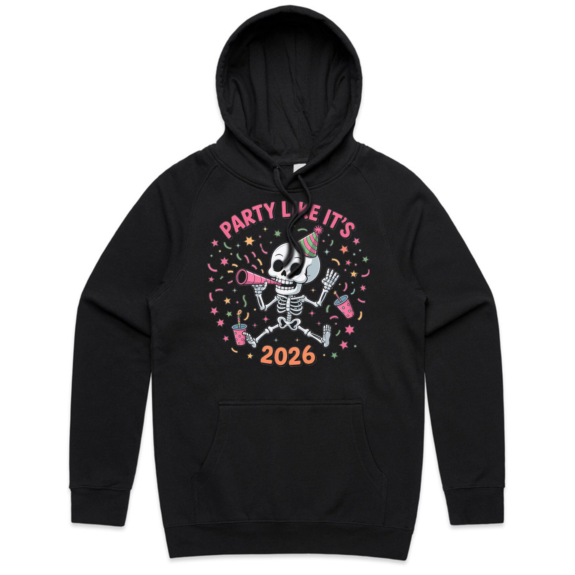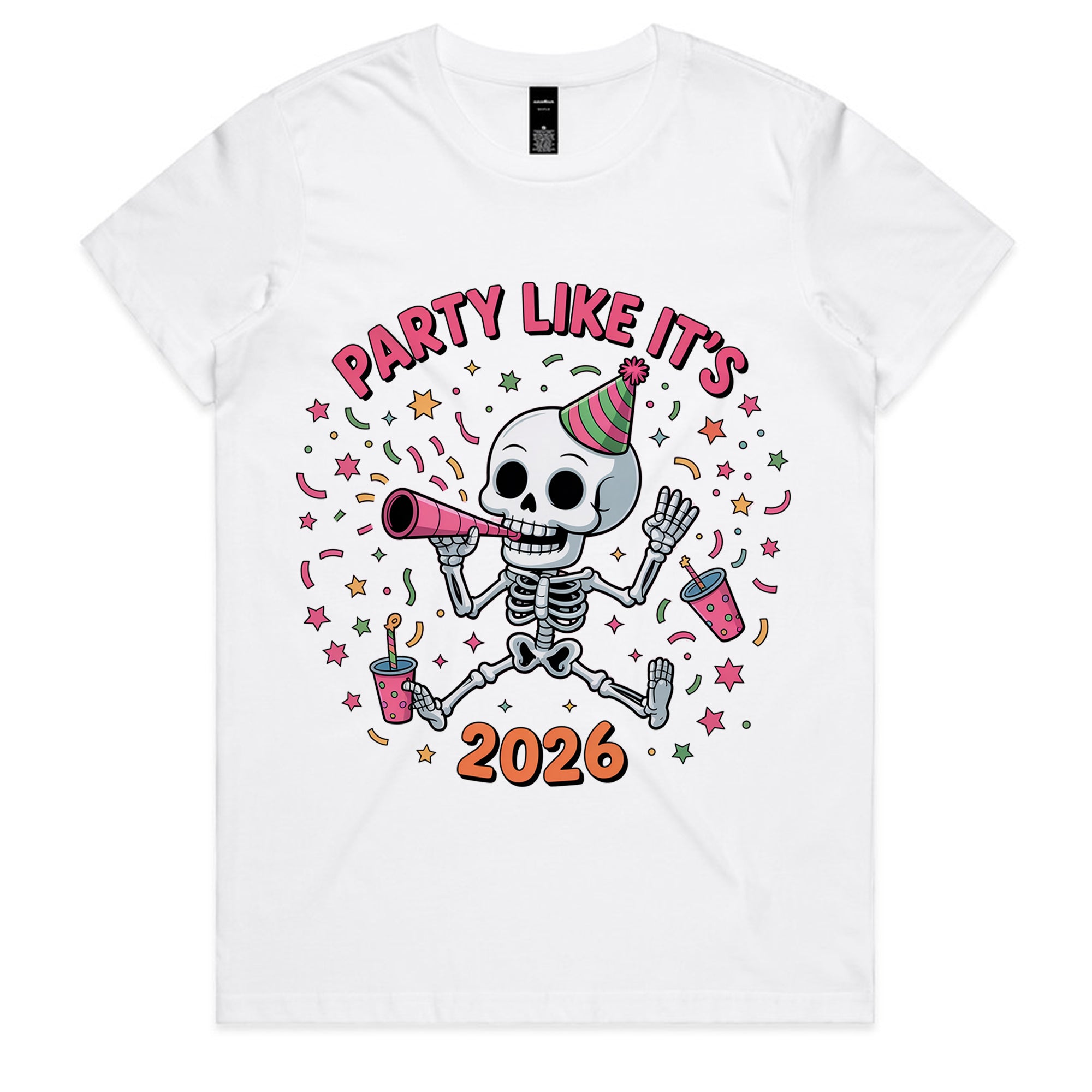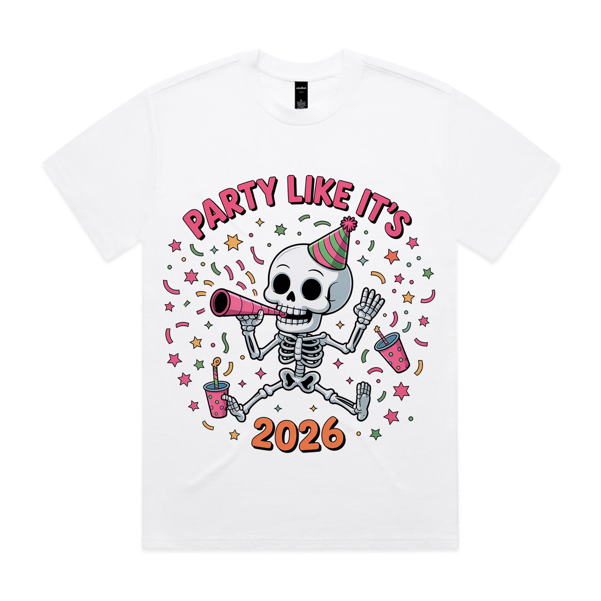 Get ready to celebrate in style with this playful “Party Like It’s 2026” T-shirt. Featuring a cheerful skeleton wearing a party hat and blowing a noisemaker, surrounded by colorful confetti and stars, it’s the ultimate shirt for fun-loving partygoers. The bright, bold lettering and festive design bring an energetic vibe perfect for New Year’s celebrations or any event worth cheering for. Start 2026 with a bang — and party like there’s no tomorrow!