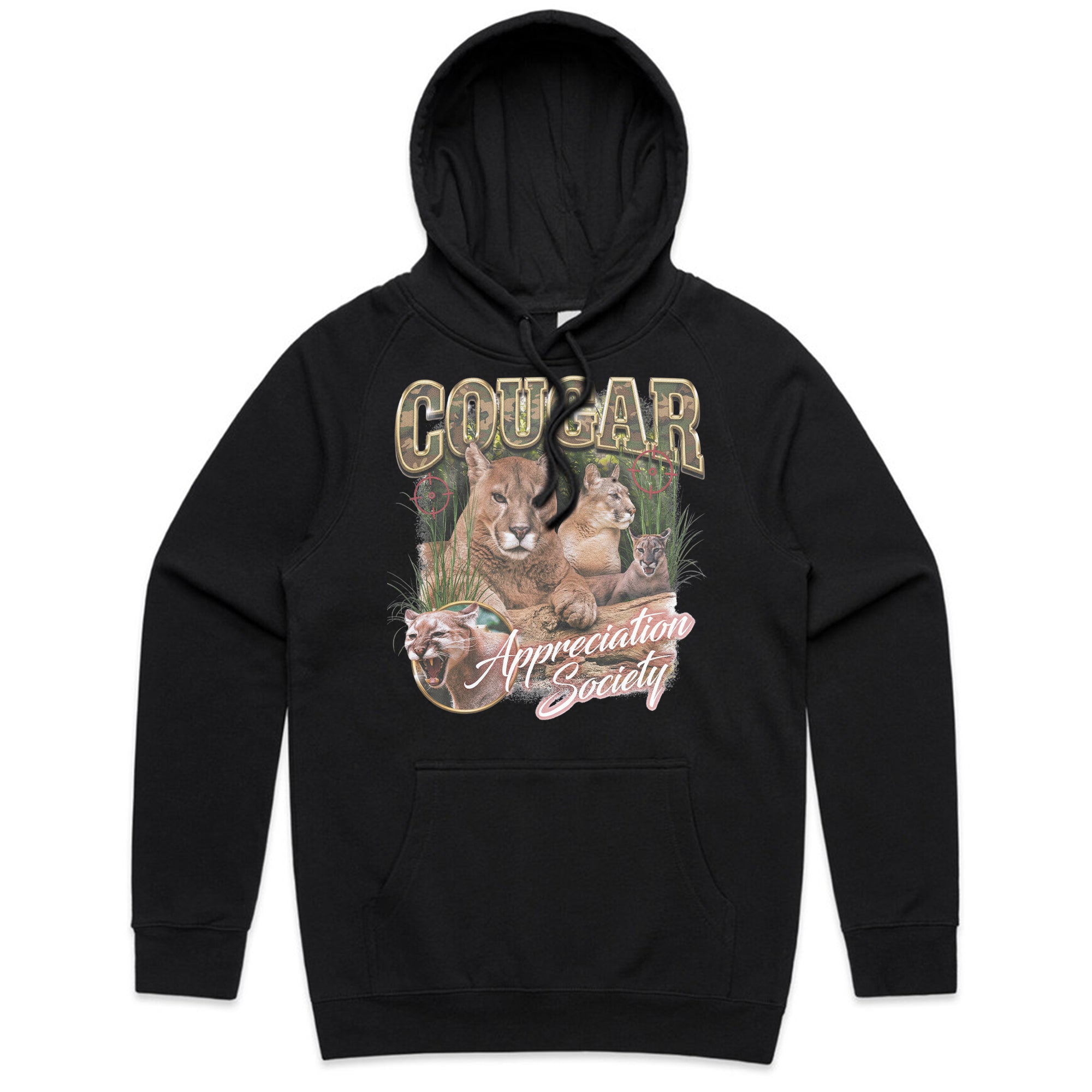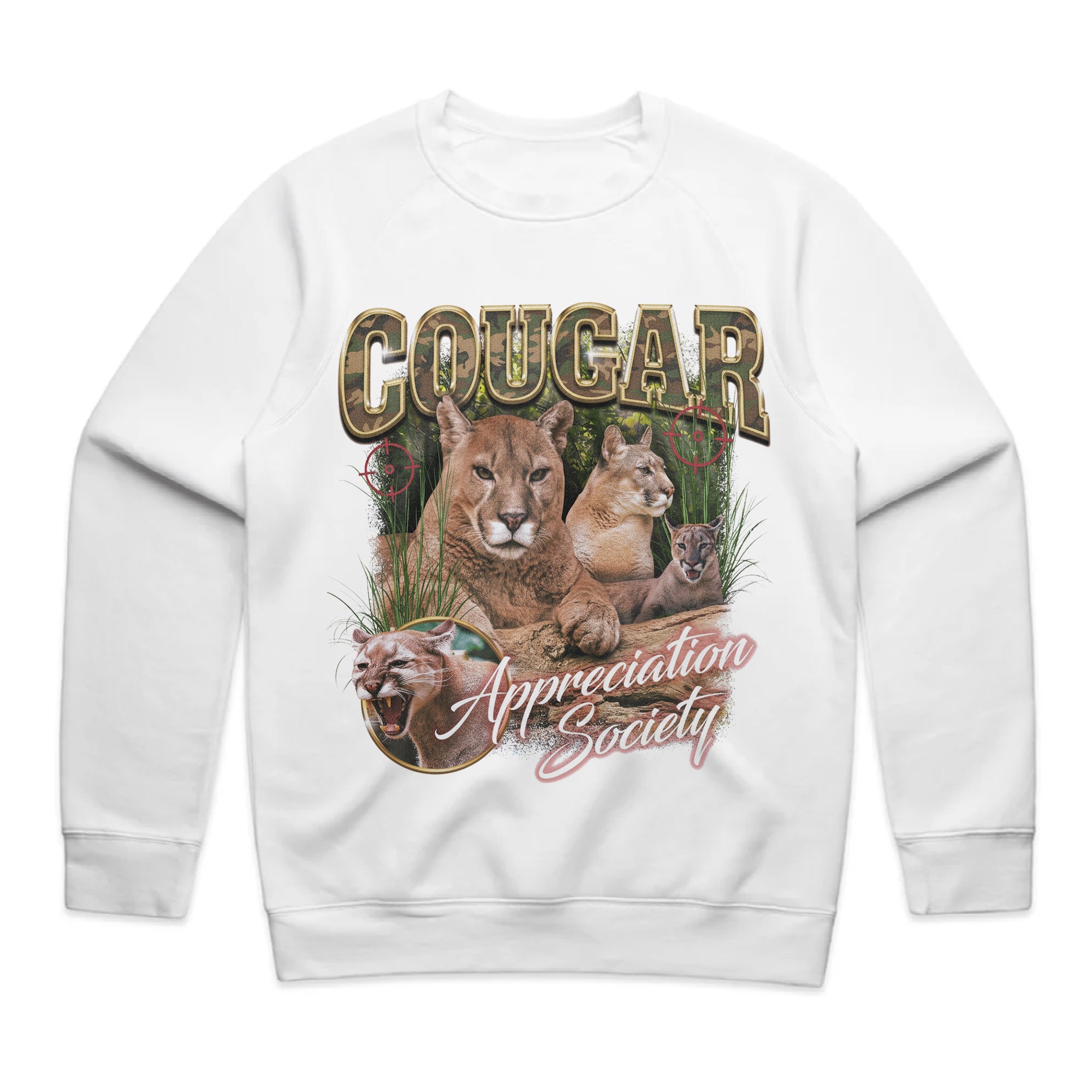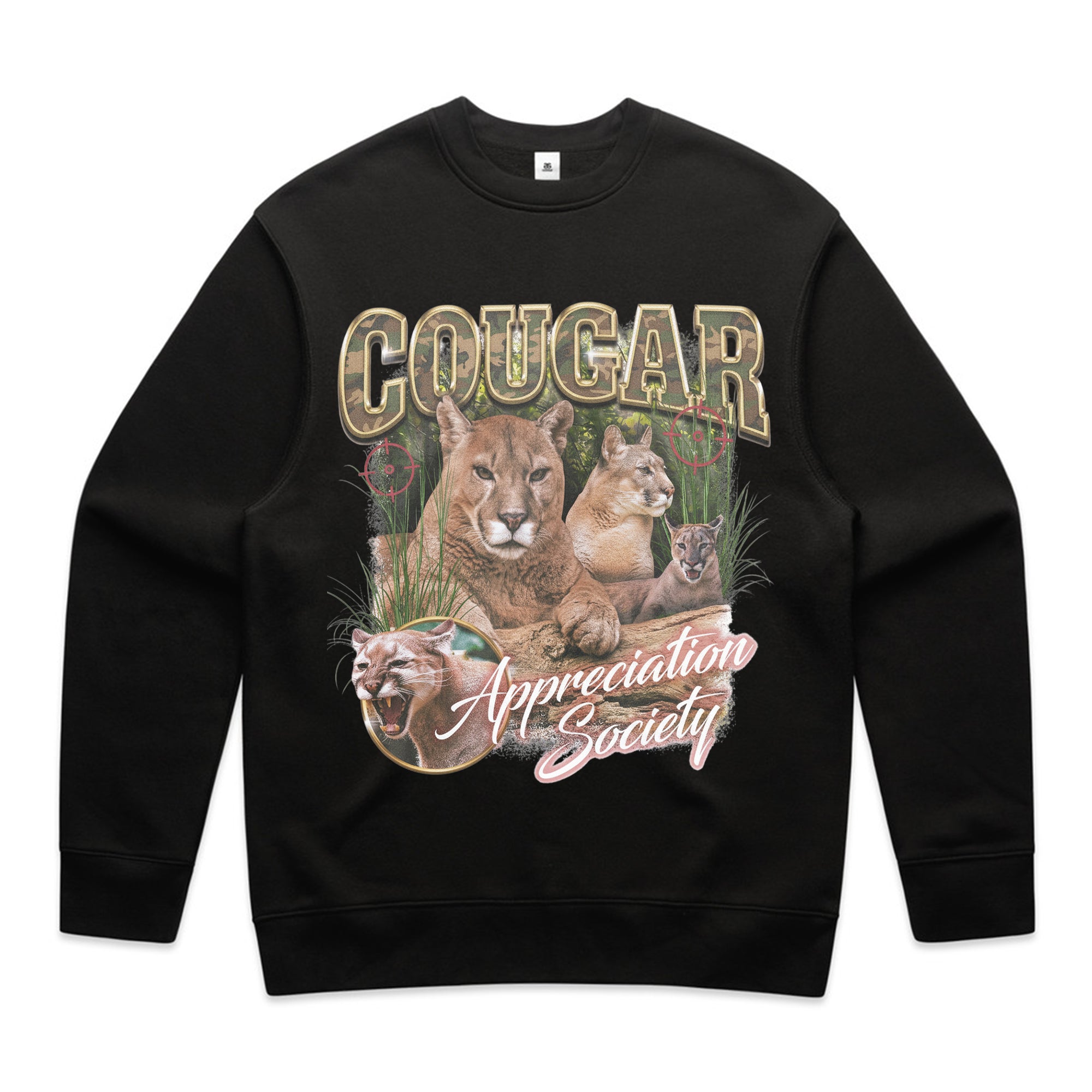 Celebrate fierce independence and wild energy with the Cougar Appreciation Society tee. Featuring detailed cougar artwork surrounded by nature, this design pays tribute to the power, grace, and spirit of the mountain cat. A bold, vintage-style print for anyone who walks their own path.