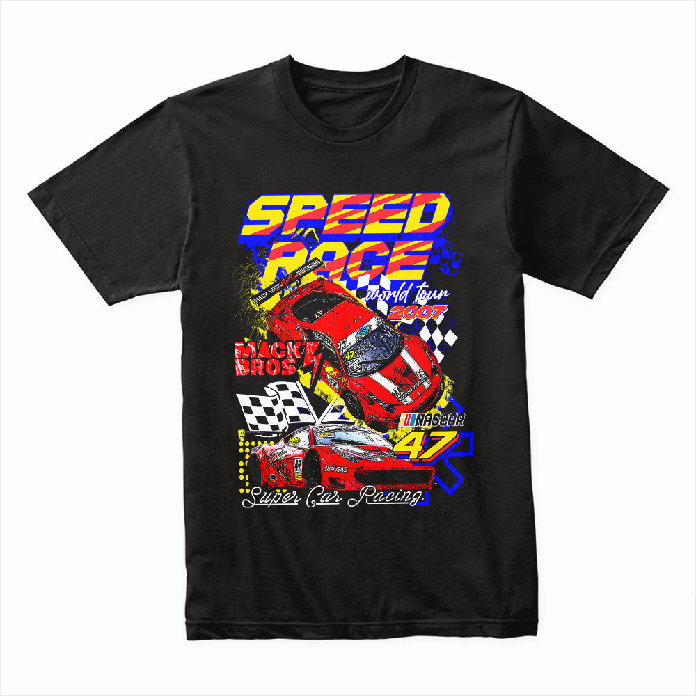 Unleash the full throttle spirit with the Speed Rage: World Tour Racing Legends Tee. This bold design captures the adrenaline rush of high-speed racing, blending dynamic graphics with vibrant colors for every motorsport enthusiast.