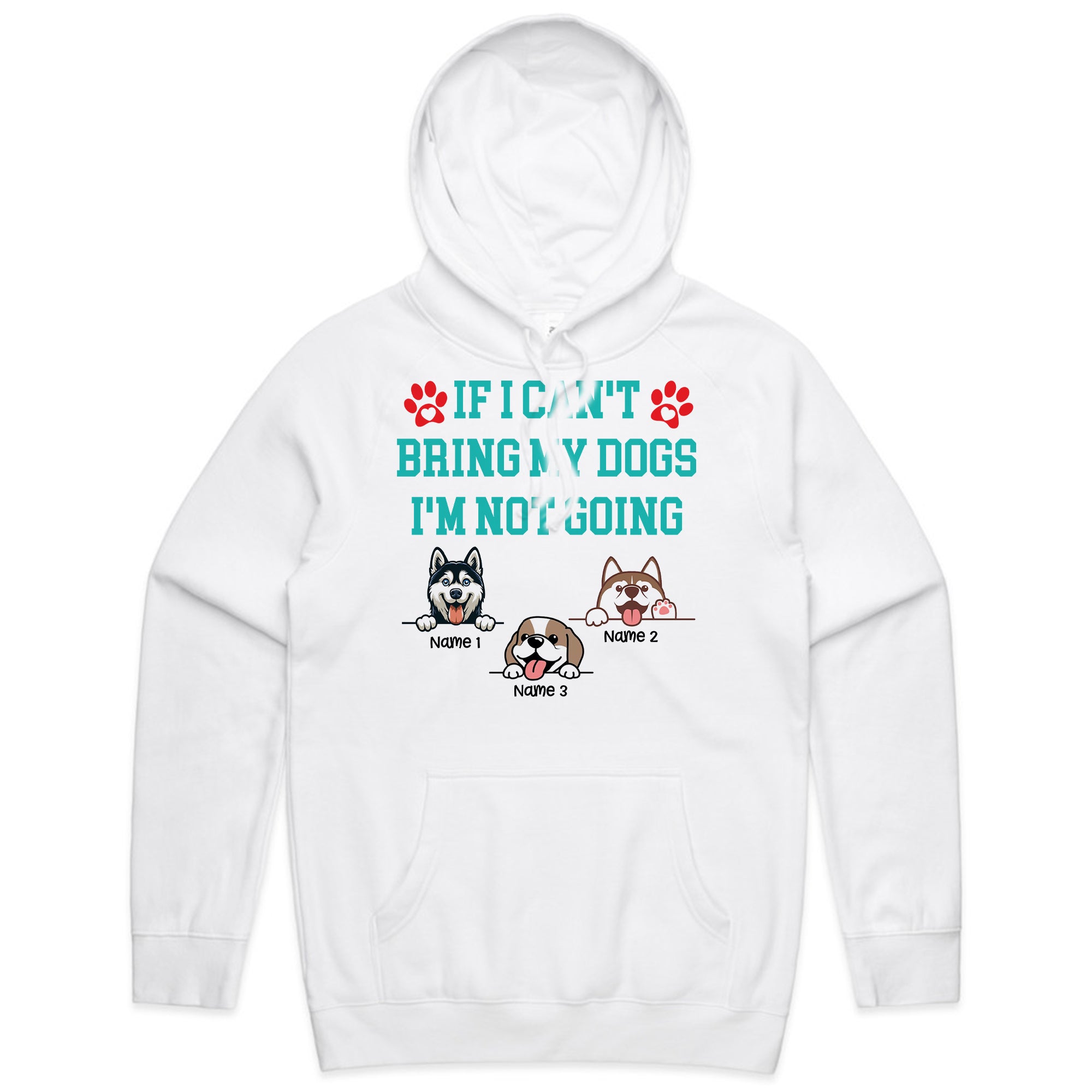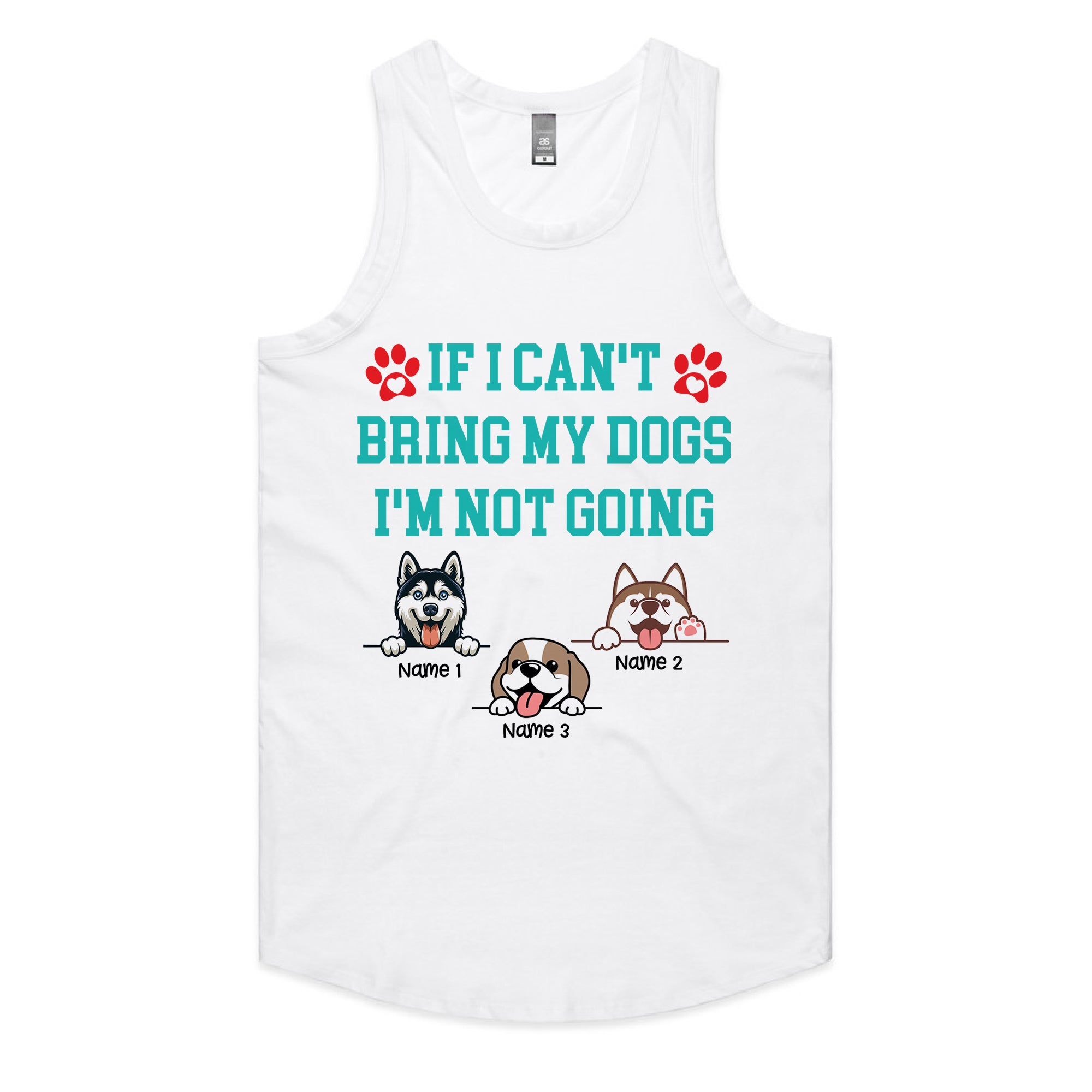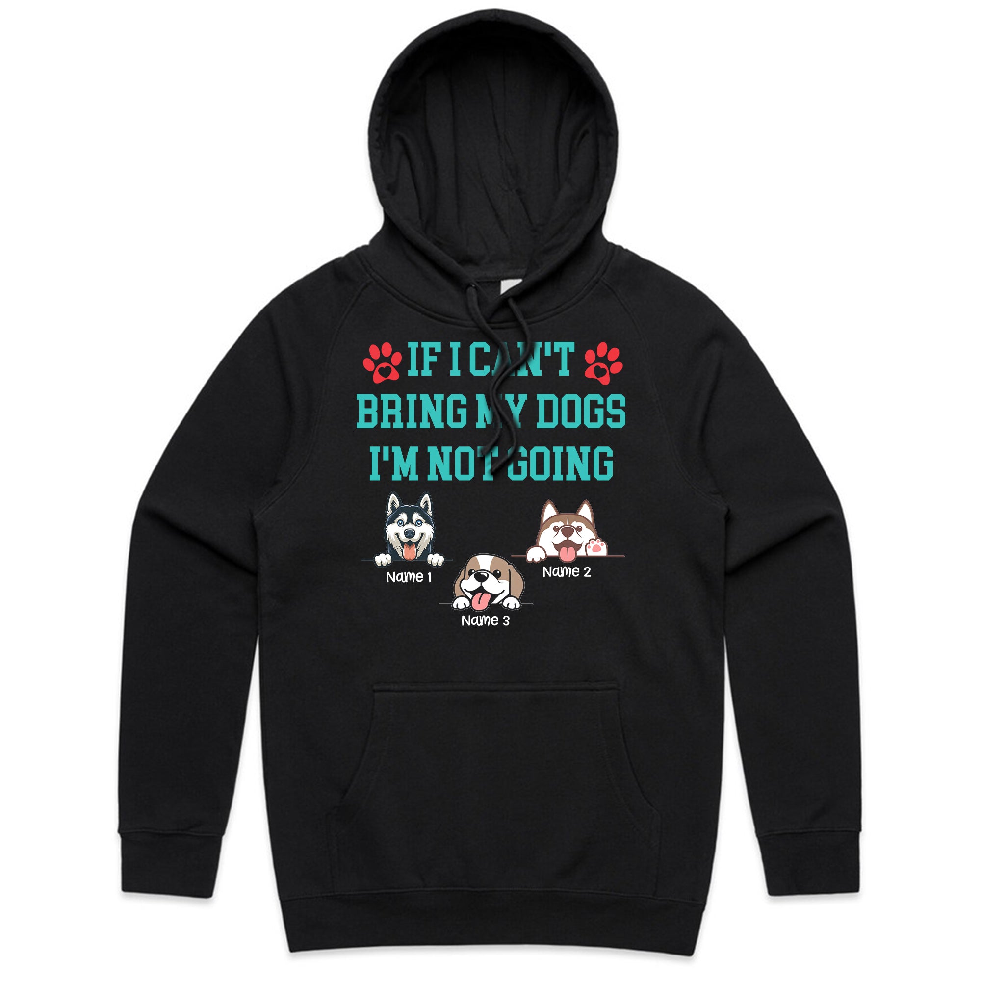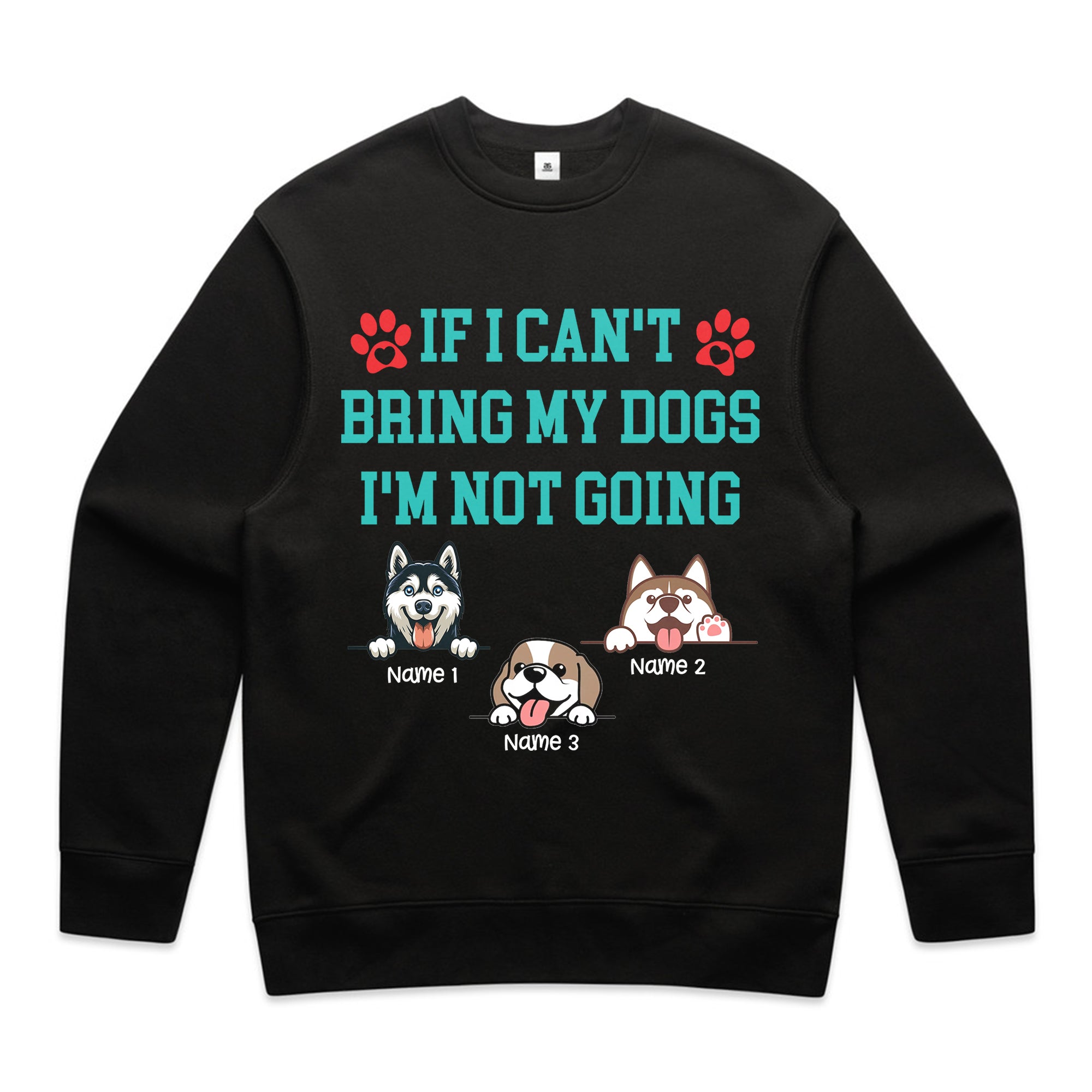 Bold, Relatable Slogan: Features the viral and true-to-life statement: "IF I CAN'T BRING MY DOGS I'M NOT GOING" in a striking, bright blue font with contrasting red paw prints.