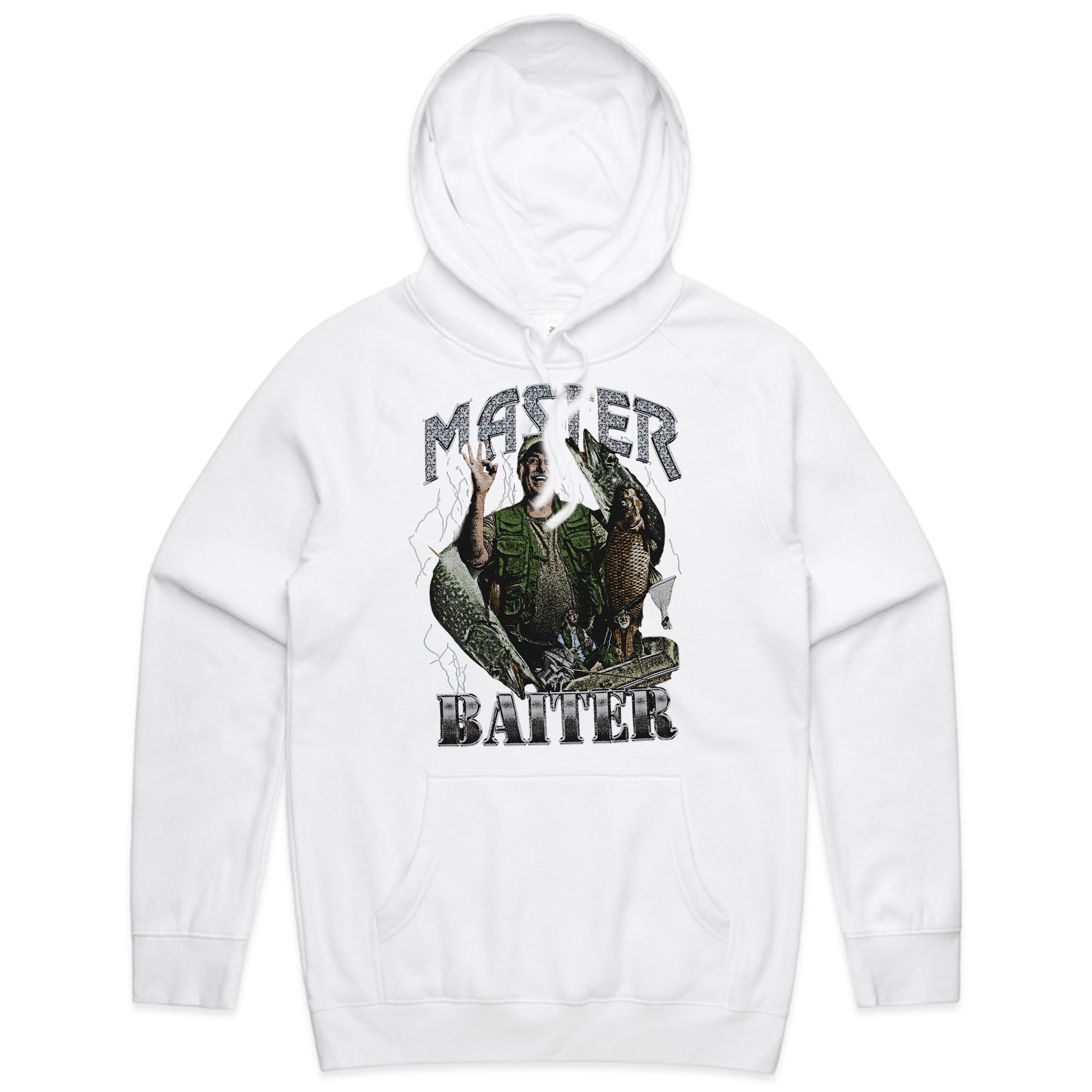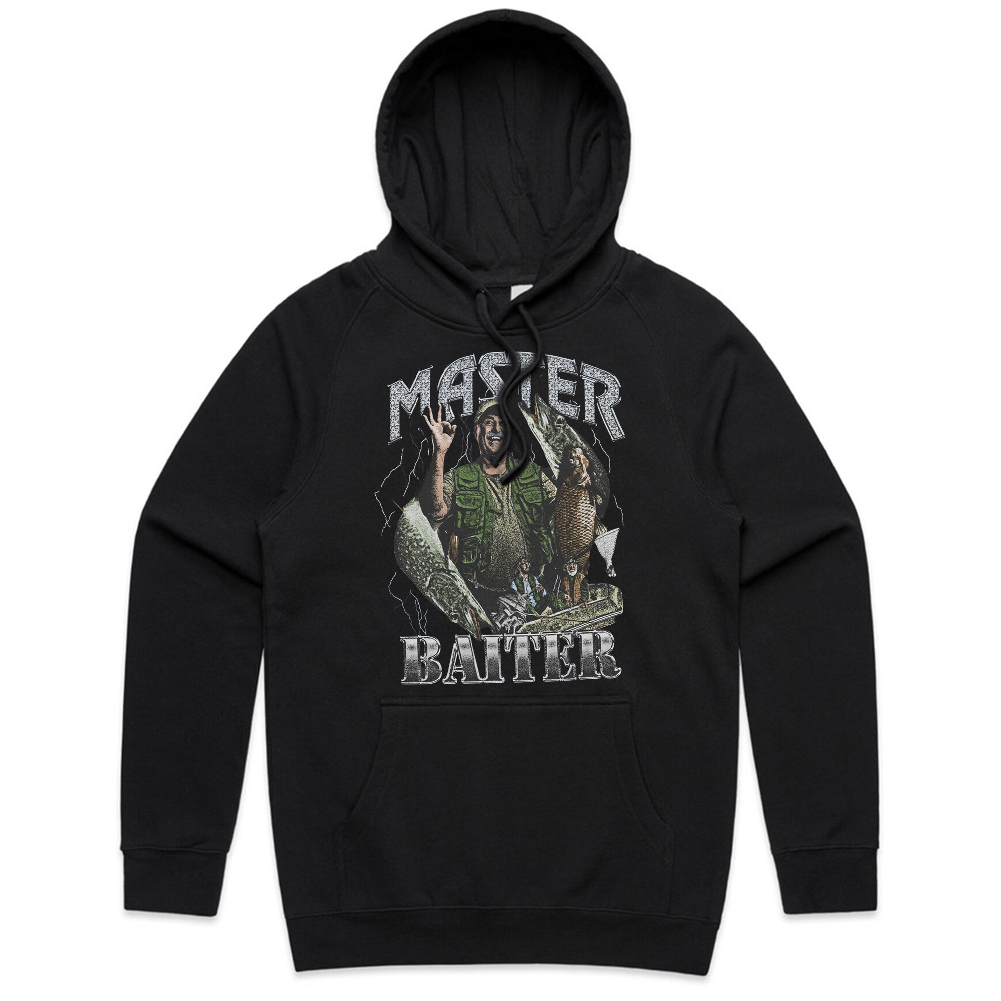 The ultimate fishing tee with a cheeky twist! Featuring a proud fisherman holding his catch with lightning in the background, this design reads Master Baiter — humorous, vintage, and perfect for anyone who loves a good pun and a great day on the water.