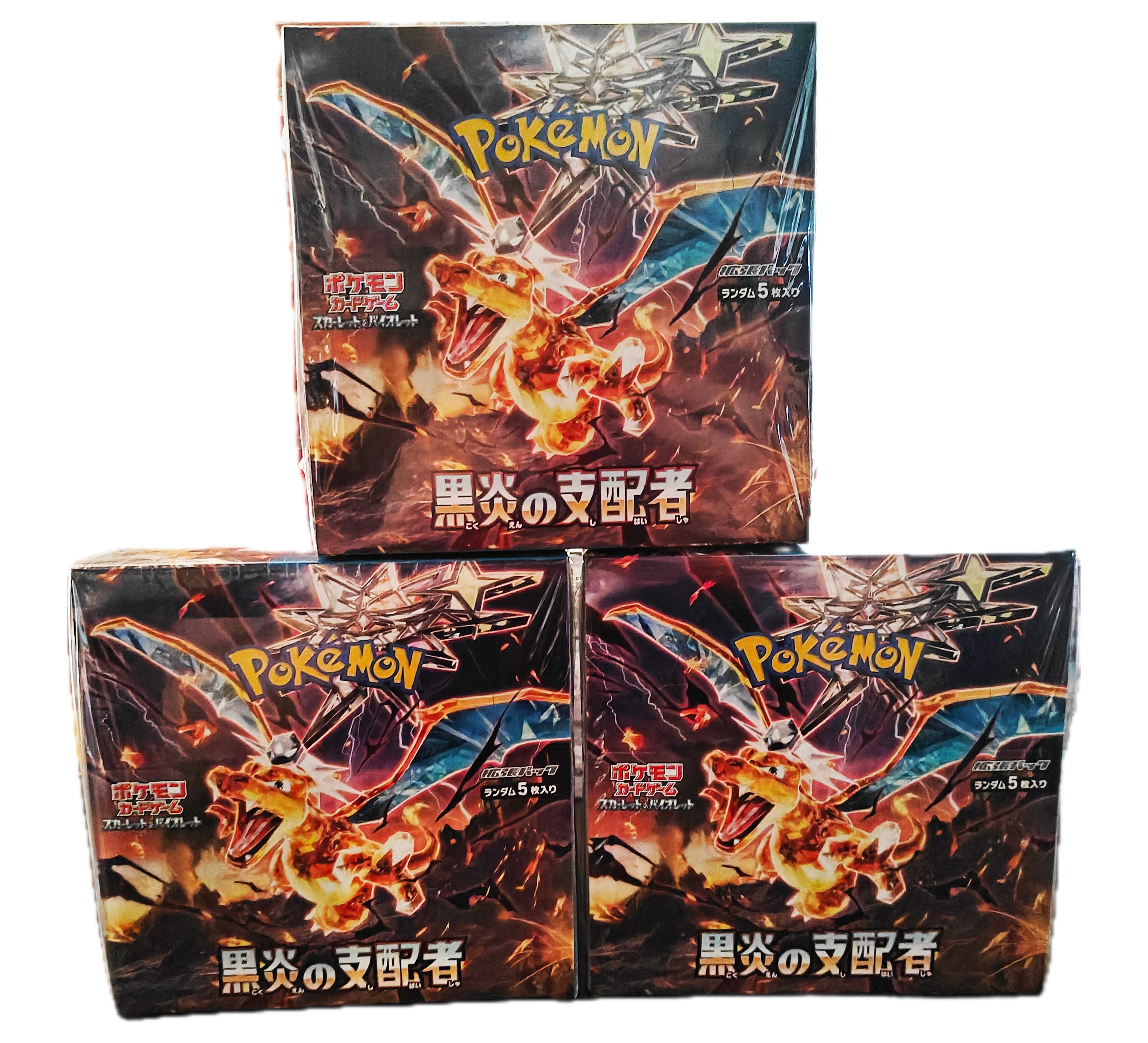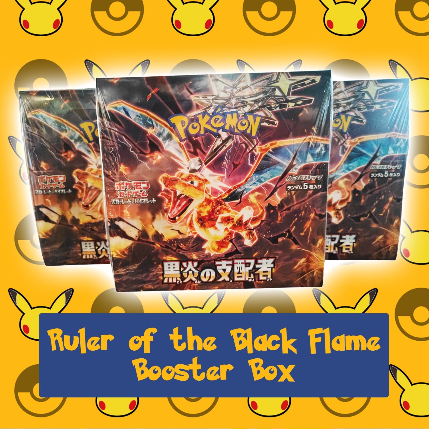 Ignite your collection with the Ruler of the Black Flame Booster Box, a fiery set featuring some of the most powerful and iconic Pokémon—sealed and brand new!
