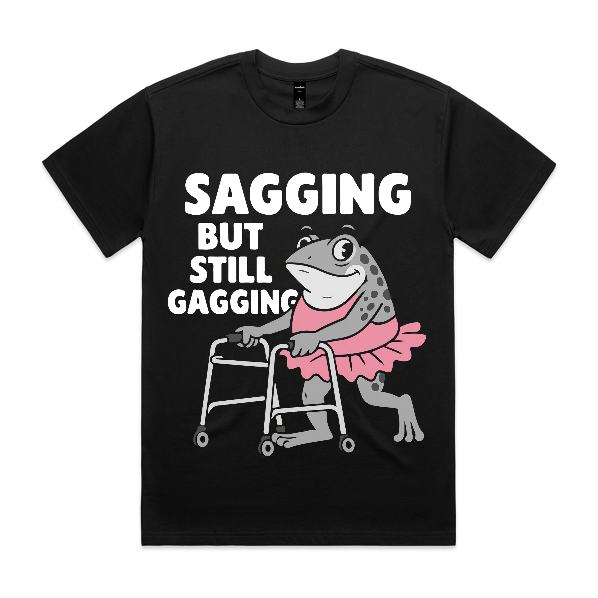 Bring laughs everywhere you go with the Sagging But Still Gagging Tee. Featuring a frog in a pink tutu using a walker, this shirt perfectly mixes humor, sass, and confidence.