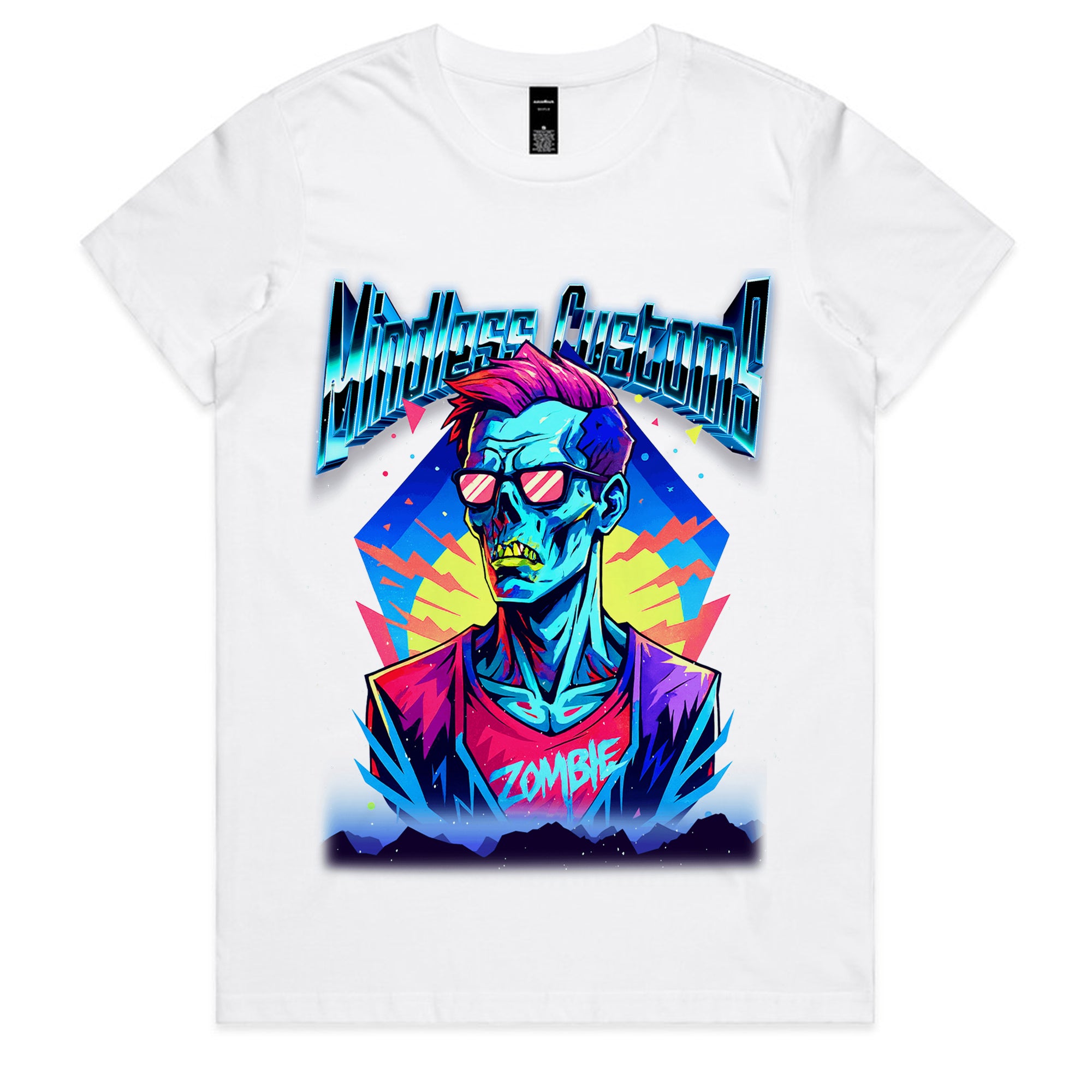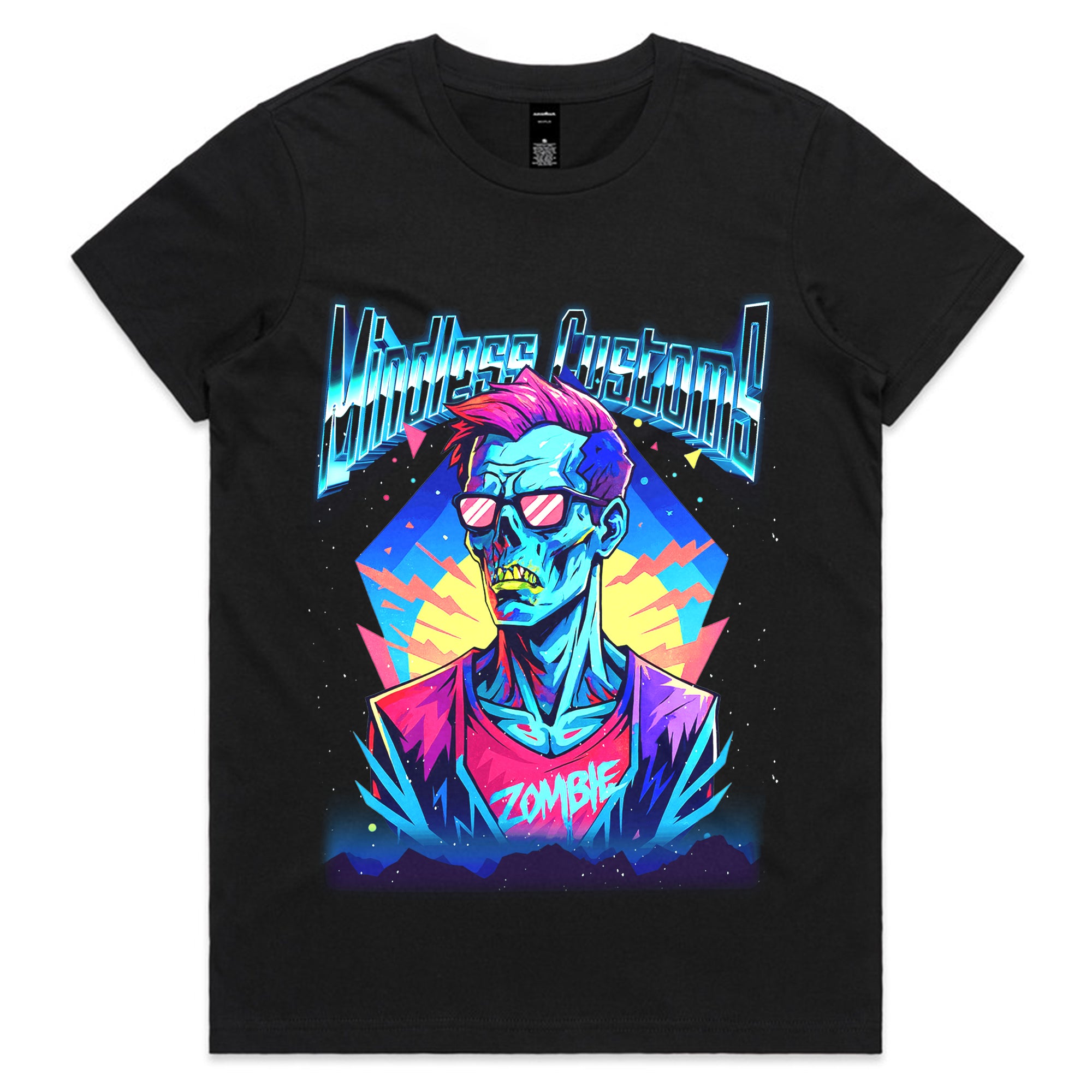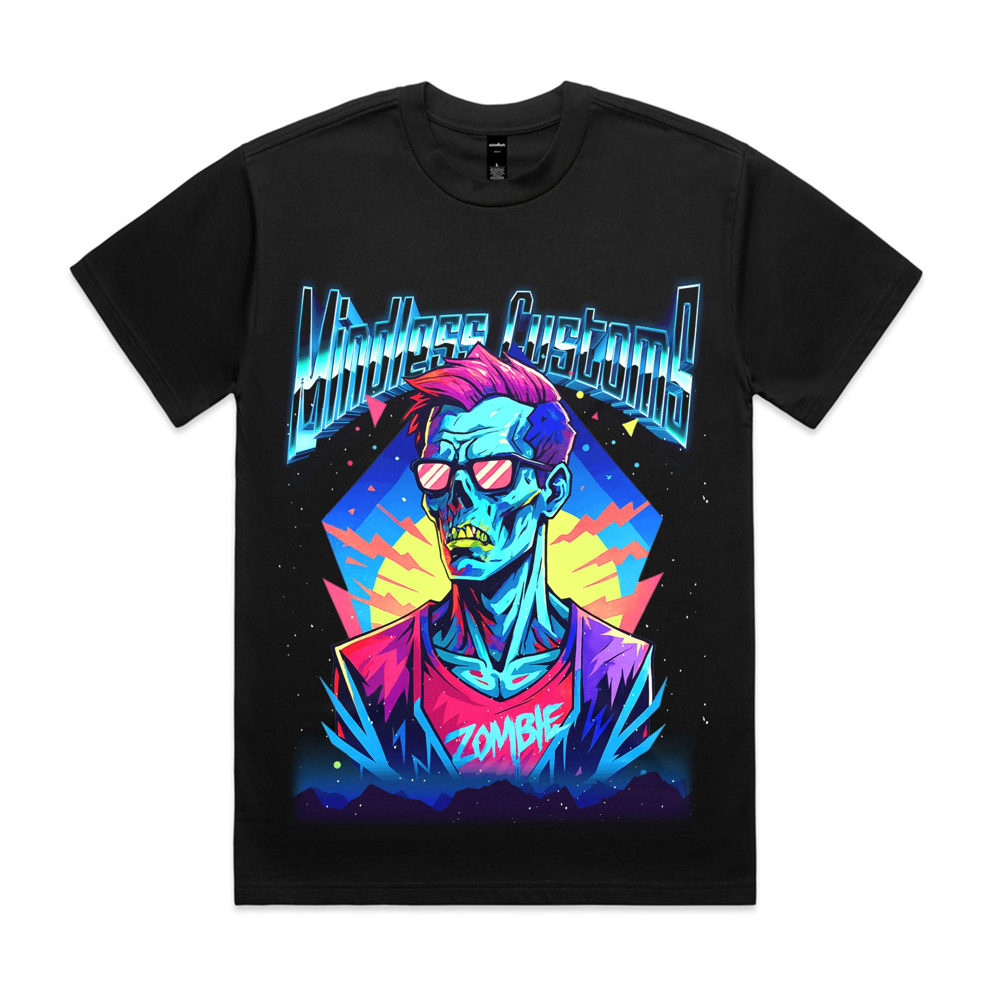 Step into the undead nightlife with this bold design. Featuring a neon-colored zombie rocking shades and a vibrant retro backdrop, this tank embodies rebellion, attitude, and fearless style.