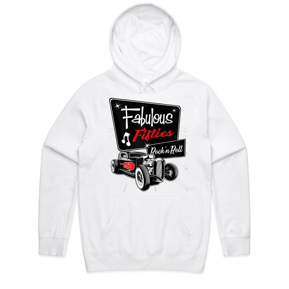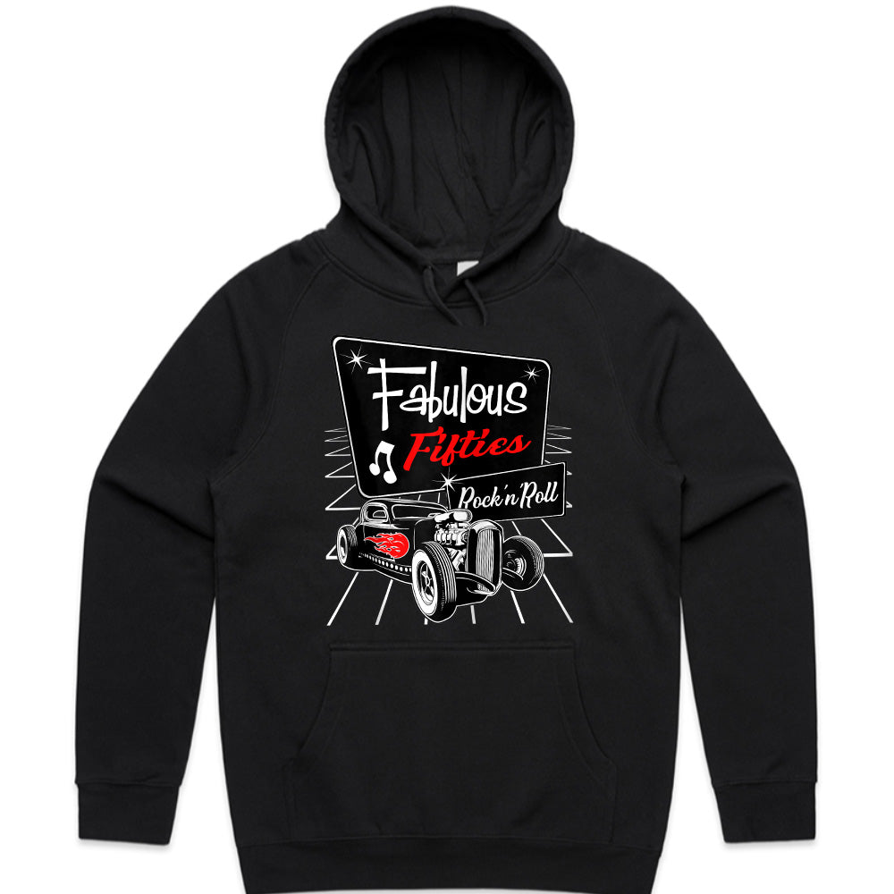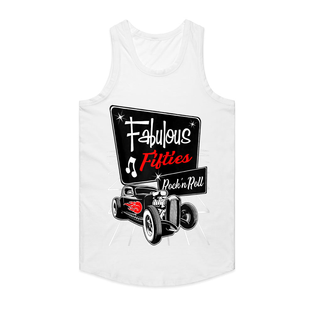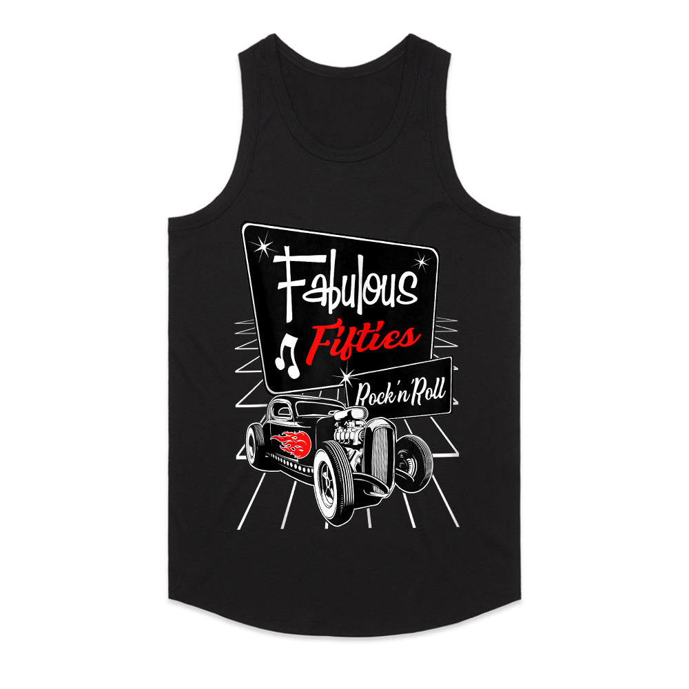 Step into the iconic era of the 1950s with this Fabulous Fifties Rock 'n Roll T-Shirt! Featuring a classic vintage hot rod with flame details, a retro diner-style sign, and nostalgic music notes, this design embodies the golden age of rockabilly culture, sock hops, and old-school car cruising.