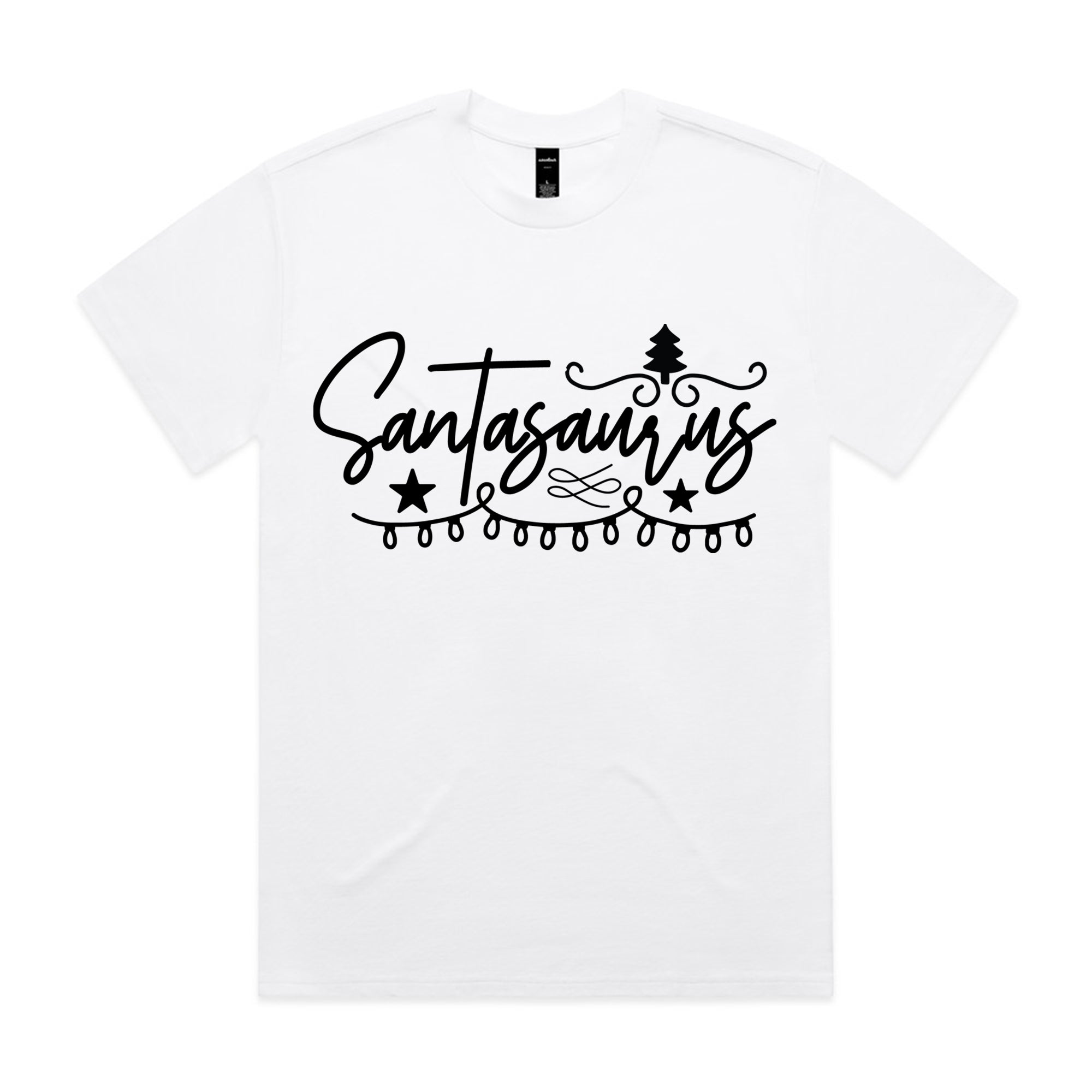 Get ready for a roaring good time with this 'Santasaurus' t-shirt. Featuring a festive dinosaur and holiday lights, it’s perfect for anyone who loves Christmas and dinosaurs!