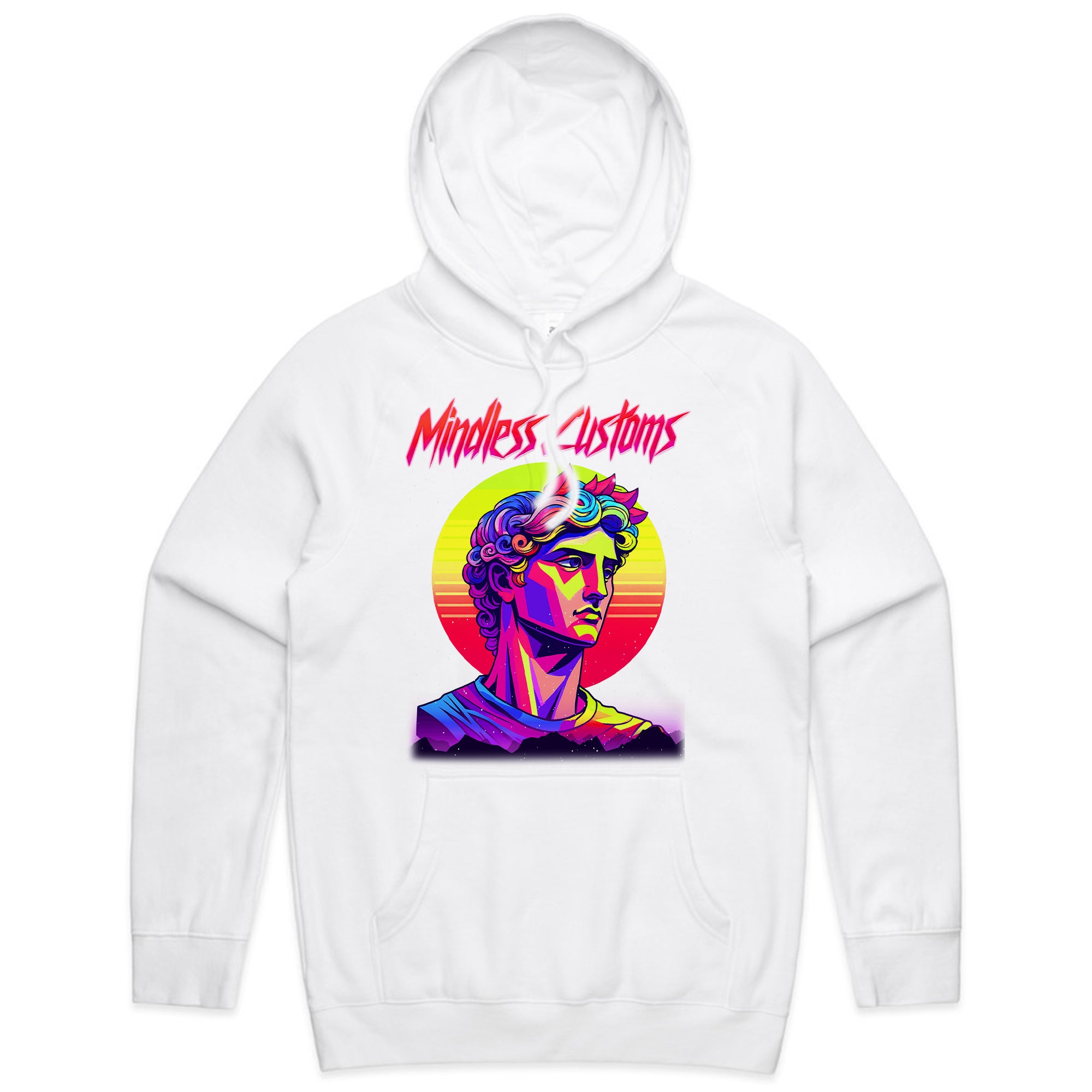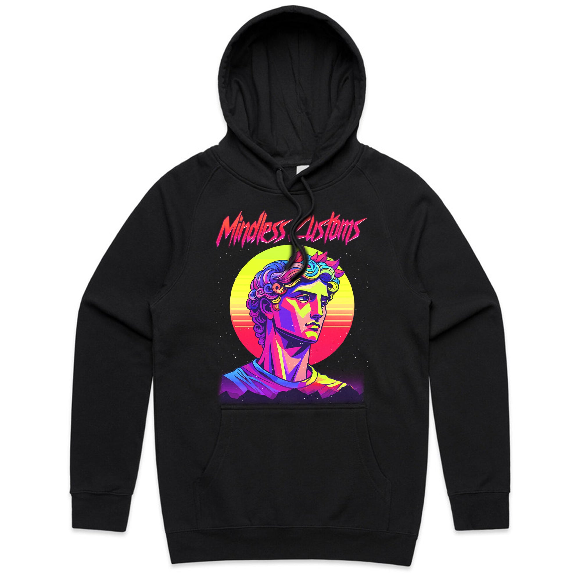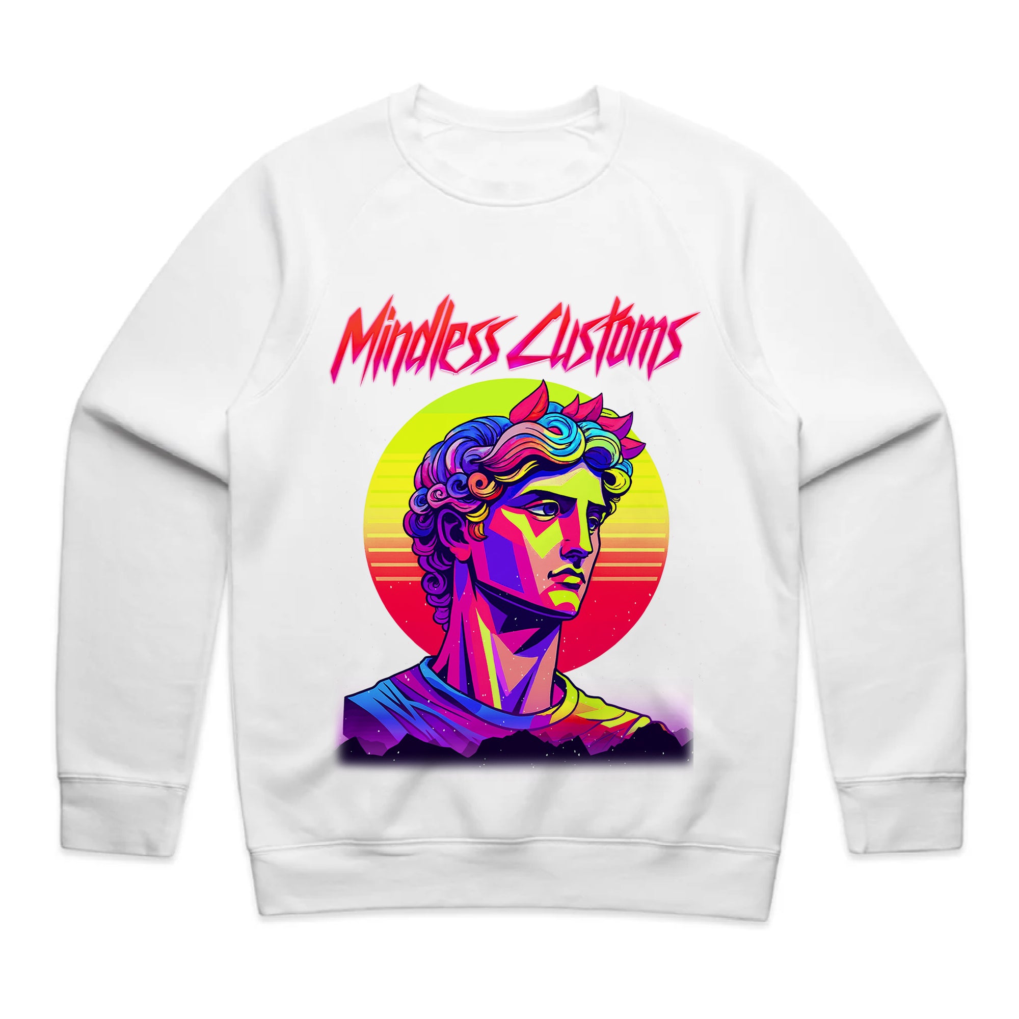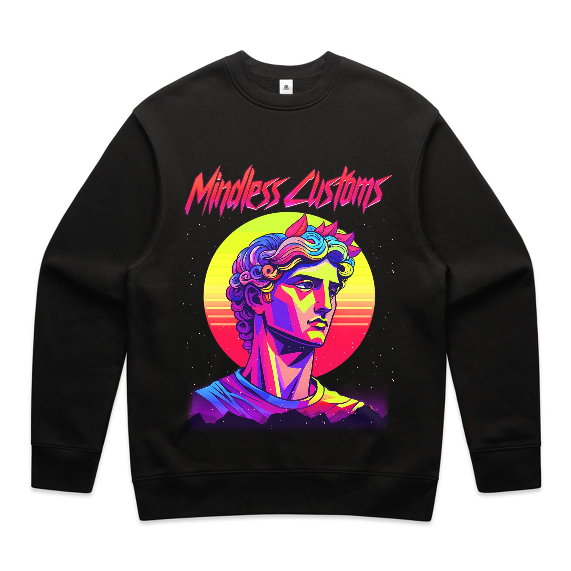 Channel retro vibes with this striking design. Featuring a neon-colored statue bust set against a glowing sunset backdrop, this tank celebrates art, rebellion, and bold individuality.