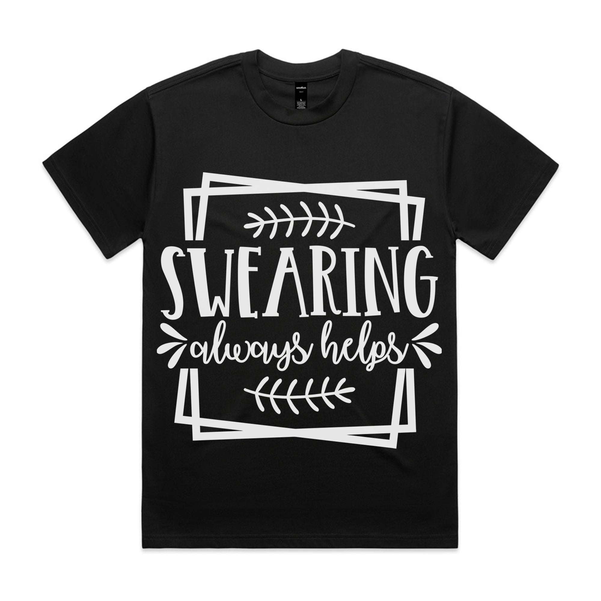 Add some sass to your style with this bold and hilarious graphic tee! Featuring the cheeky phrase “Swearing Always Helps”, this shirt is perfect for those who know that sometimes a few choice words make everything better.
