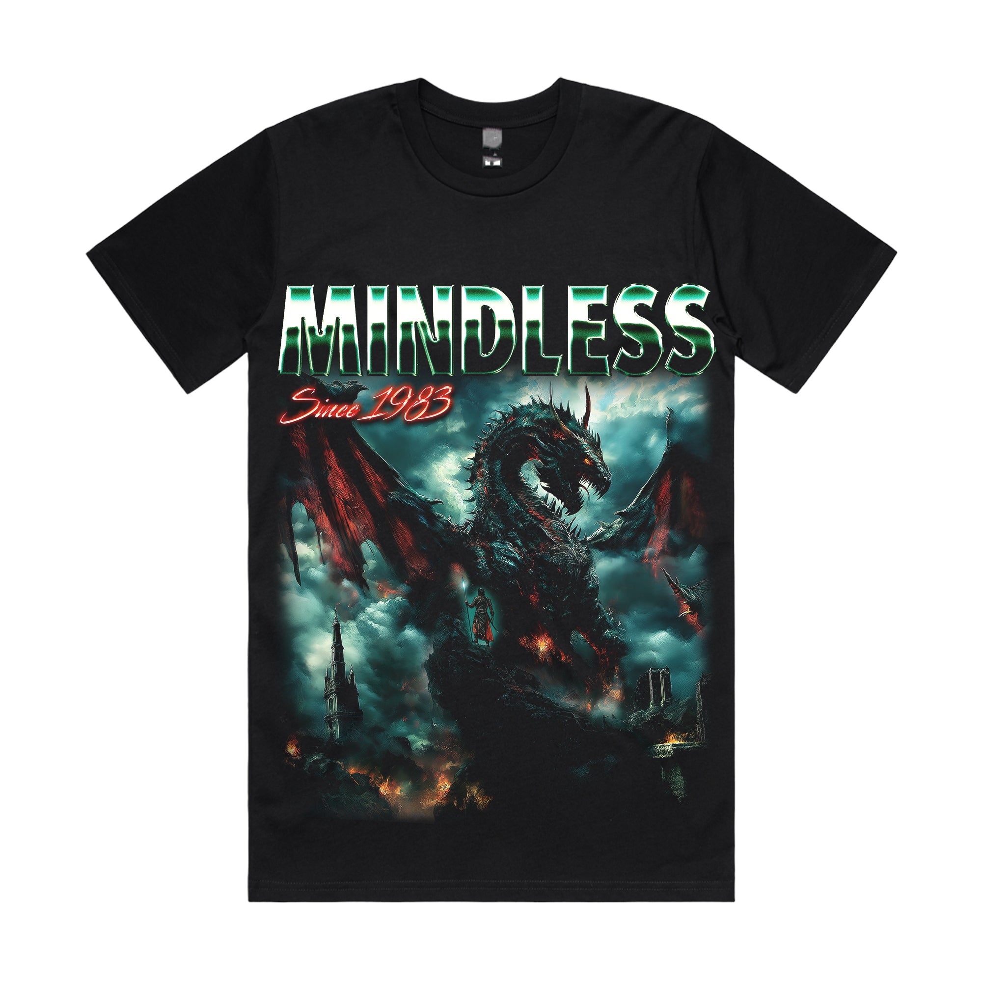Unleash the storm with the Mindless “Since 1983” tee, a striking piece that captures the power of an ancient dragon awakening from the ashes.