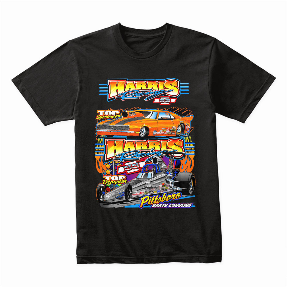 Feel the raw horsepower with the Harris Racing Power Run tee, featuring high-octane artwork of Top Sportsman and Top Dragster machines. Perfect for drag racing fans who live for the adrenaline rush of the strip.