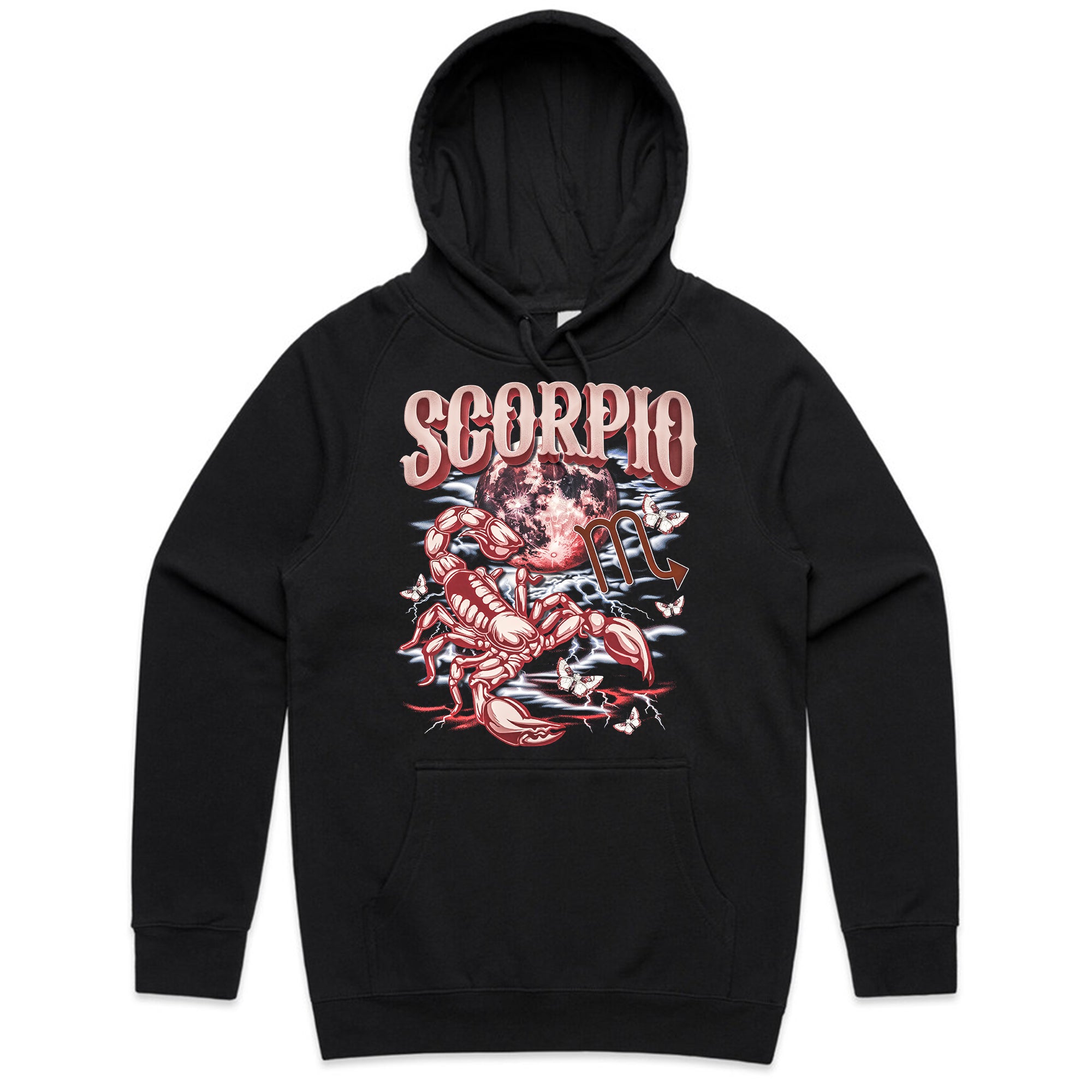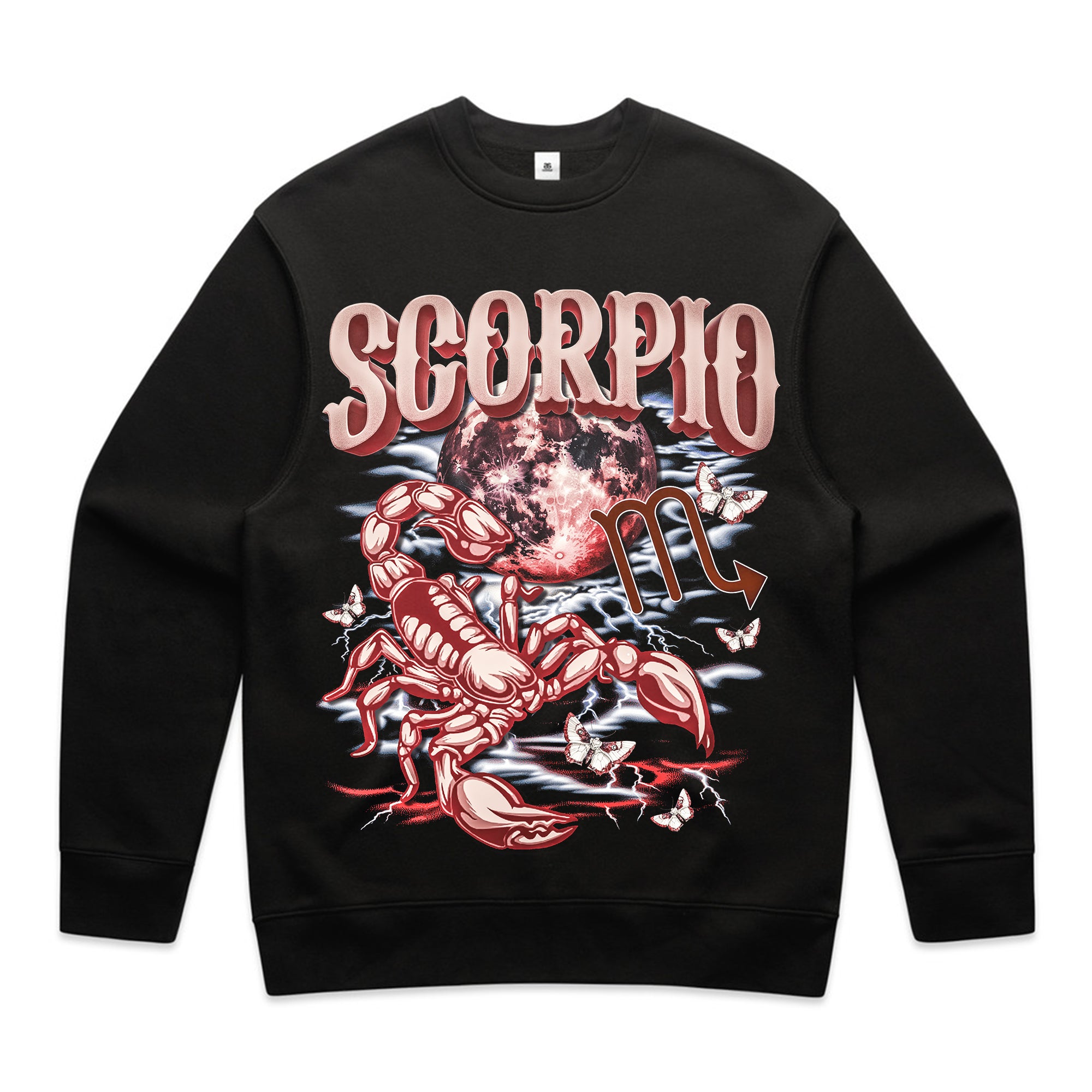 Tap into the magnetic energy of Scorpio with this intense design. Featuring a cosmic scorpion under a blood moon and surrounded by fluttering butterflies, this tee embodies passion, power, and transformation.