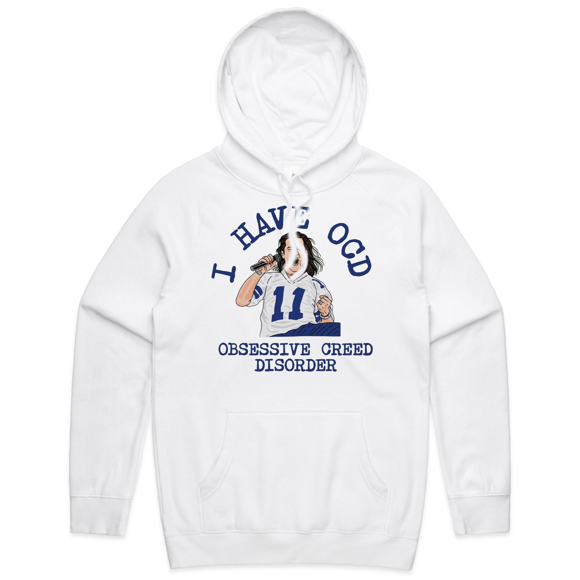 A black hoodie featuring a digital illustration of Scott Stapp, the lead singer of the band Creed, performing in a Dallas Cowboys jersey with the number 11.
