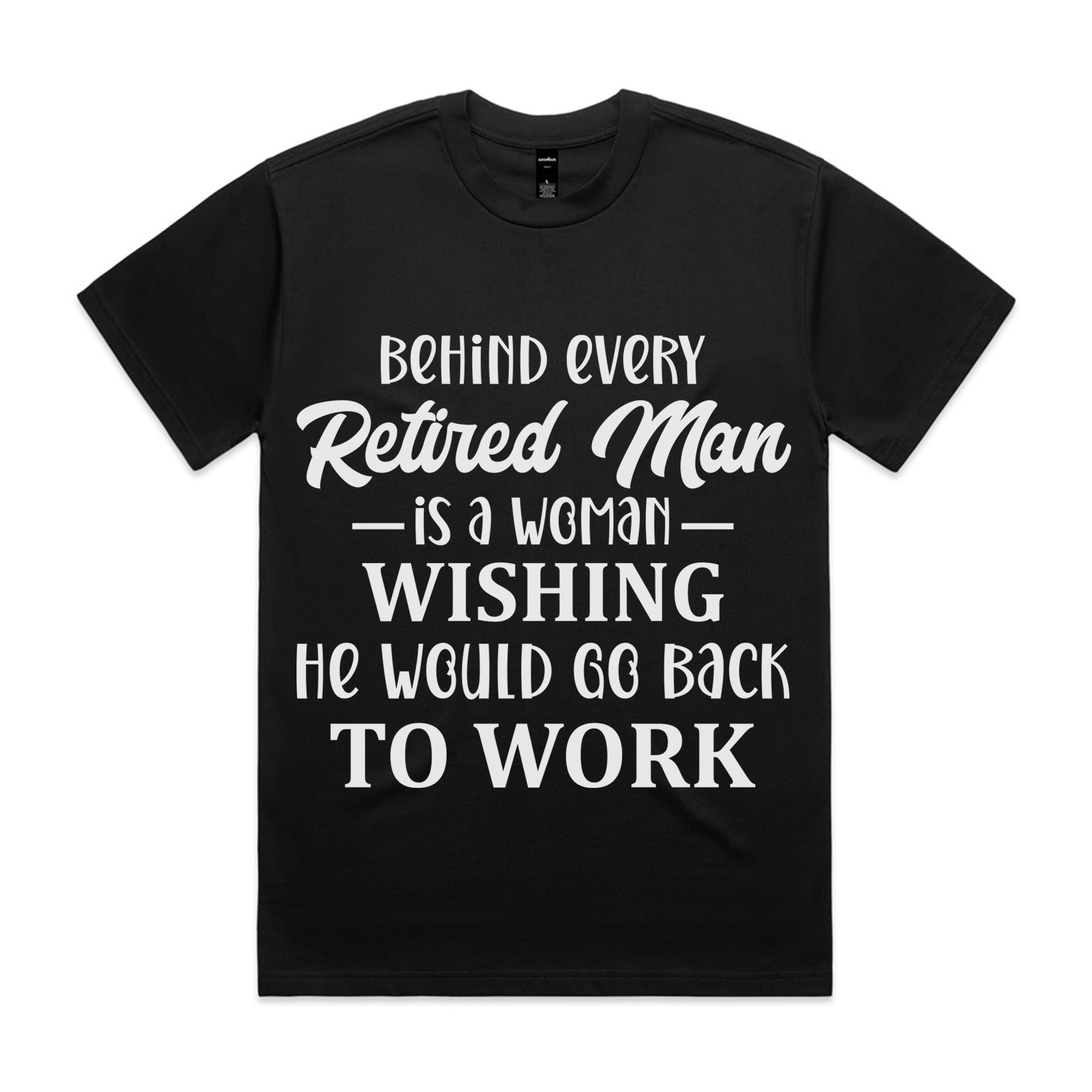 Funny Retirement T-Shirt – “Behind Every Retired Man” Quote